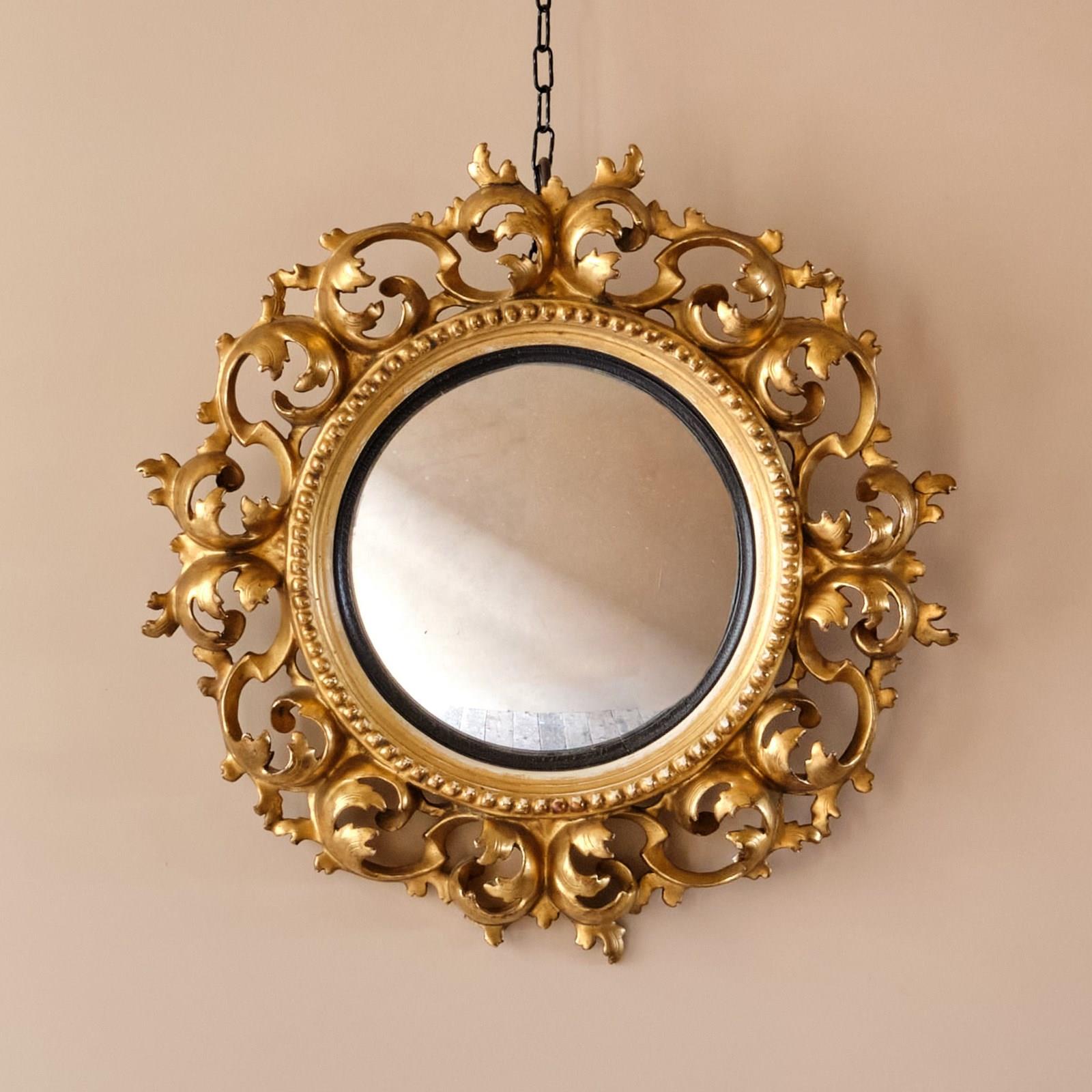 A wonderful small 19th century Giltwood and Gesso convex mirror with its original plate.