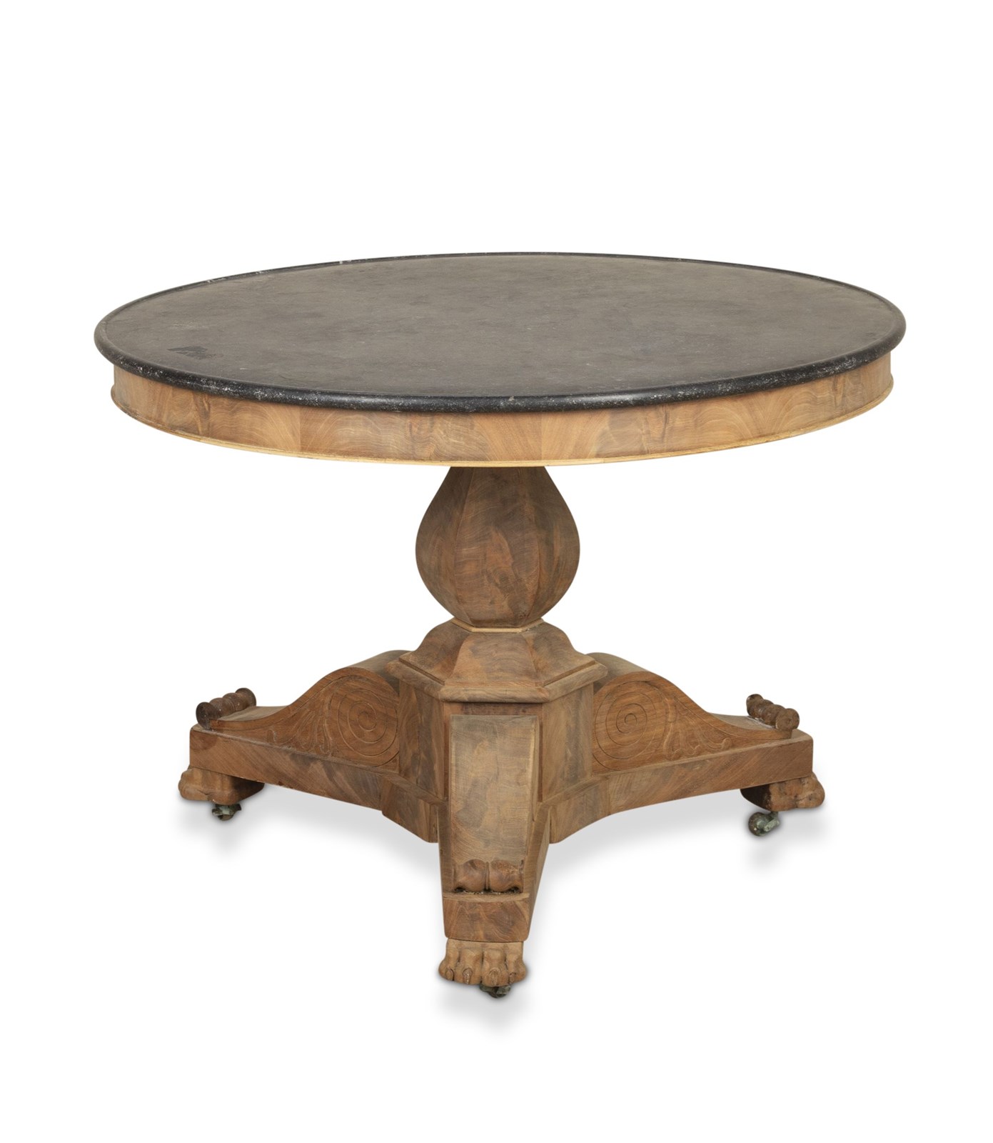 19Th Century French Bleached Mahogany Gueridon With Marble Top
