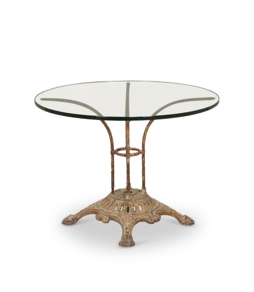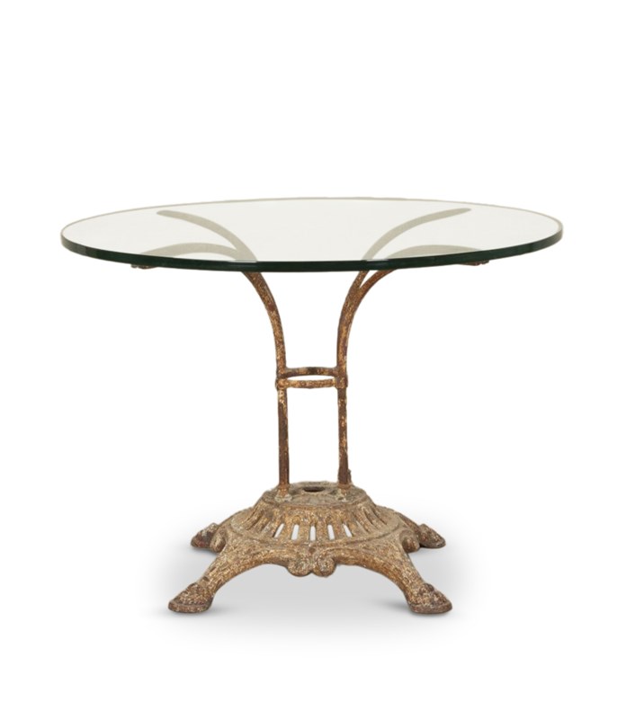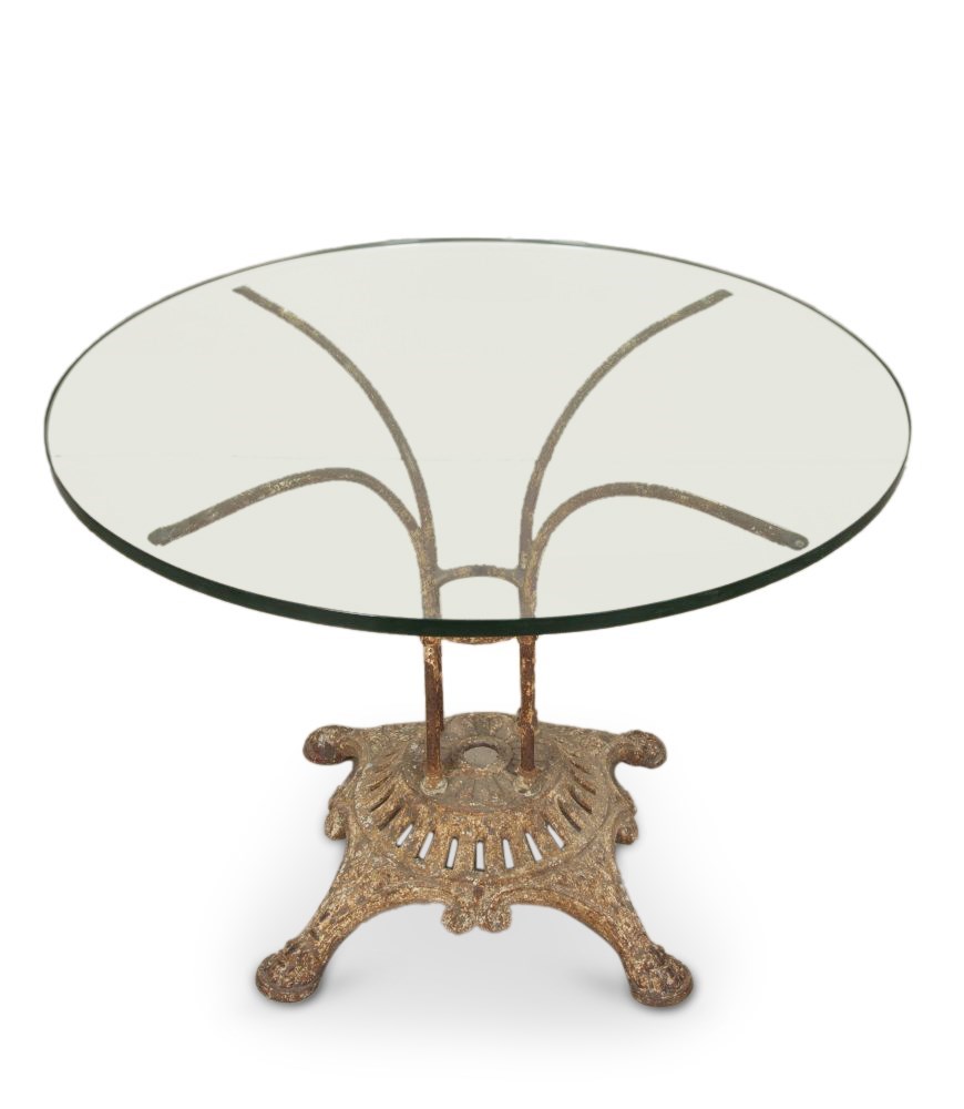 19Th Century French Cast Iron Table With Glass Top