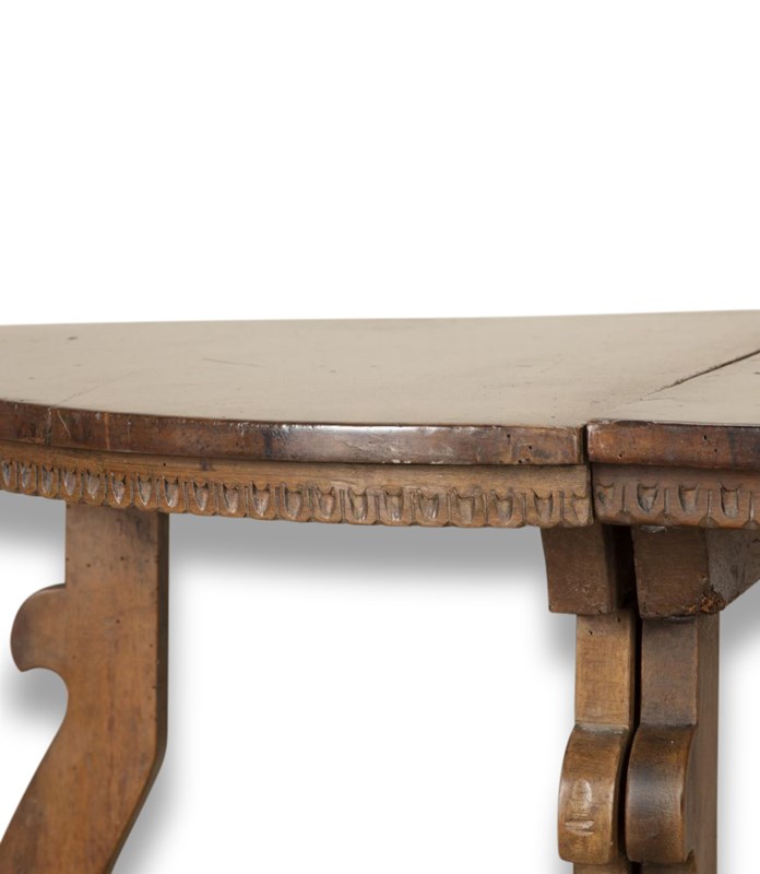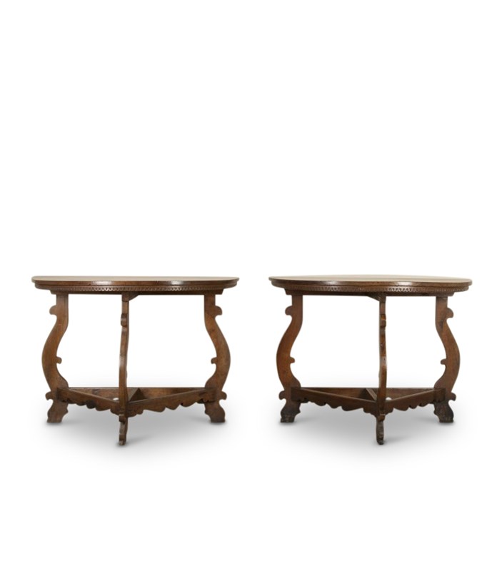 Gorgeous warm tones and detailed carving showing true quality. The tables will also link together to make a round centre table. Originating from Tuscany, Italy. Circa 1790-1800.