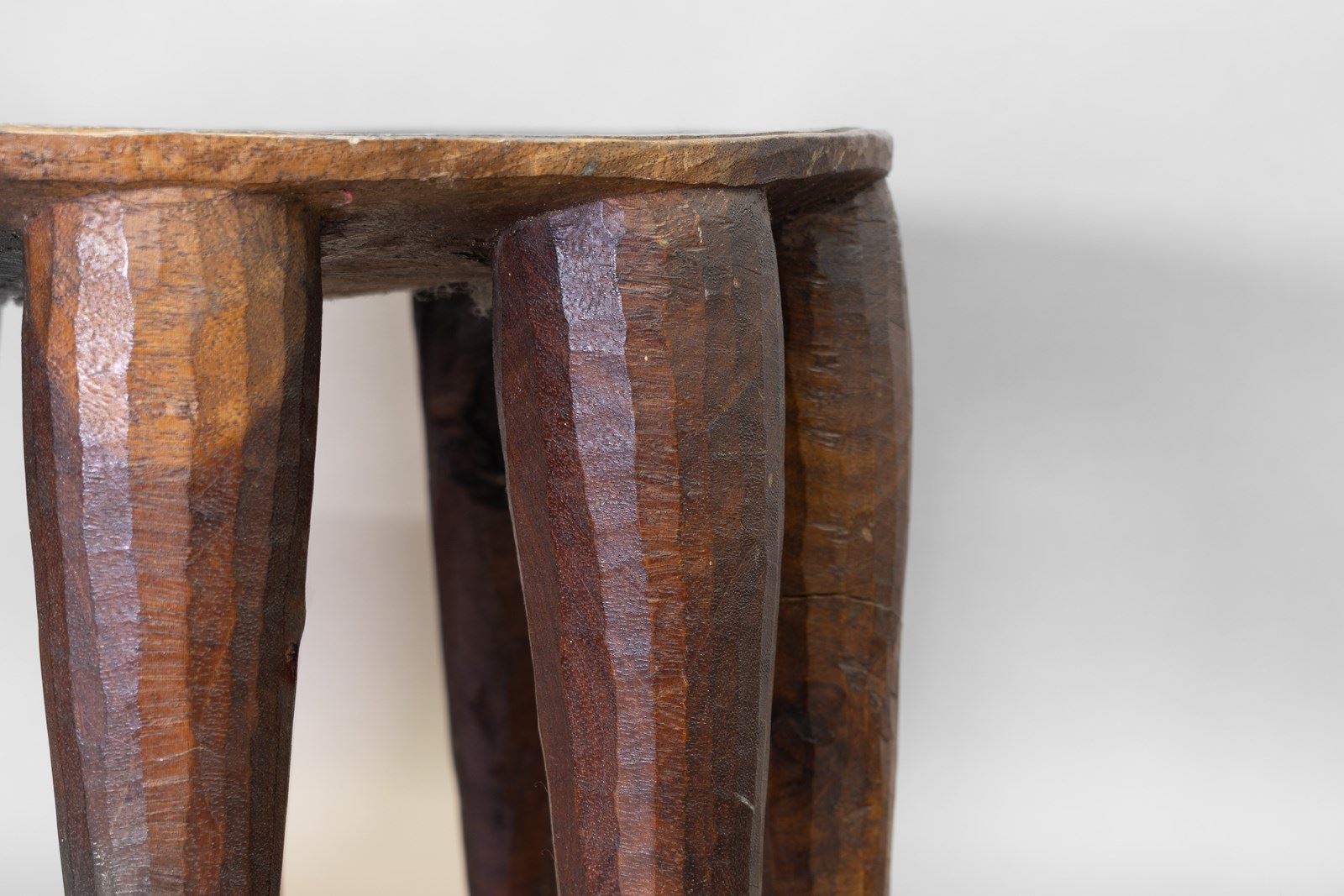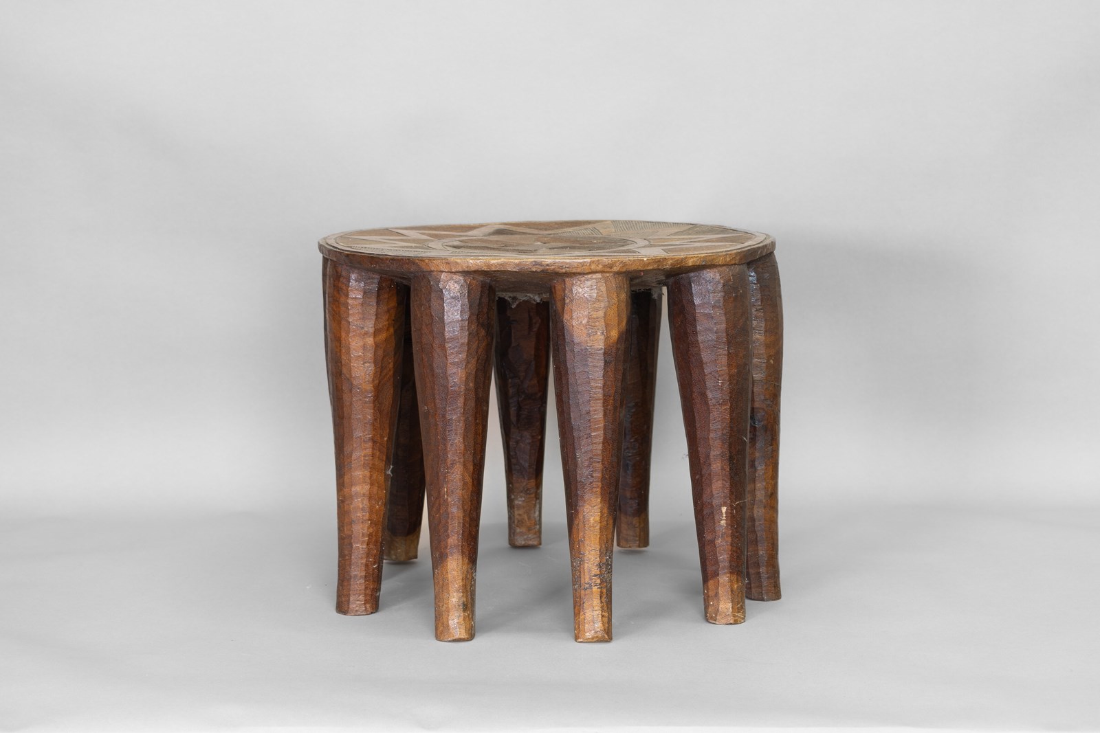 10 leg Nupe stool in solid African teak. Circa 1900.