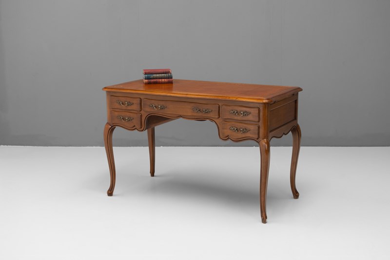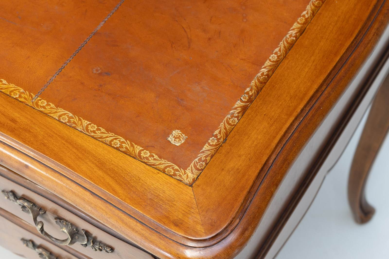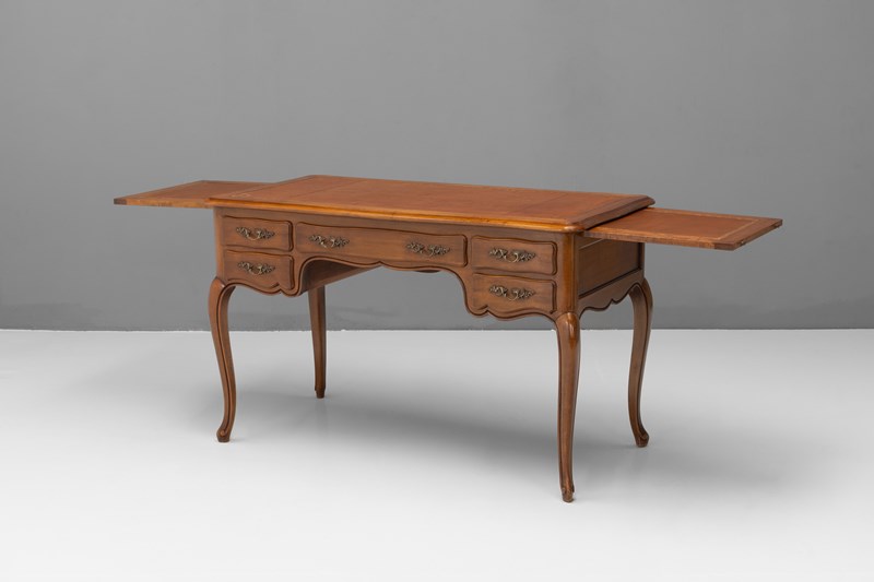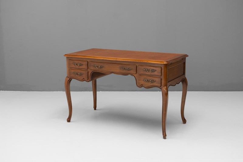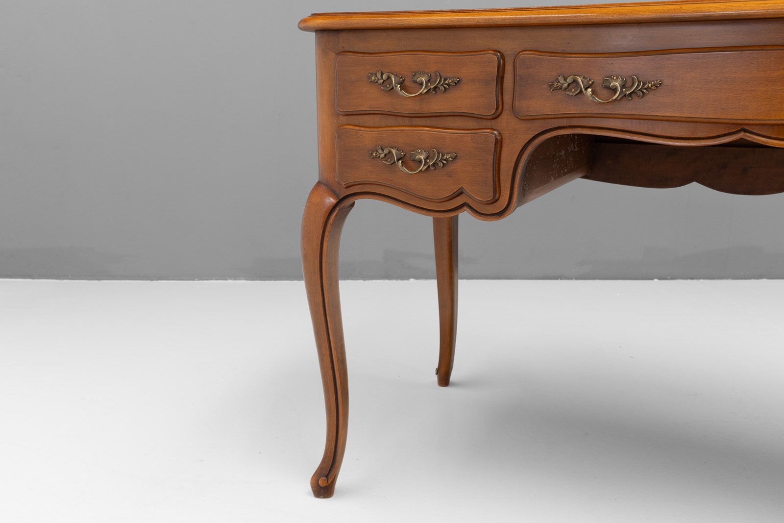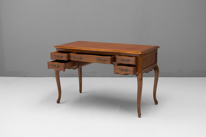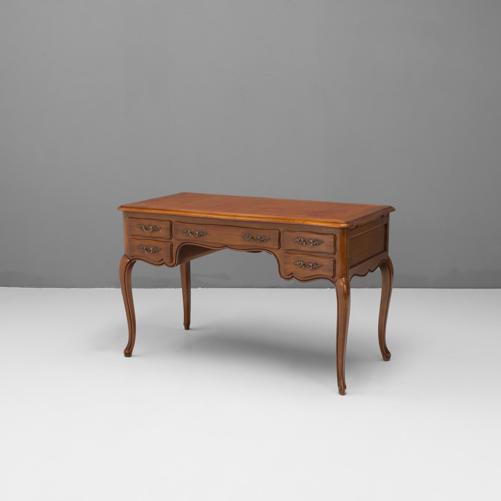 French writing desk in cherrywood with original tan leather writing surface. Circa 1930
