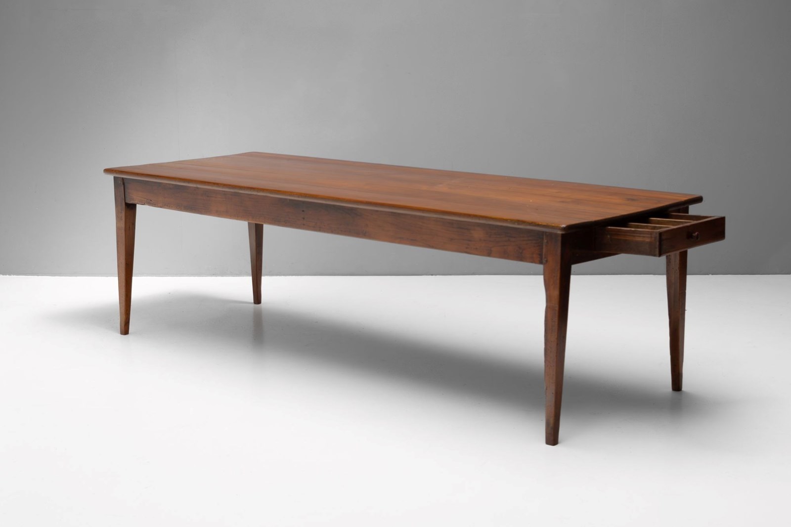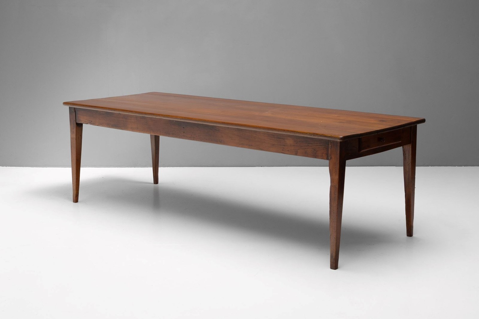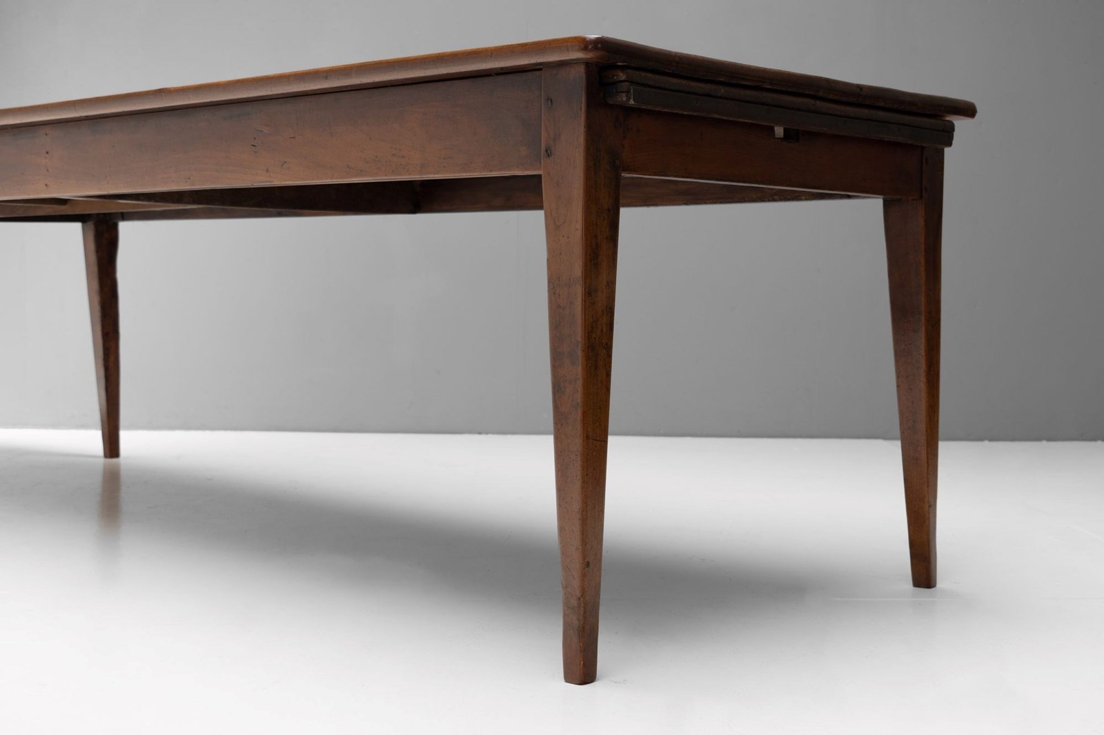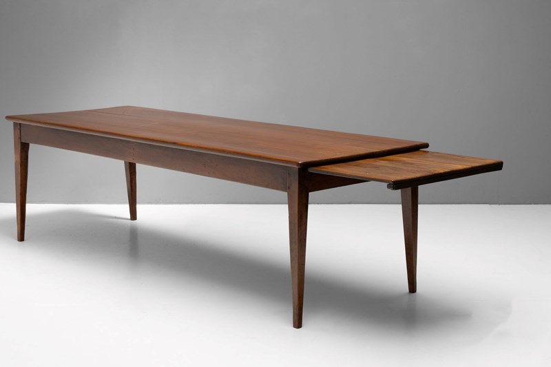 Cherrywood farm table on tapered legs and original bread slide. France circa 1850.