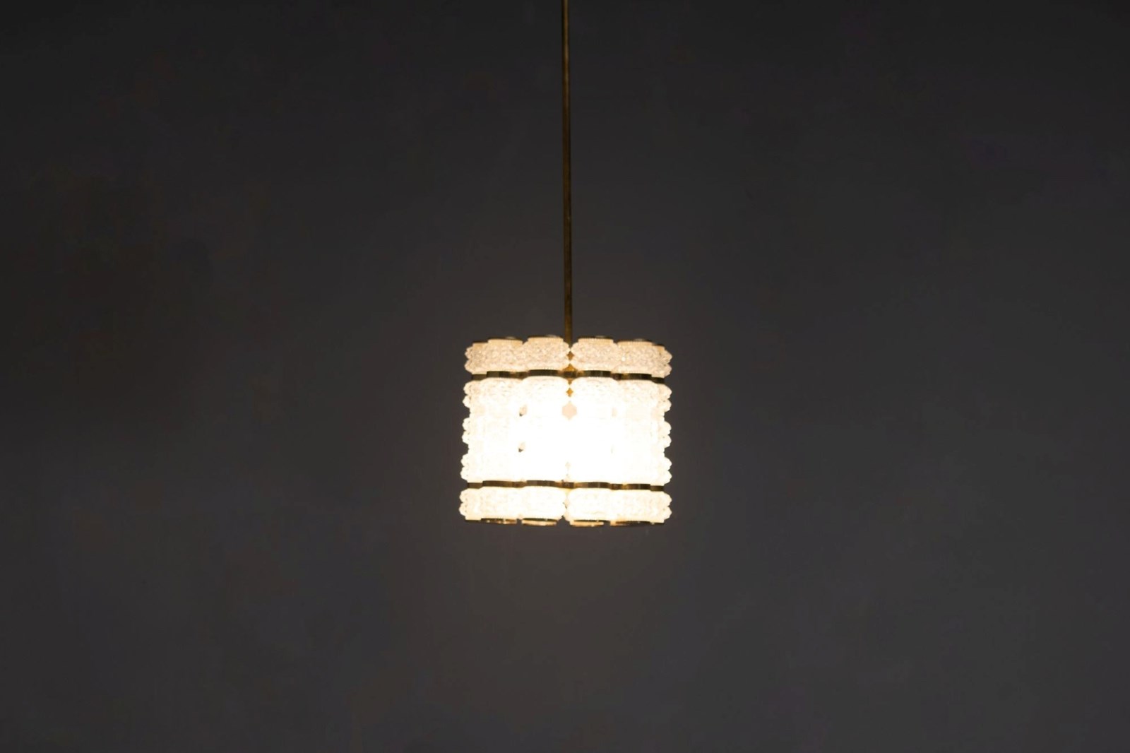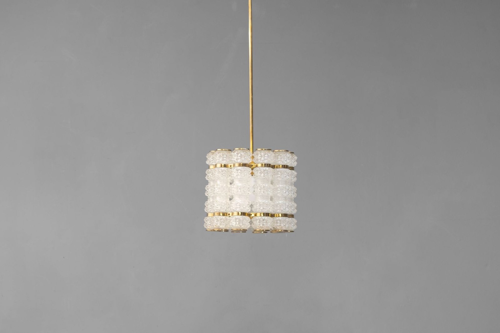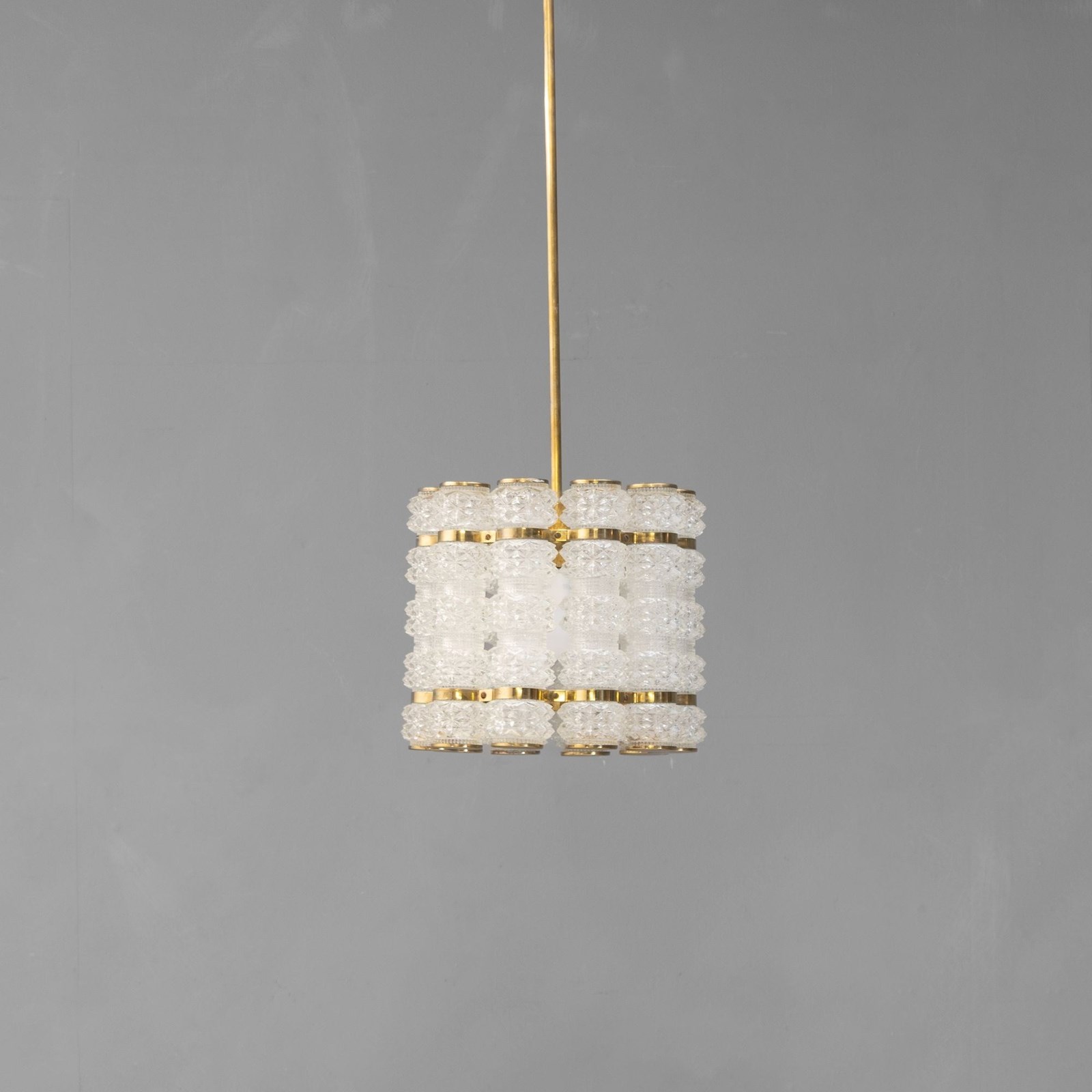 Crystal & Brass Pendant by Tyringe Konsthantverk. Glass produced by Orrefors. Rewired. Sweden circa 1960.