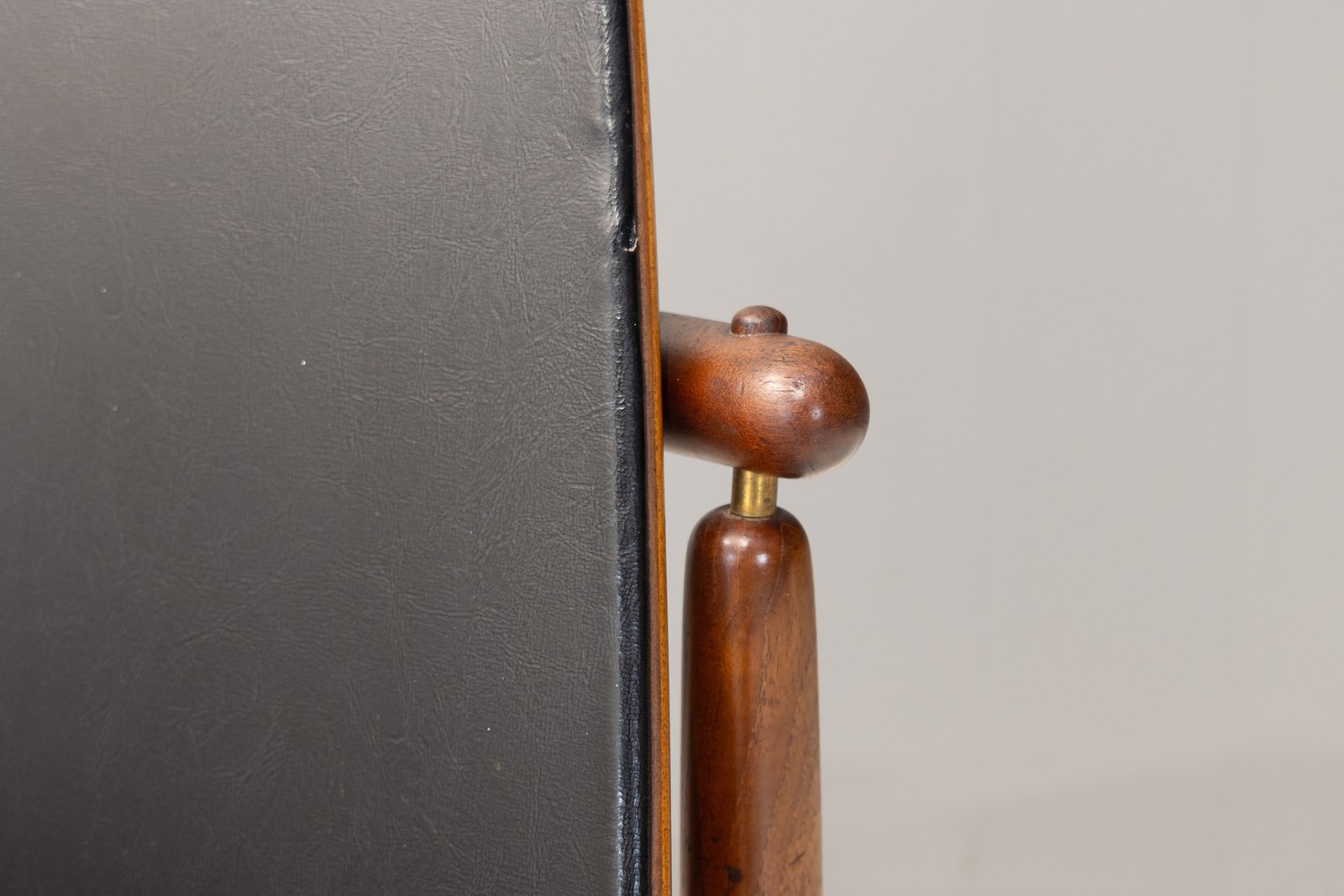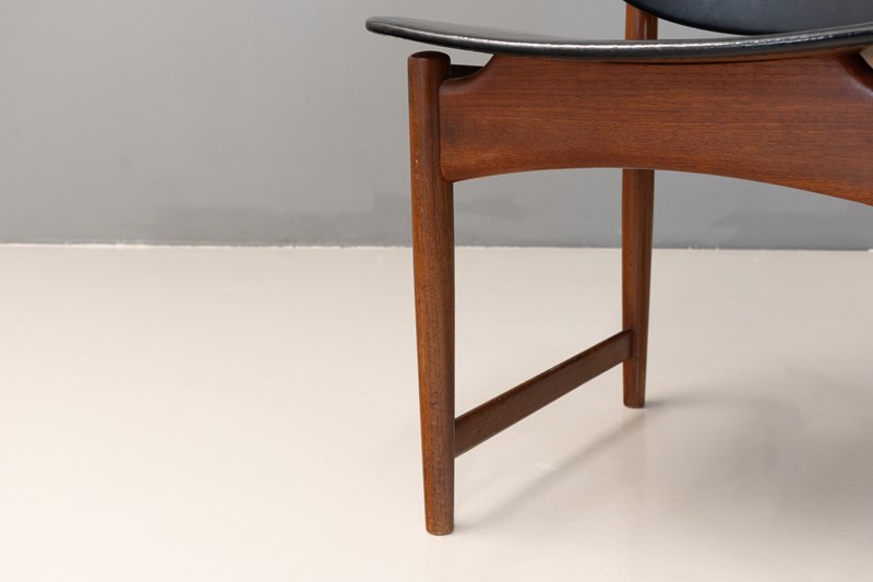 Mid-century Danish chair designed by Arne Vodder for France & Daverkosen. Solid teak frame with black leather upholstery and brass details. Denmark circa 1960.