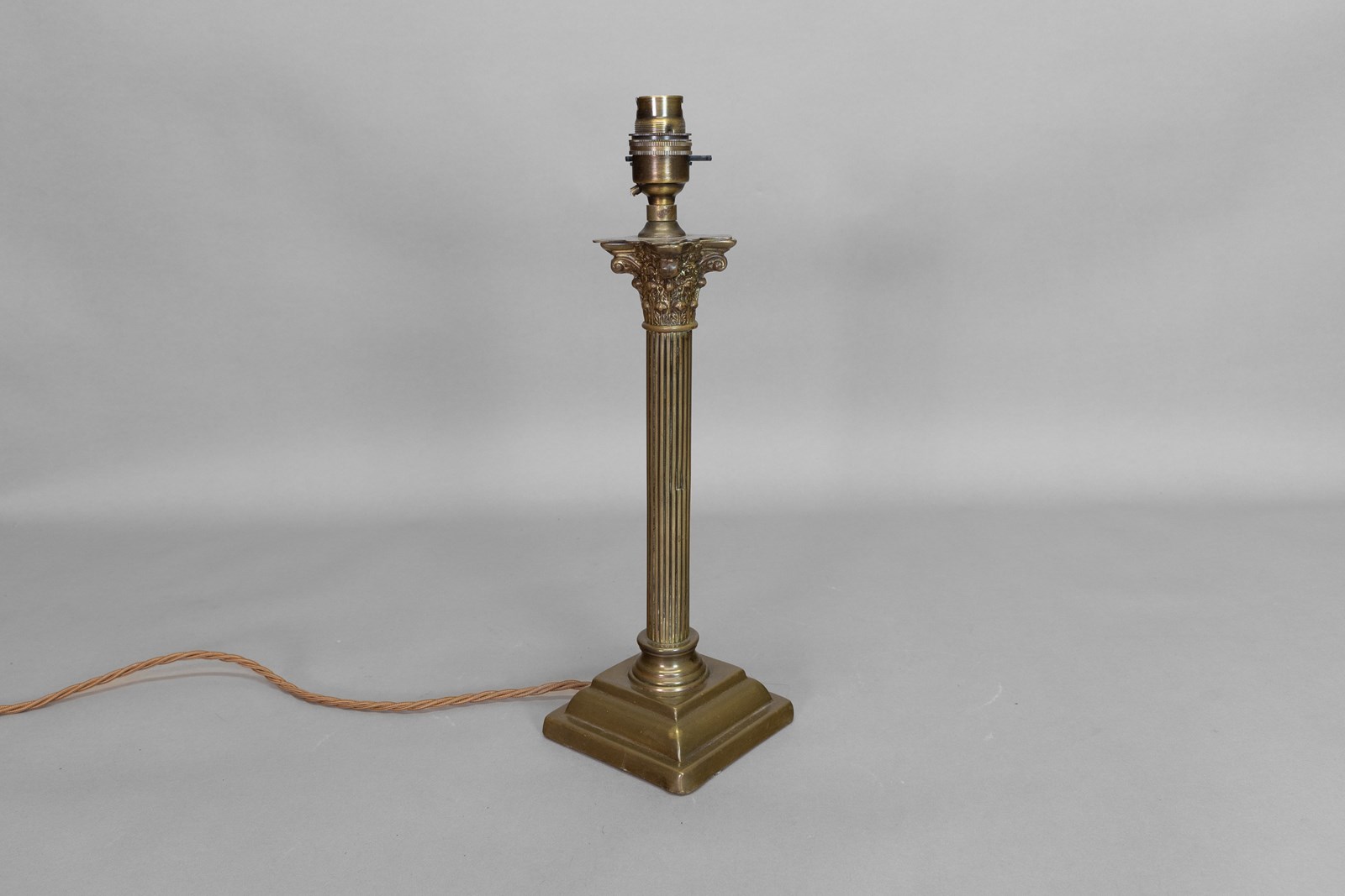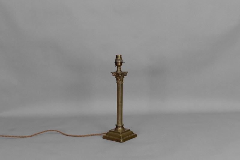 Rewired Corinthian column table lamp in brass. Circa 1890