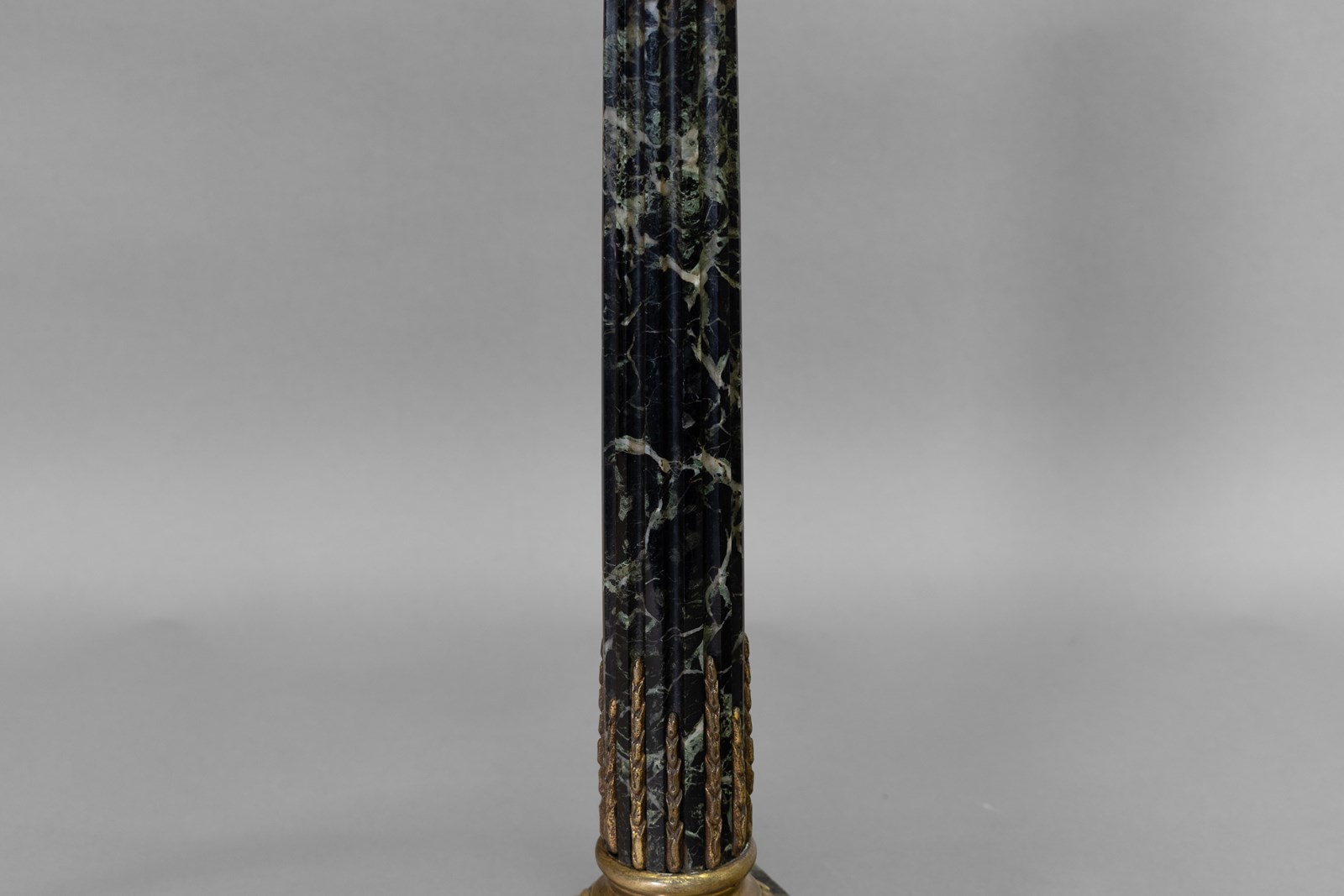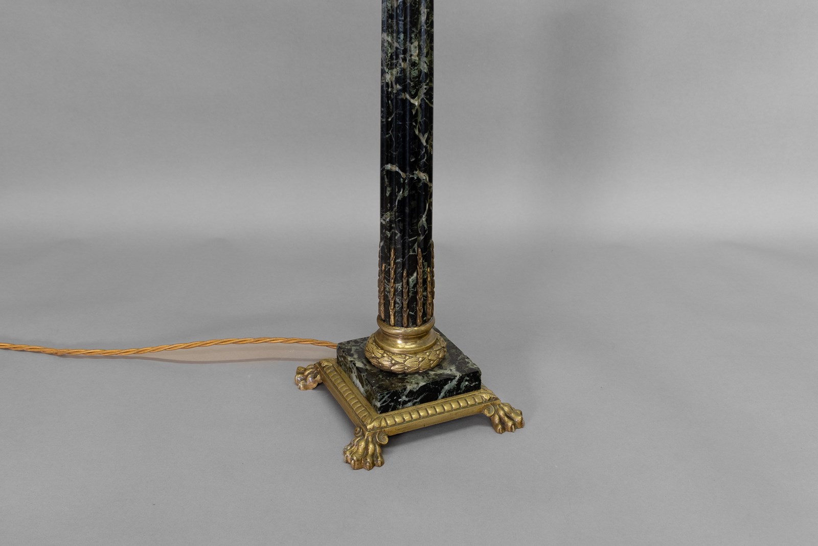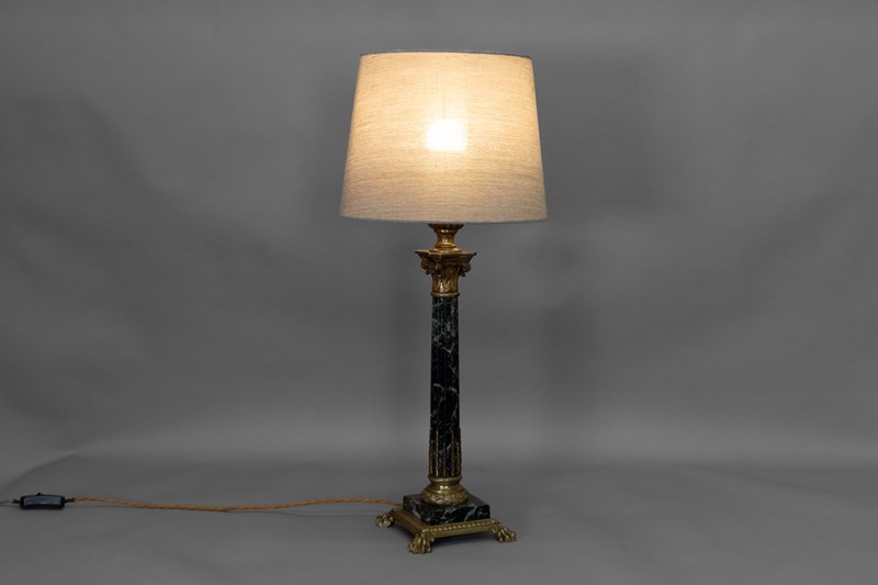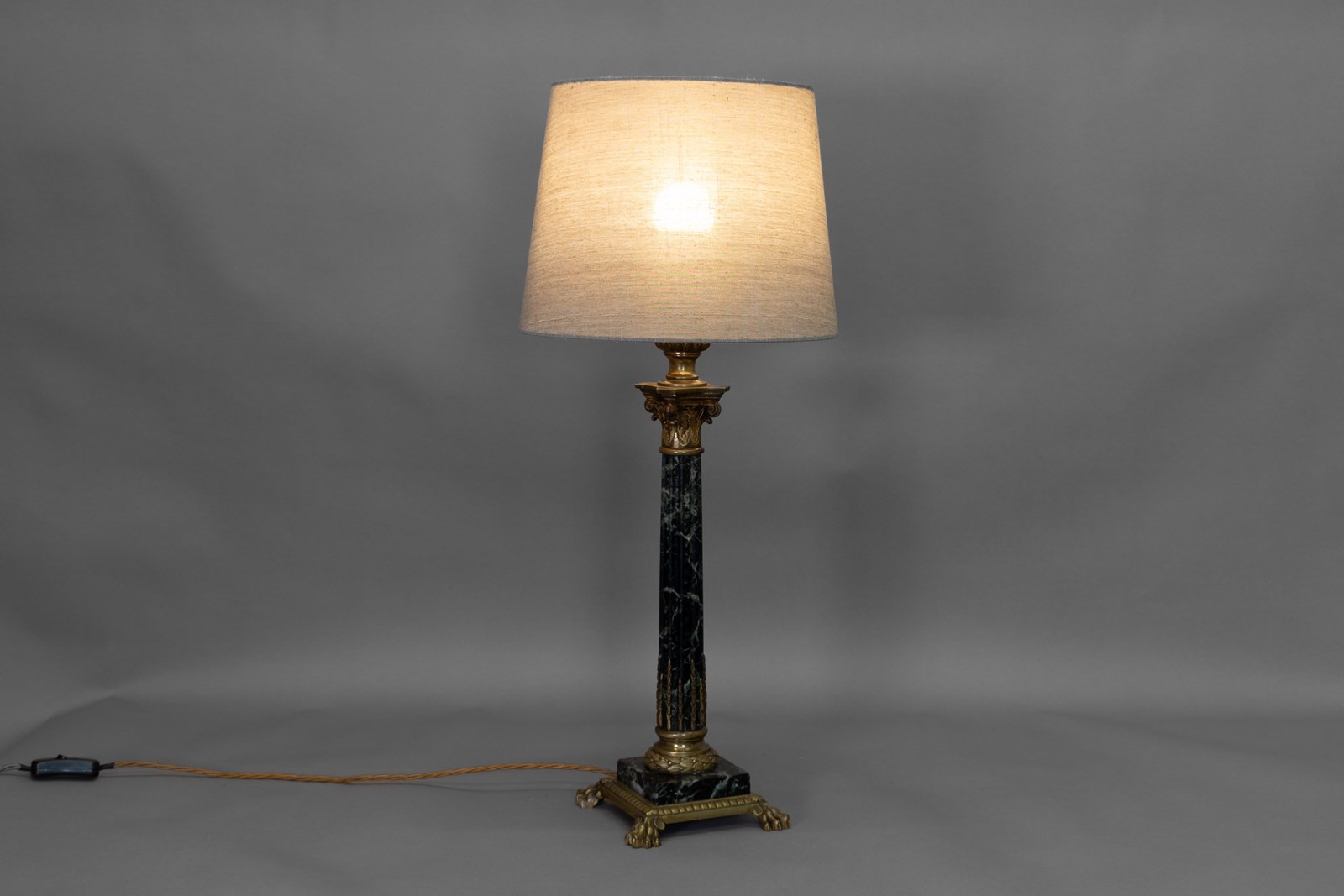 Brass desk lamp with green reeded marble column and Corinthian capital. Circa 1930