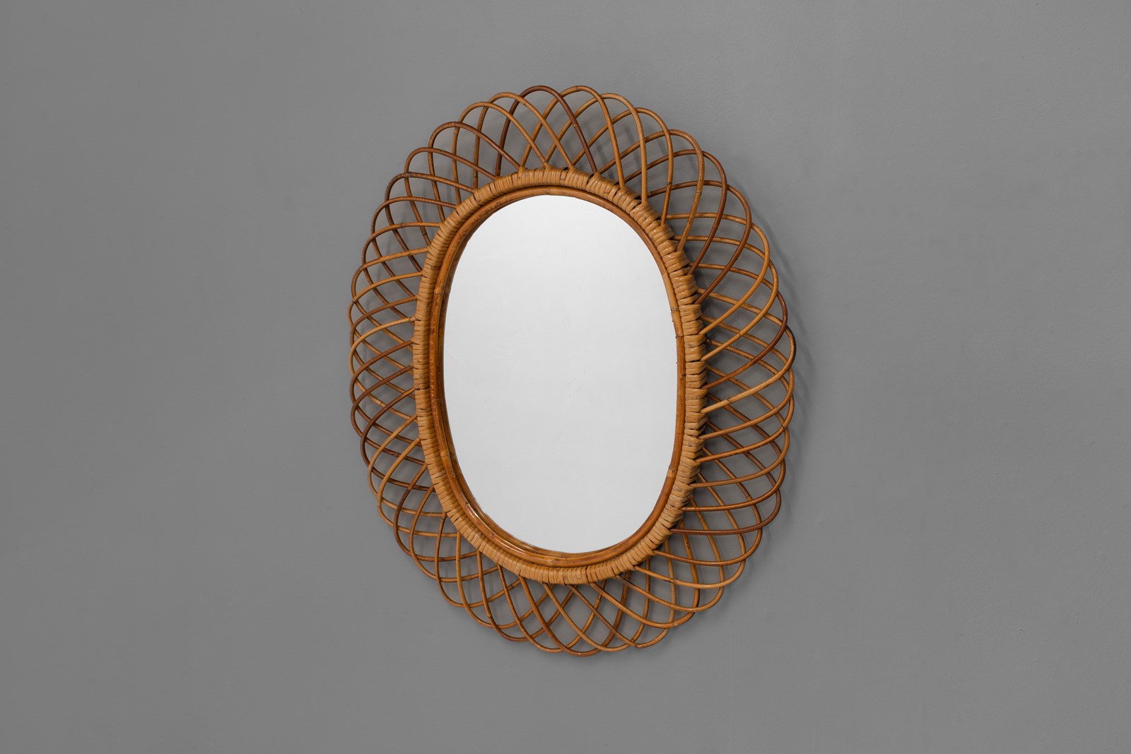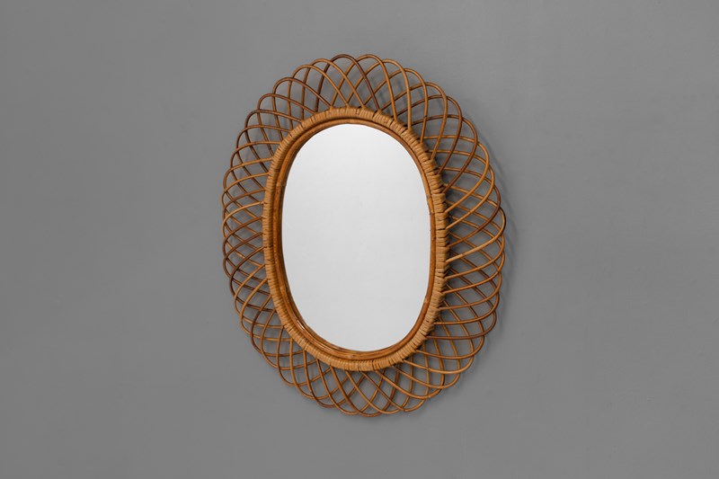 Bamboo and Rattan wall mirror by Franco Albini for Bonacina. Italy circa 1960.