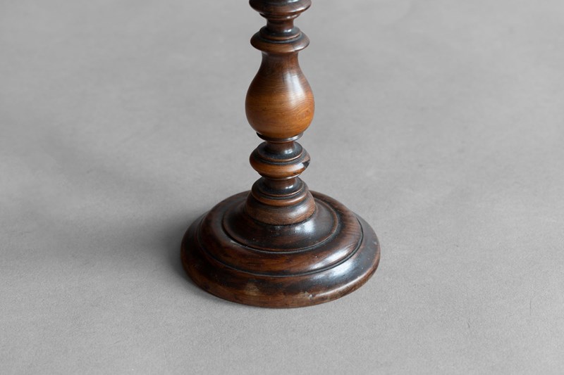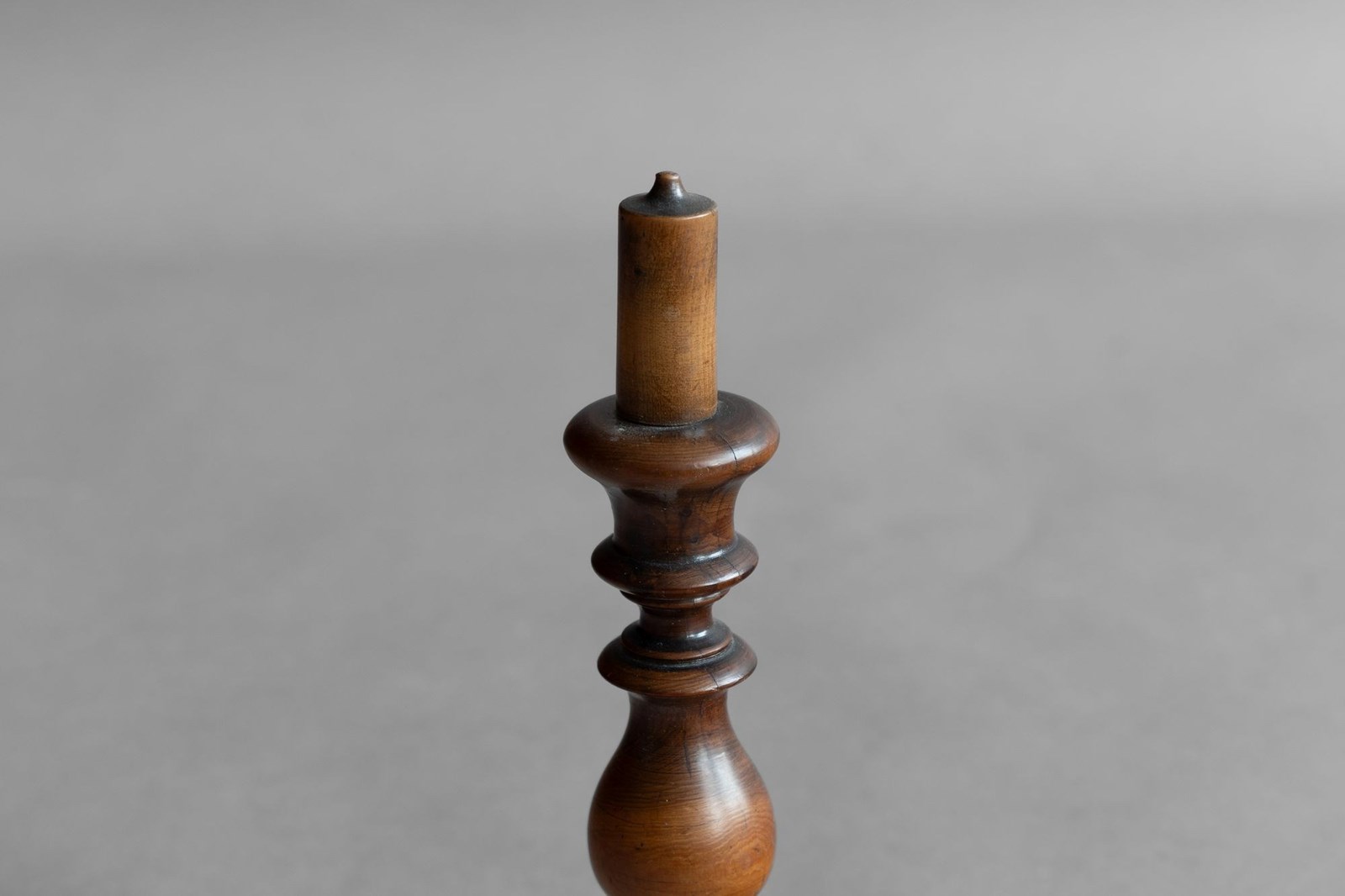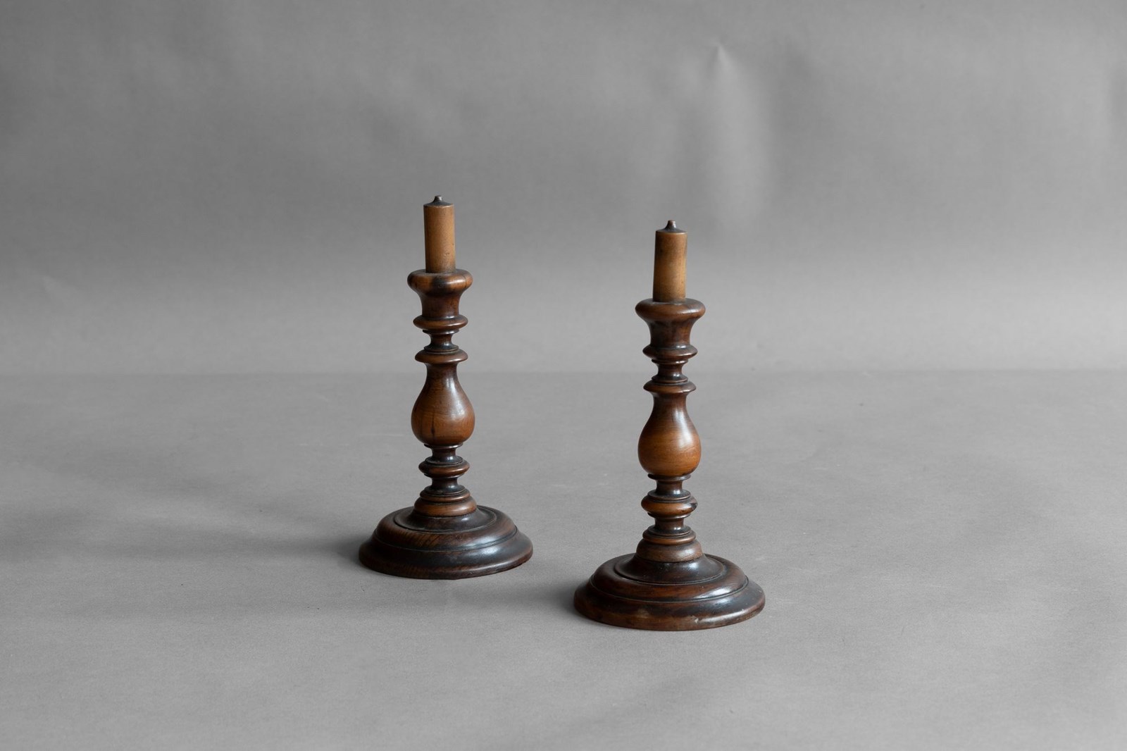 Pair of decorative turned fruitwood candlesticks. Circa 1800.