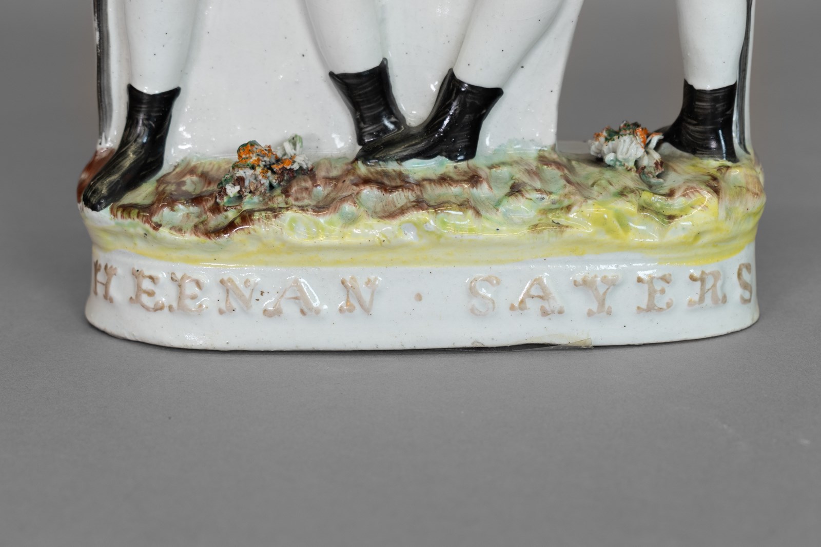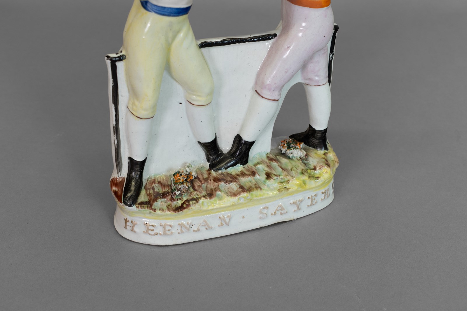 19th-century ceramic Staffordshire figure "The Boxers", depicting the famous bare-knuckle boxing match between American John Heenan and English champion Tom Sayers. Circa 1860.