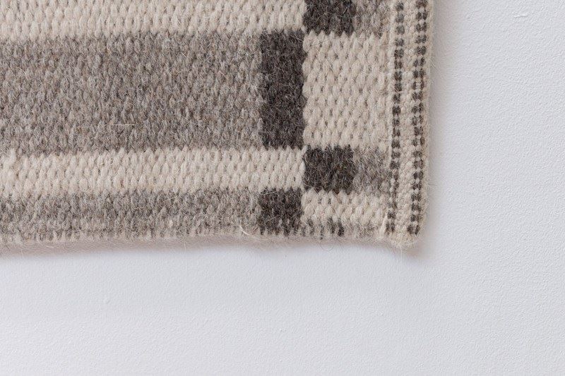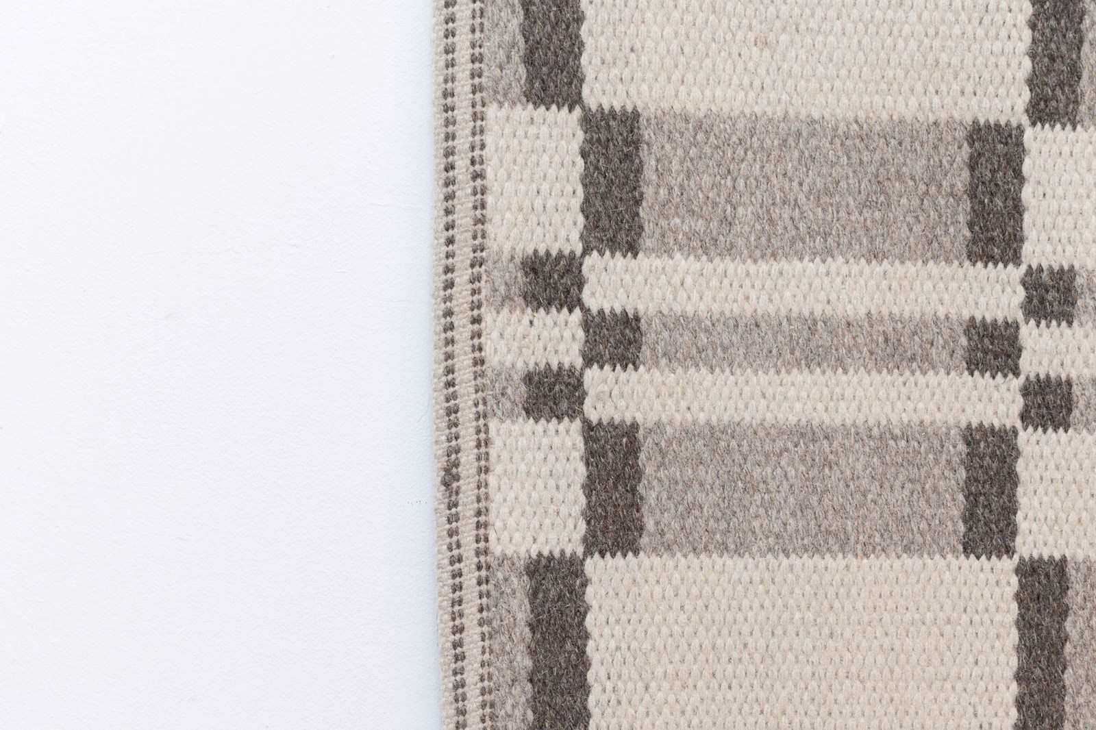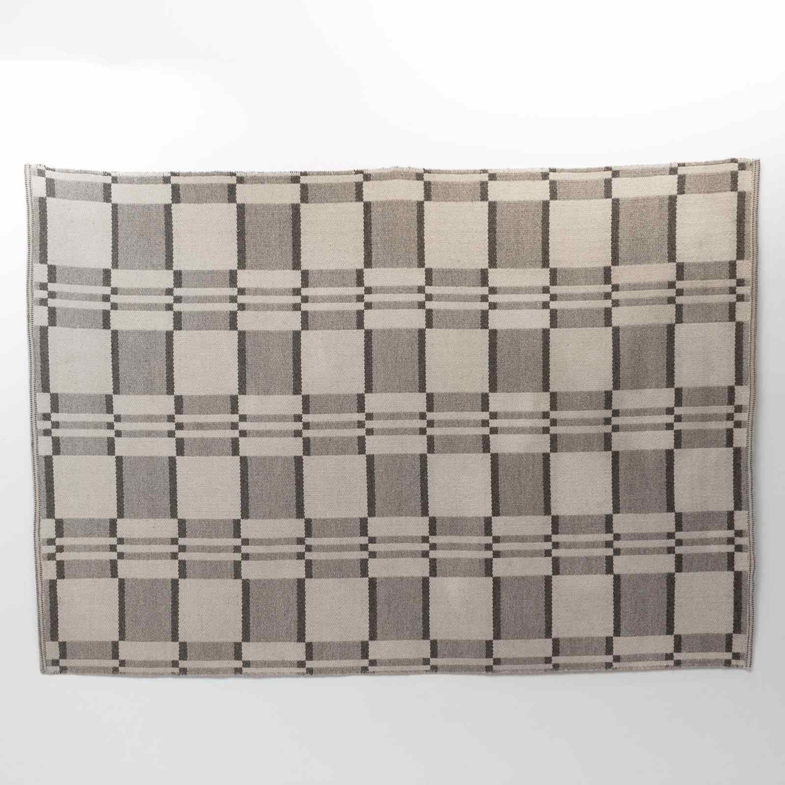 Large size chequered Swedish kilim. Reversable in tones of grey and cream.