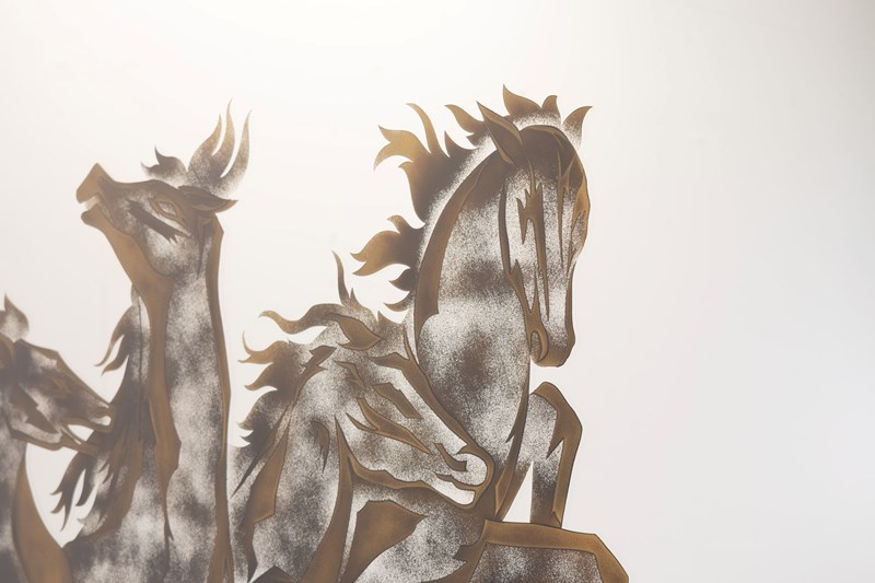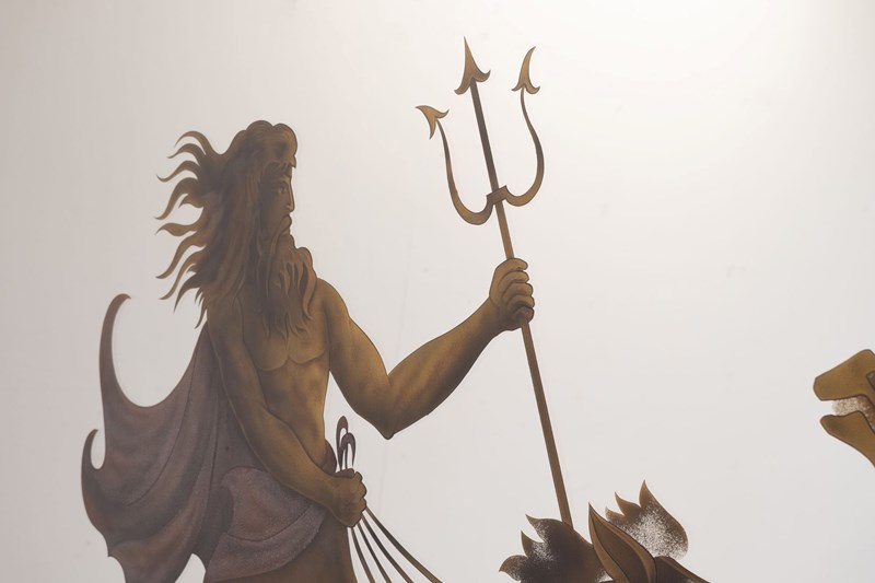 Large decorated mirror of Zeus and chariot. France circa 1960.