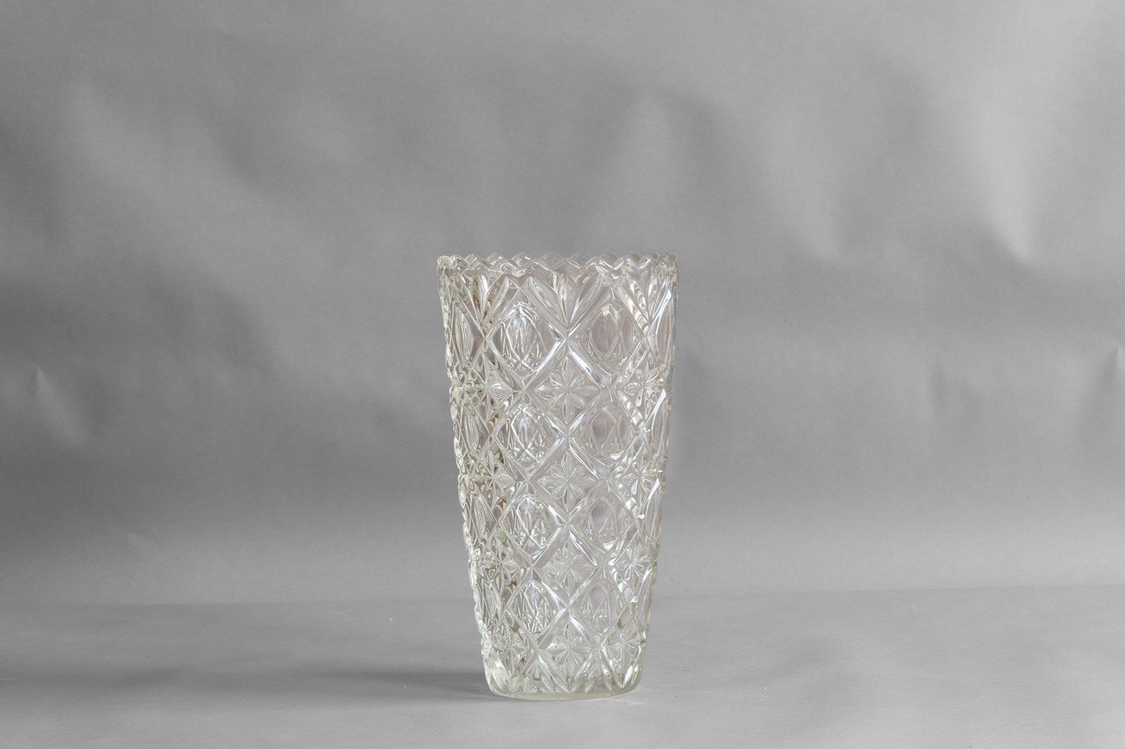 Large mid-century moulded glass flower vase. U.K circa 1970.
