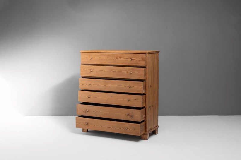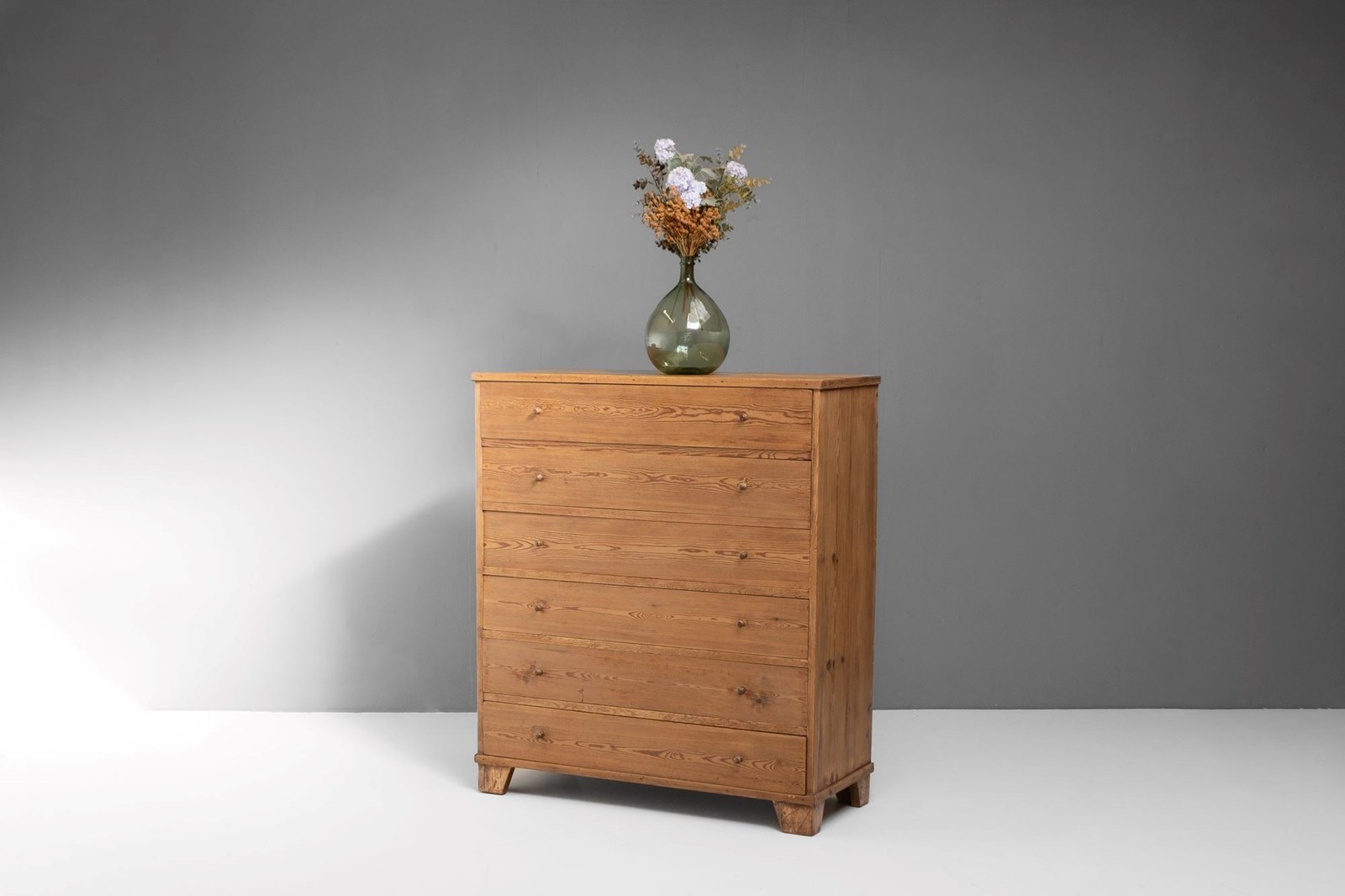 Good sized Swedish chest of drawers in solid pine. Re-finished. Sweden circa 1900.