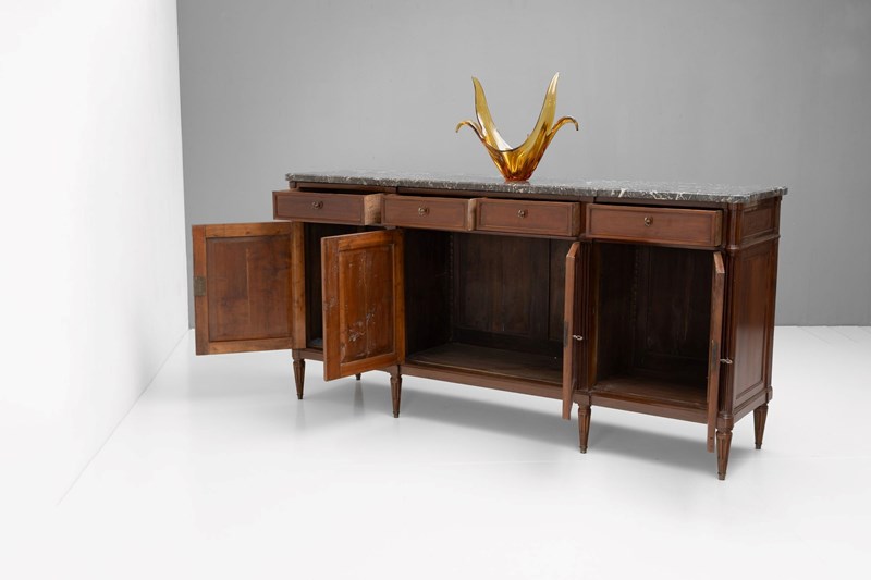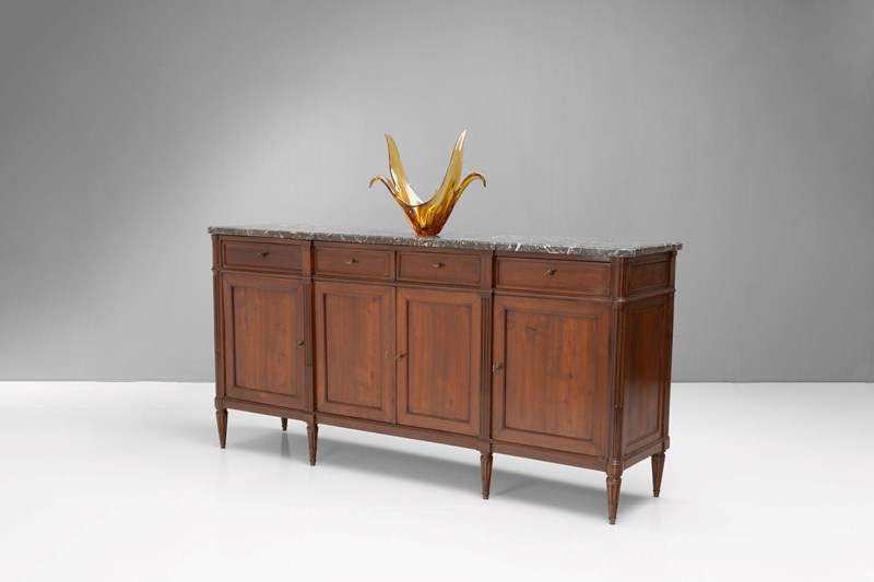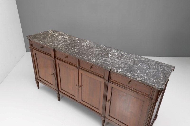 French mahogany four door sideboard with original marble top. Circa 1890