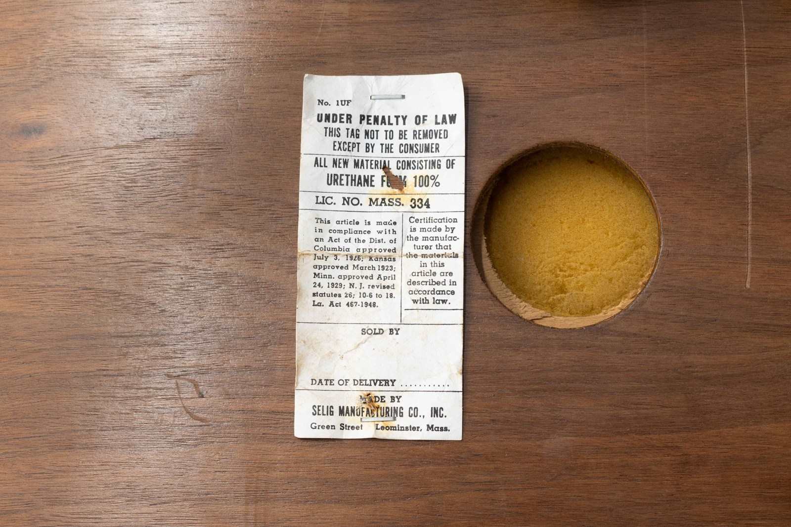 Mid-century swivel lounge chair and ottoman made by Selig Ltd. Original upholstery with some light wear. The show wood has been polished and the feet have been replaced. The reclining/rocking mechanism works well. Large size chair. The ottoman is paired with the chair and is probably from around 1995. The price is for both. U.S circa 1970.