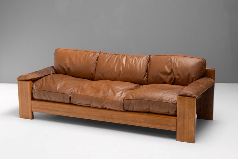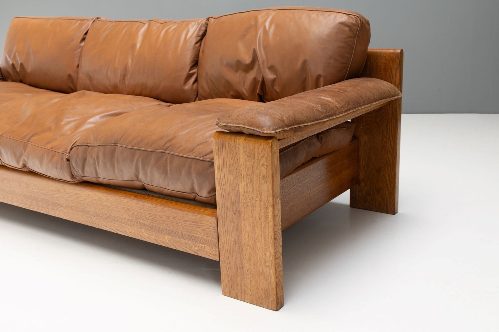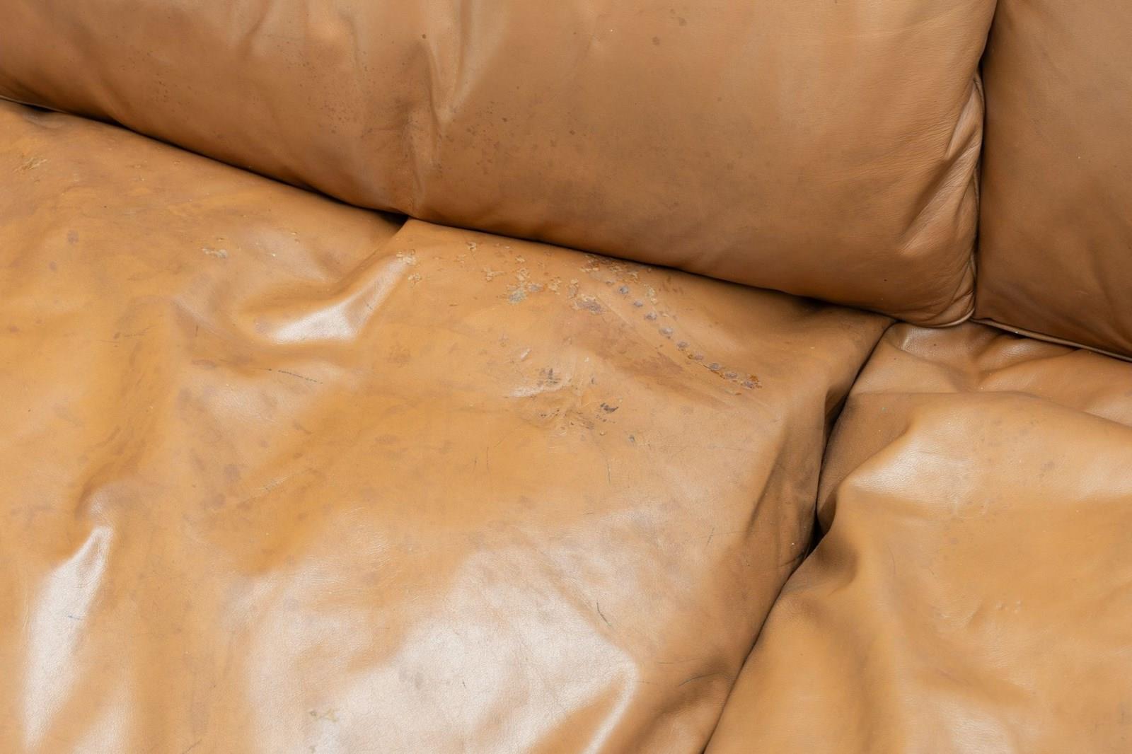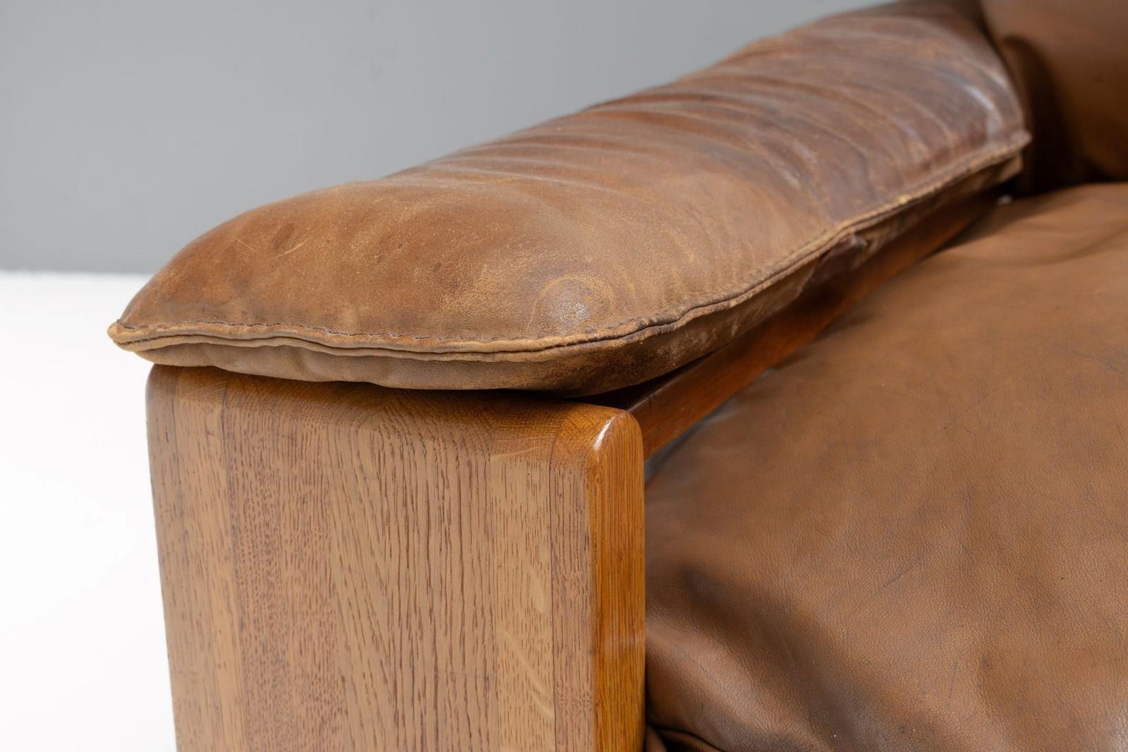 Model 757 sofa by Harry J M De Groot for Leolux. Solid chestnut frame and original patinated leather cushions.