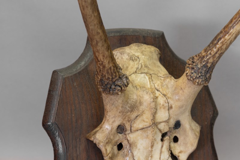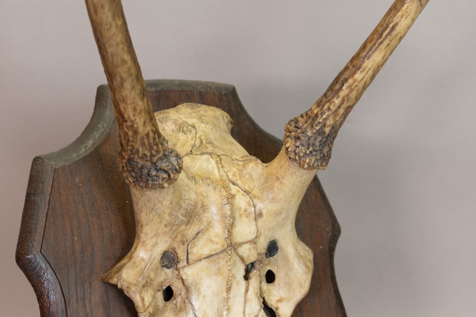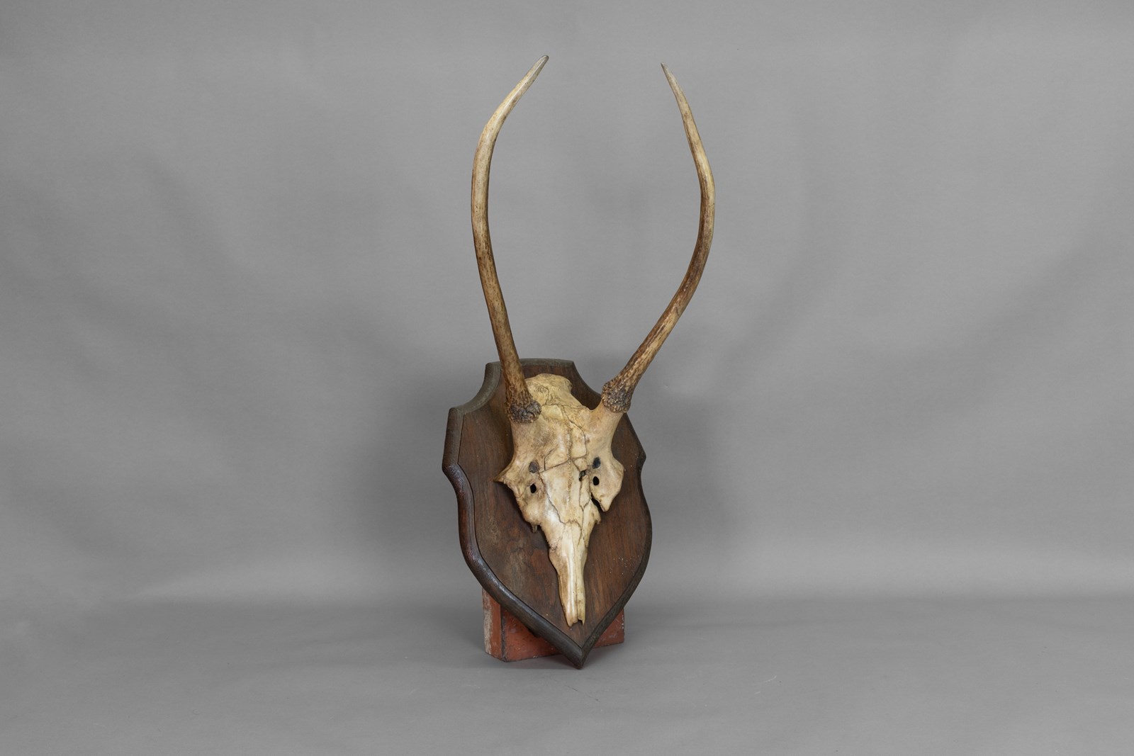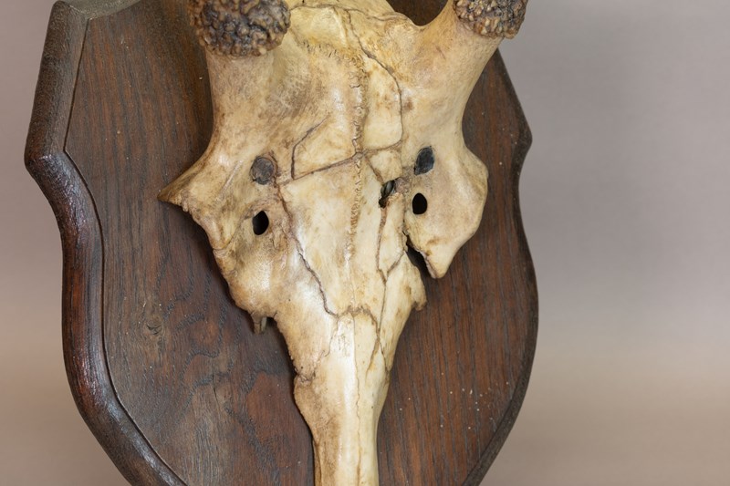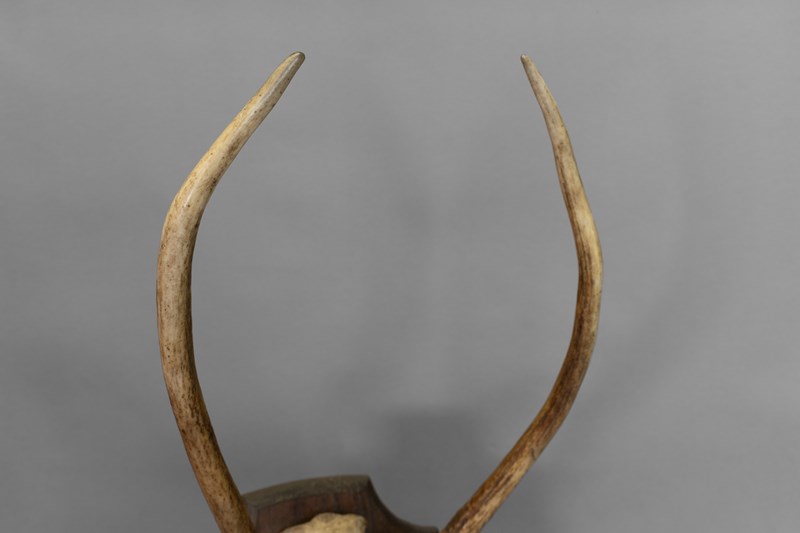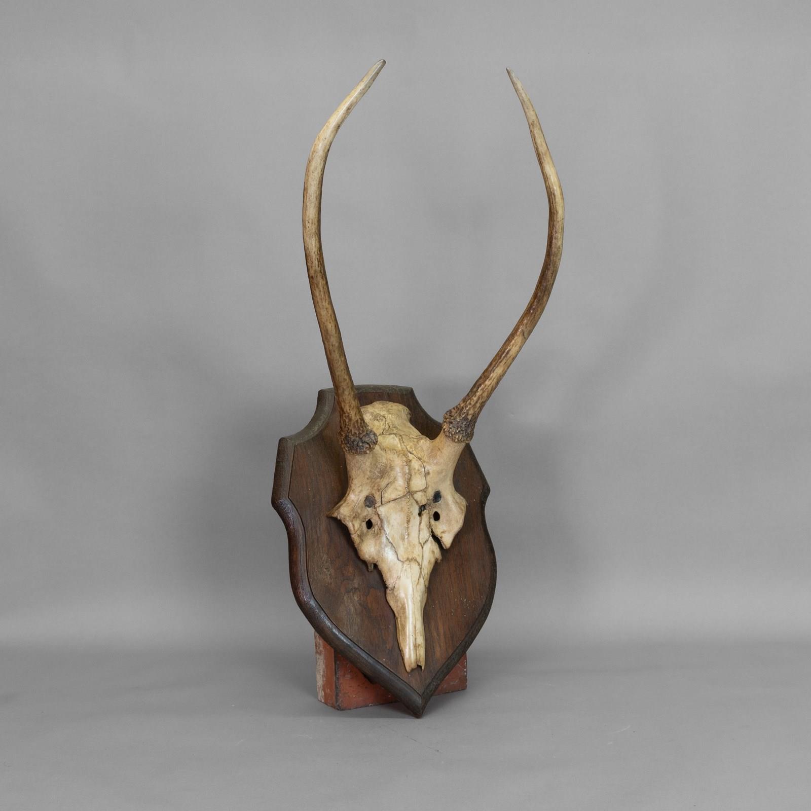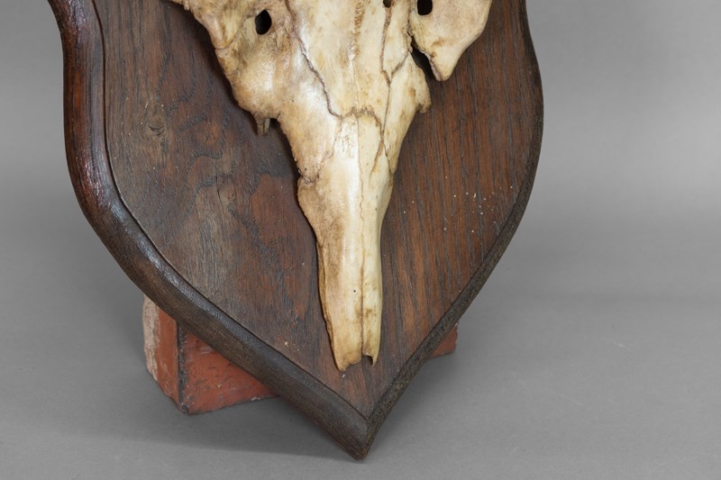 Pair of horns mounted on an oak shield. Circa 1900.