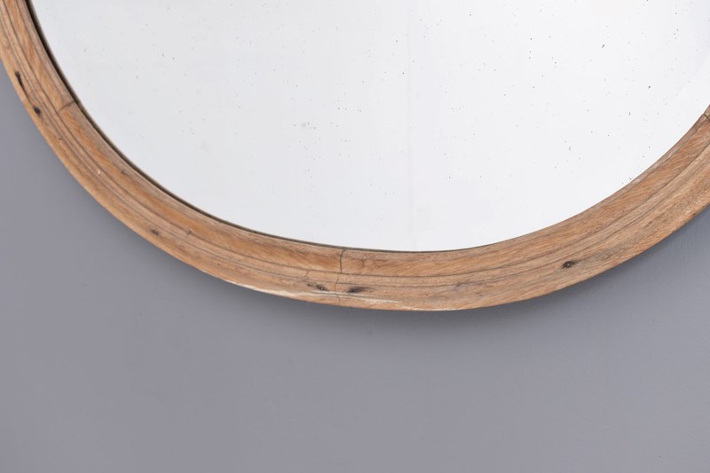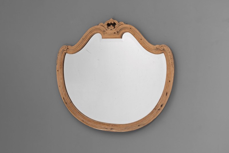 Oak framed shaped mirror with original bevelled glass plate. Circa 1900