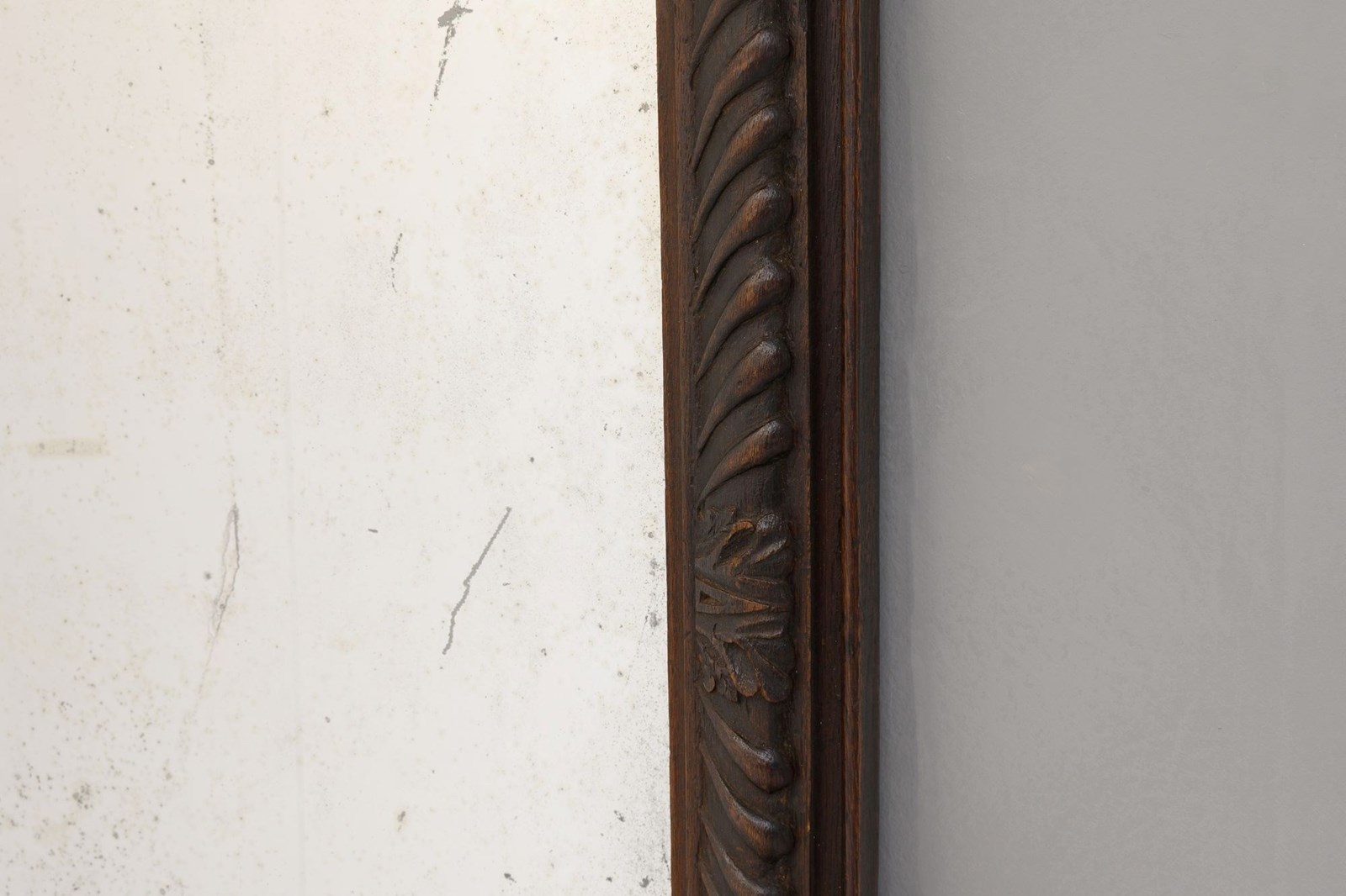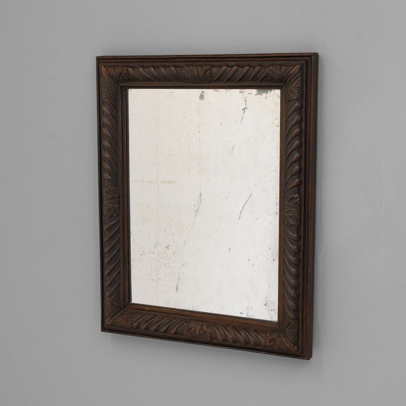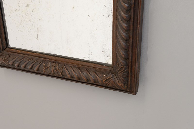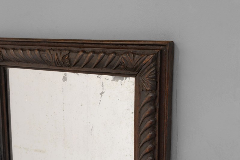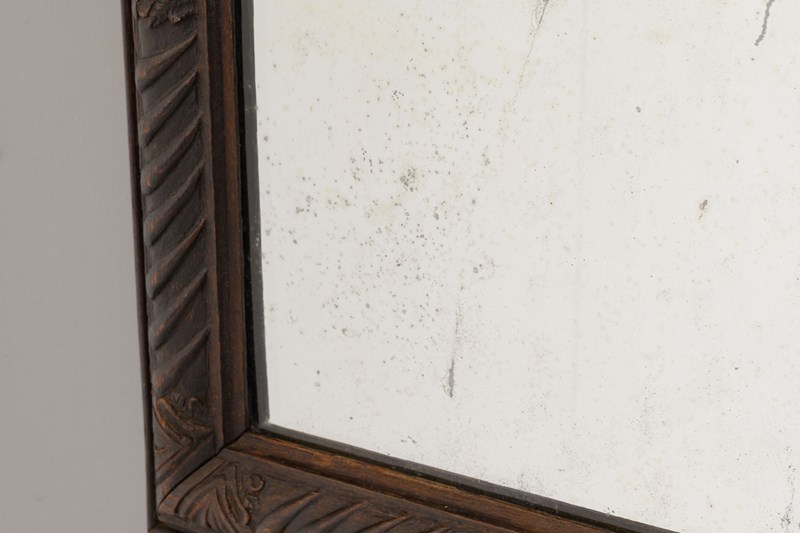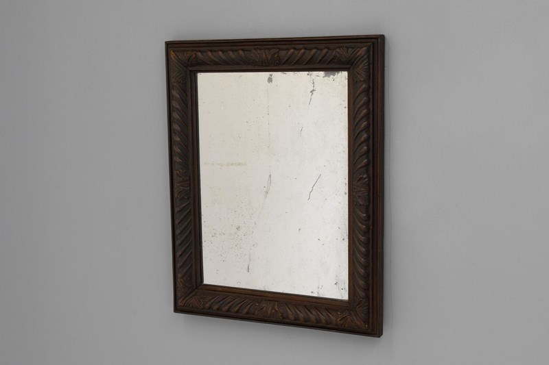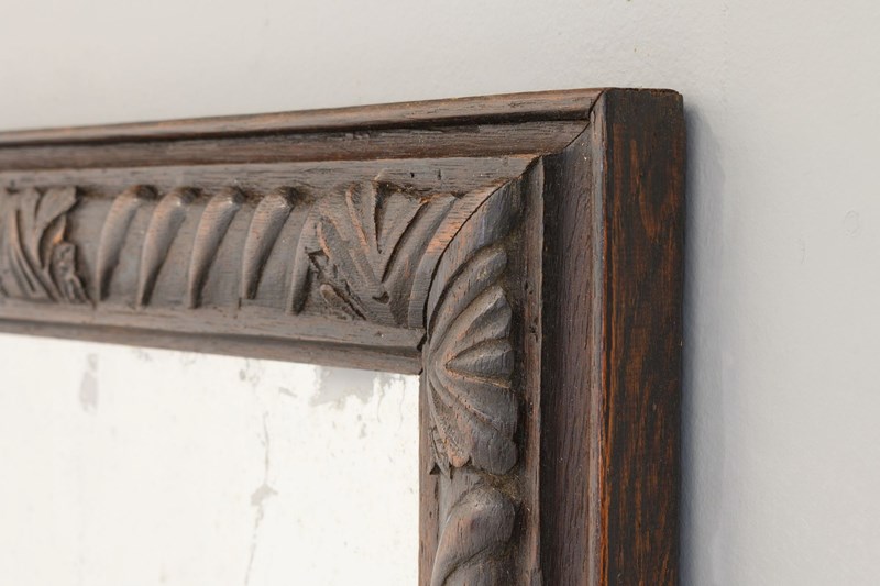 Landscape / portrait mirror with carved oak frame and original plate.