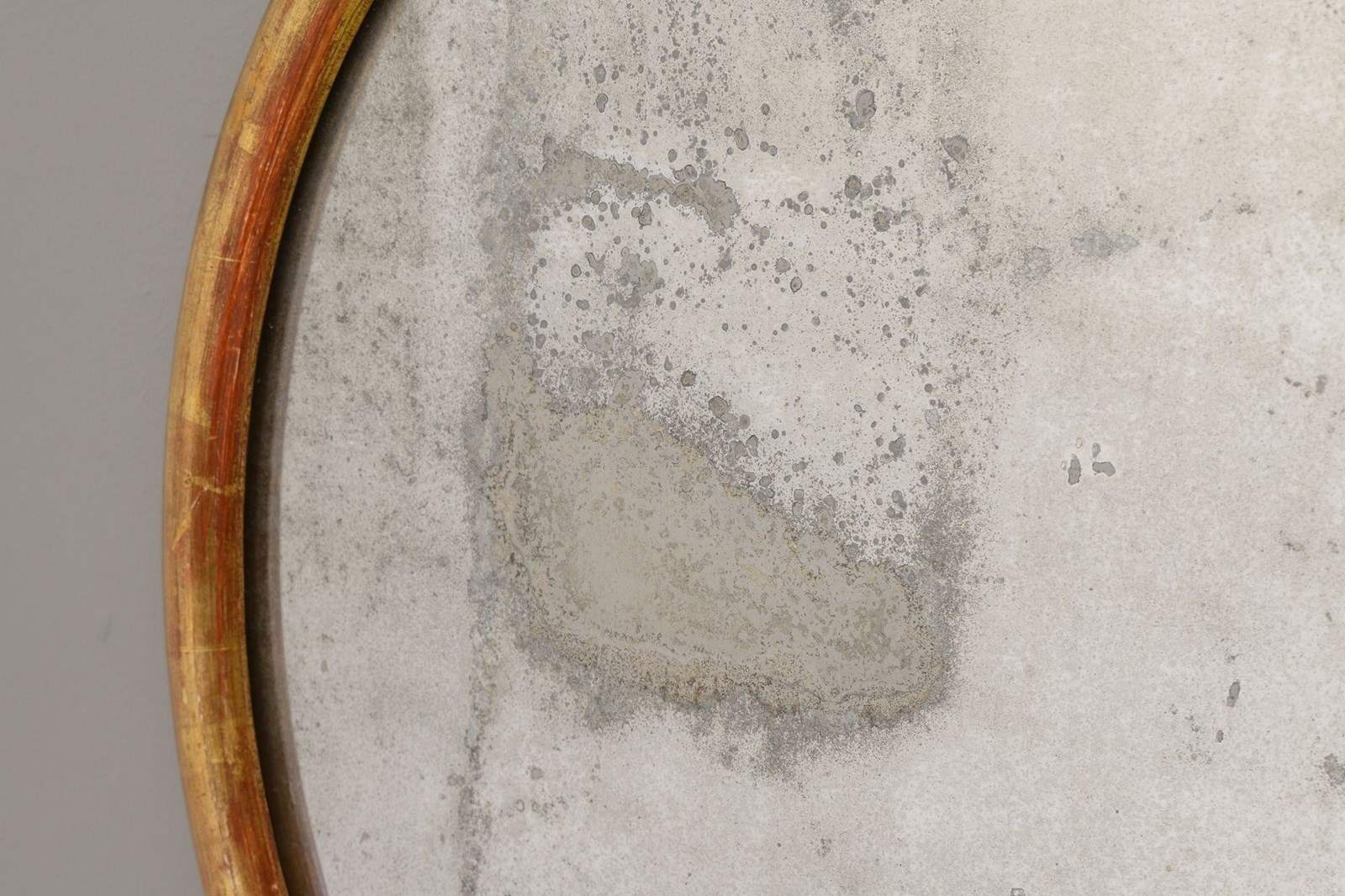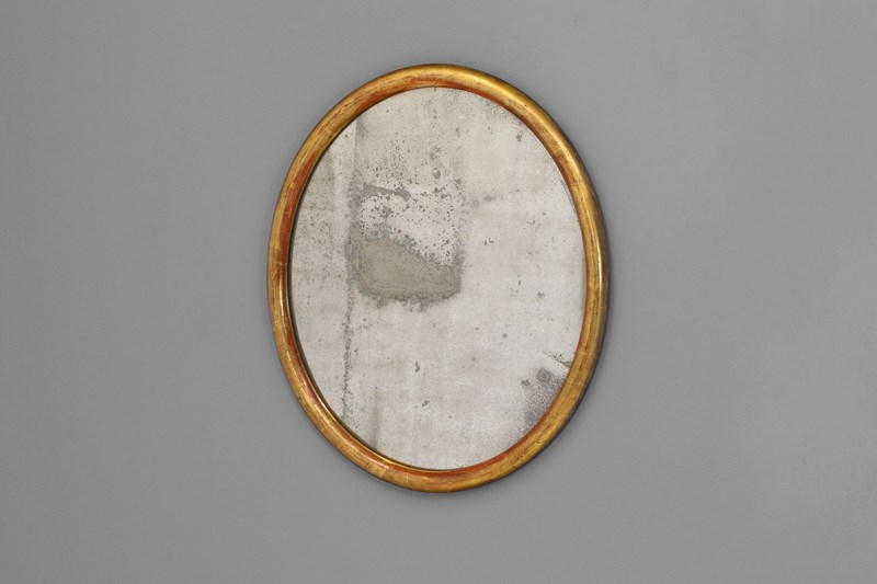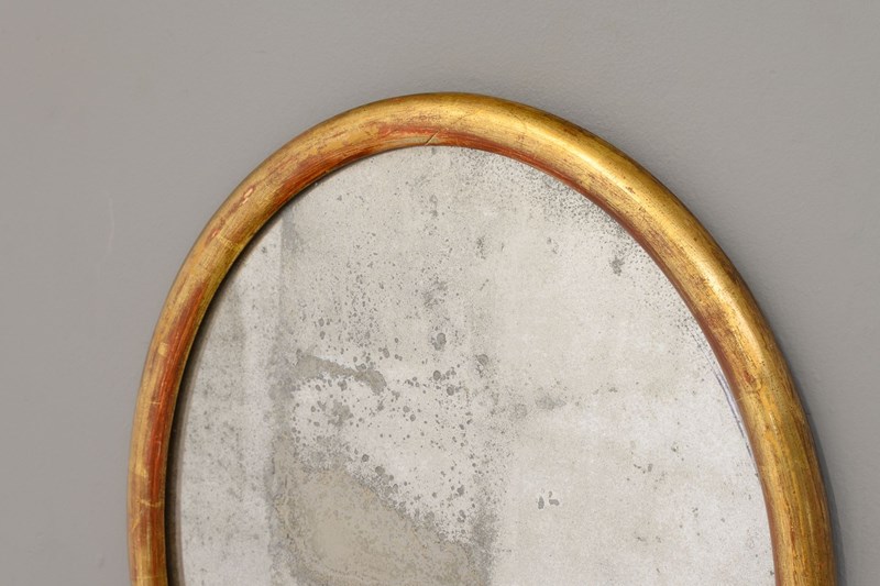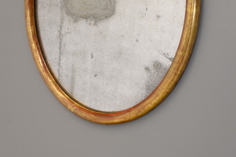 Oval mirror with gilded, beaded frame and old mirror glass. France circa 1880.