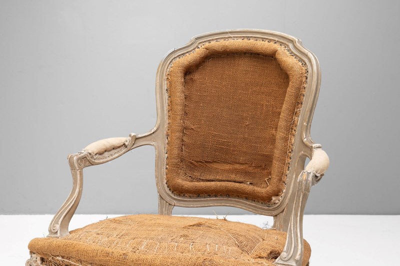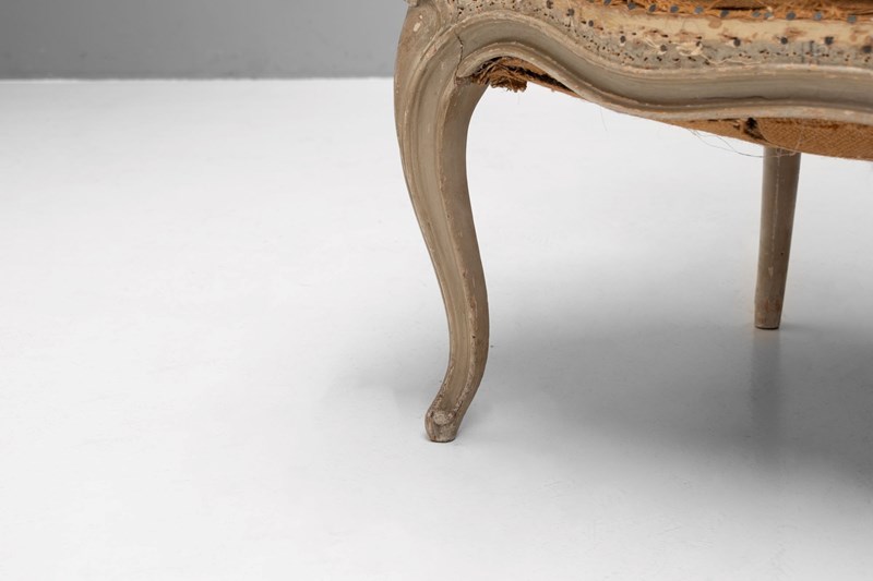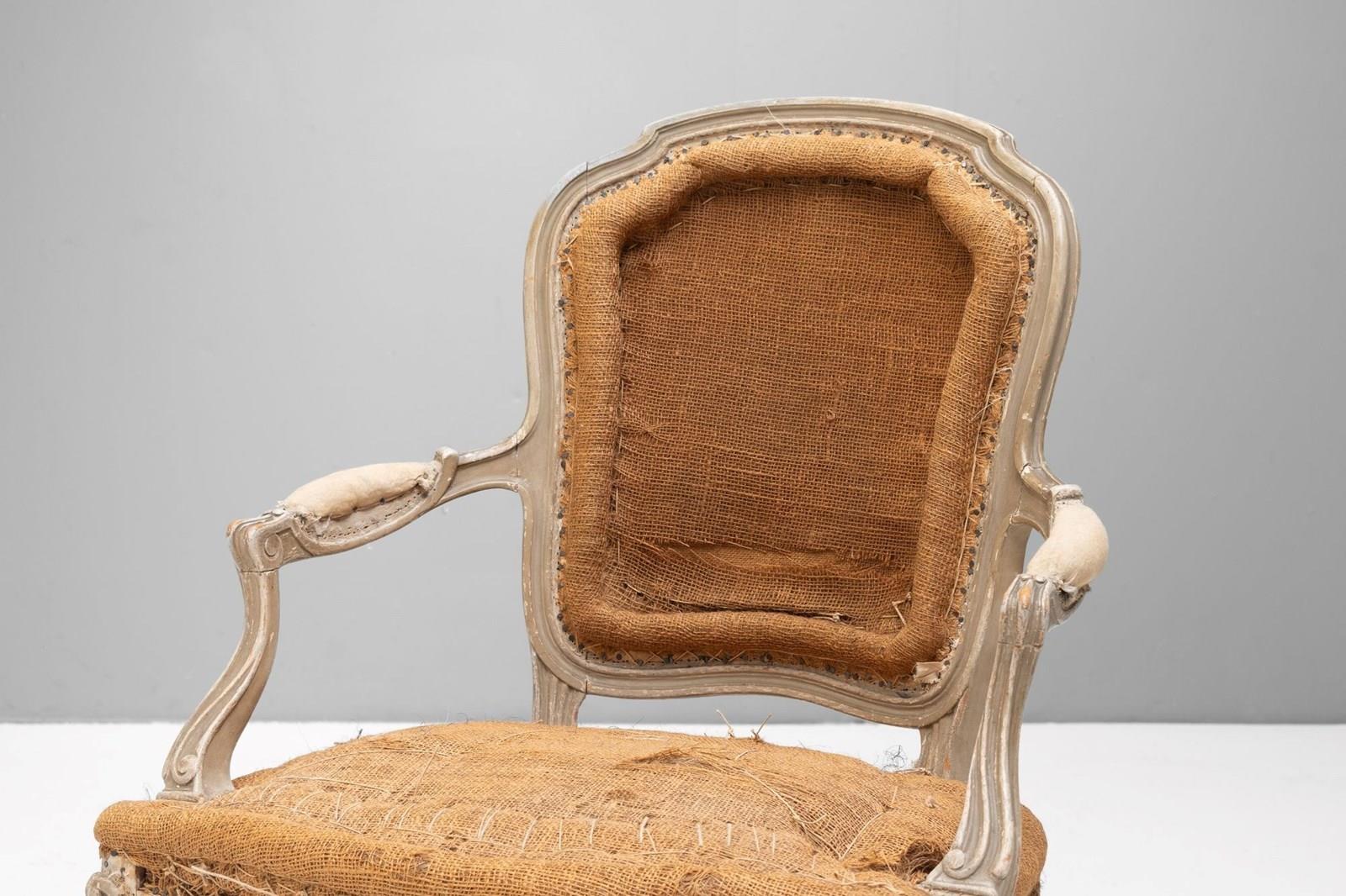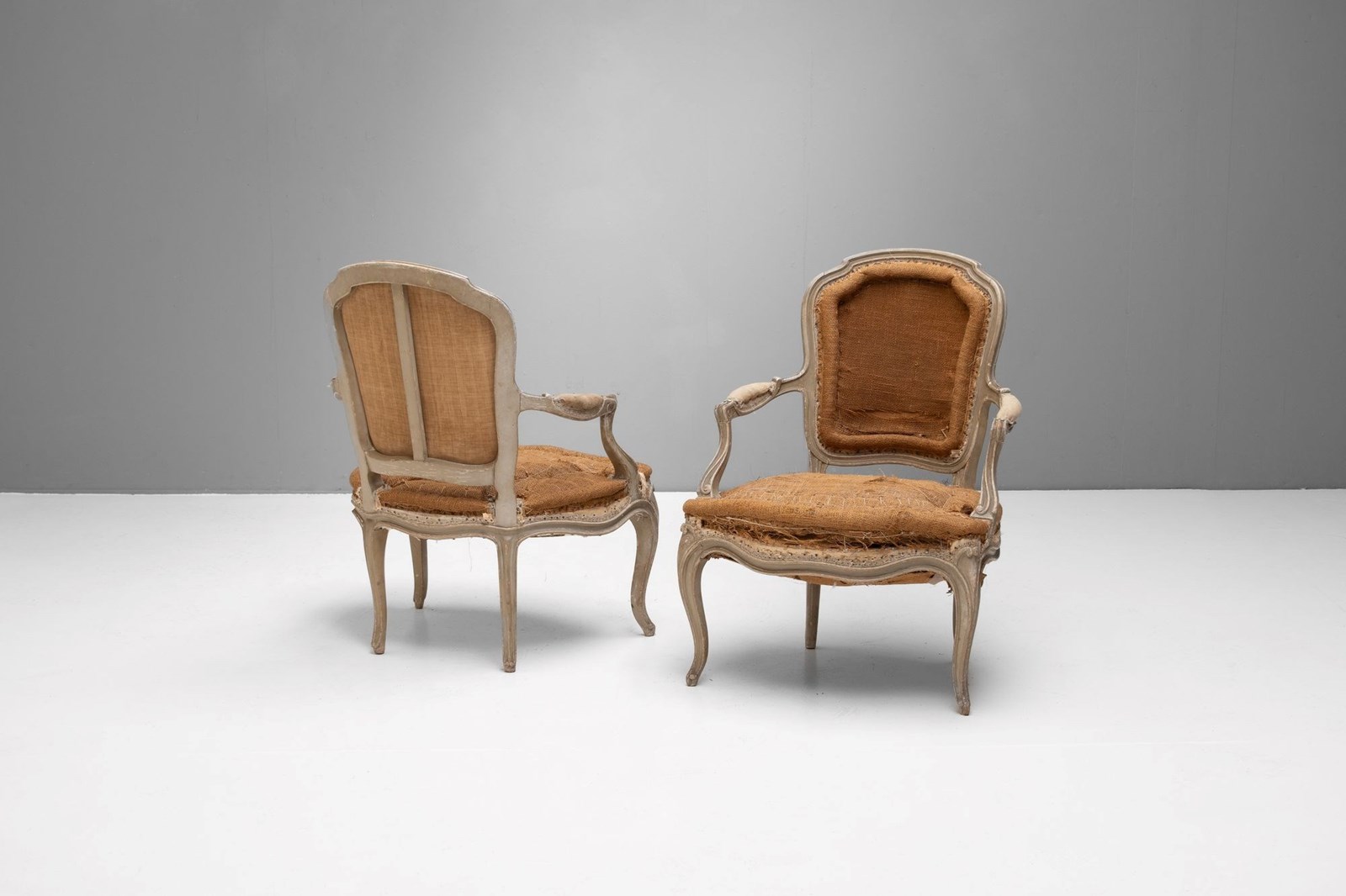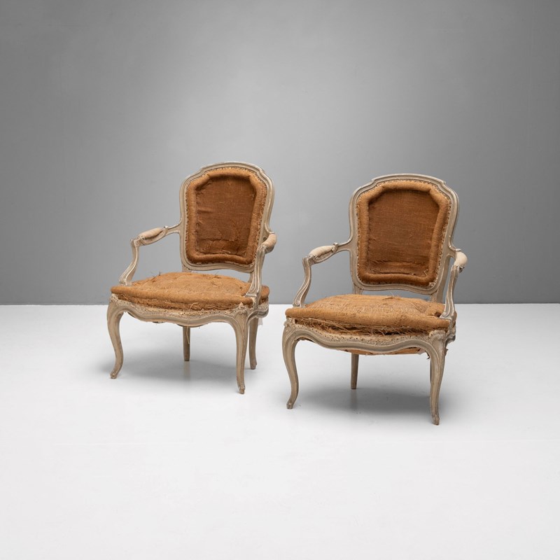 Pair of French salon chairs on cabriole legs in original paint finish.