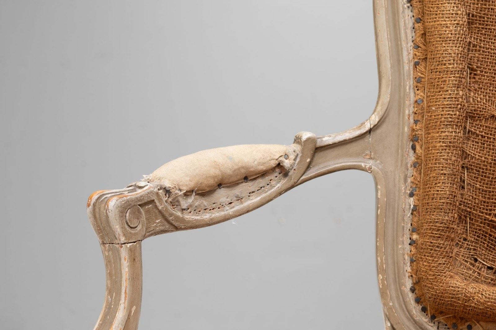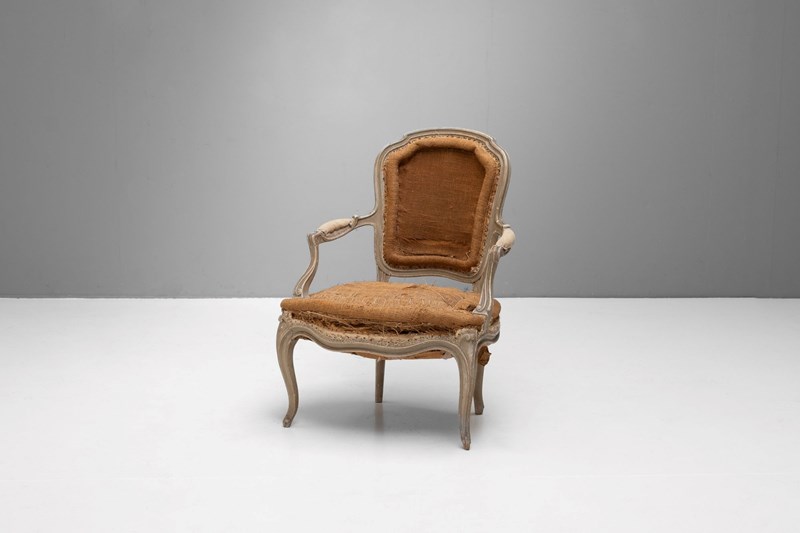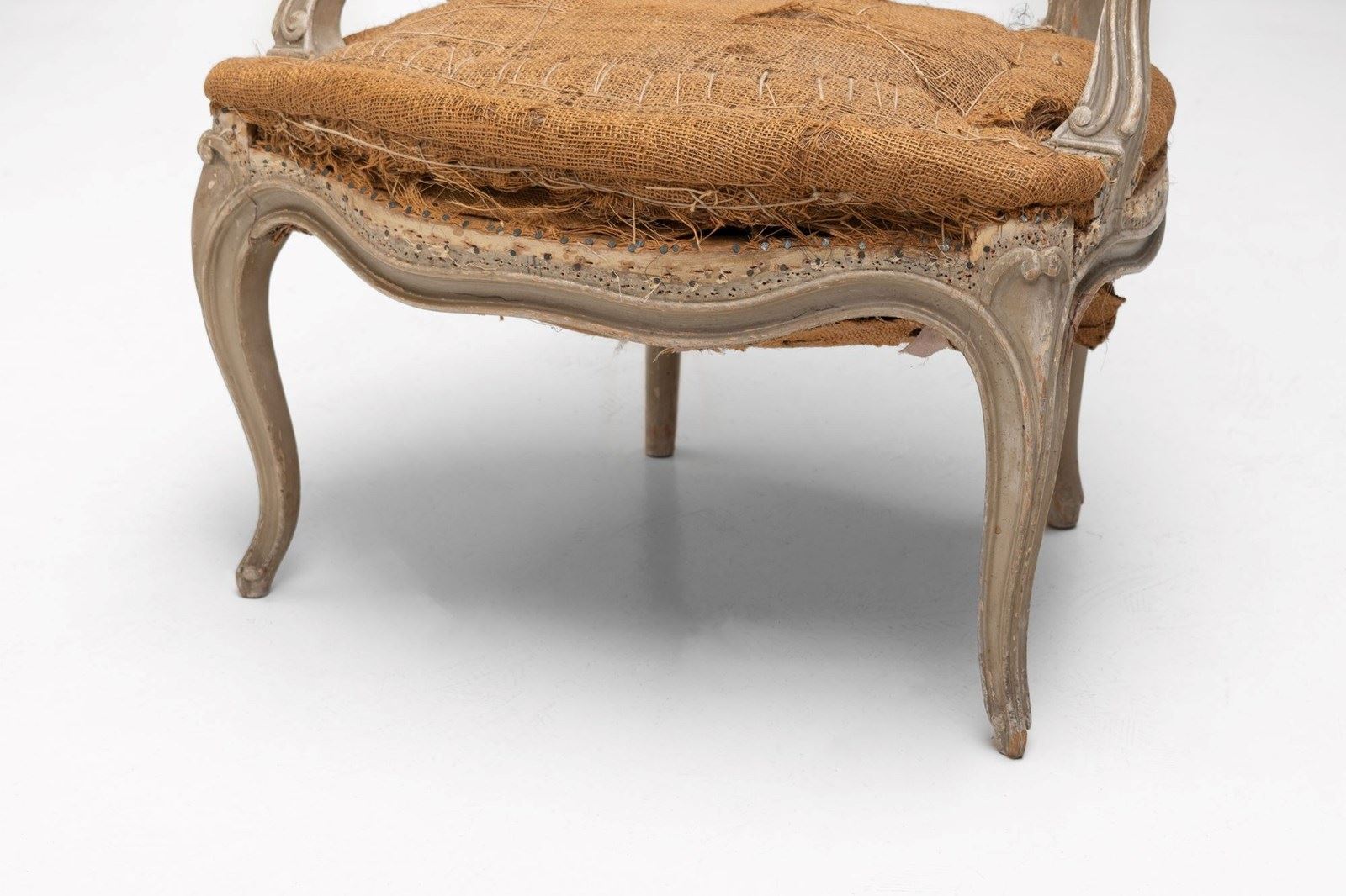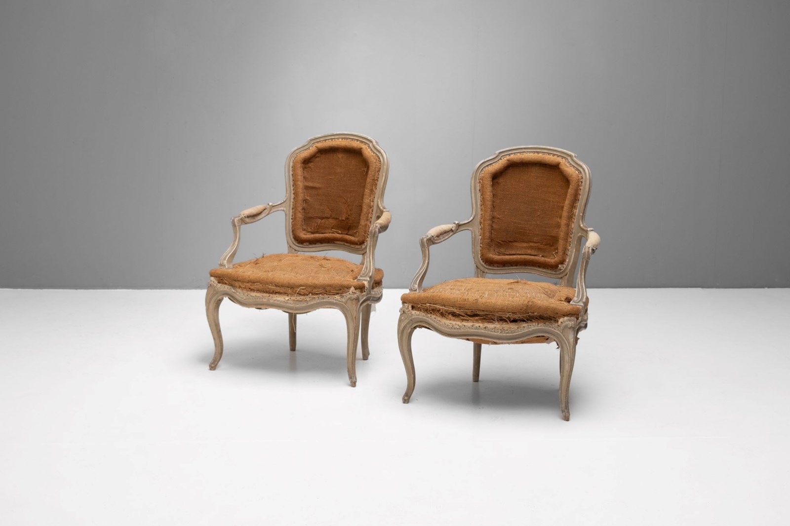 Pair of French salon chairs on cabriole legs in original paint finish.