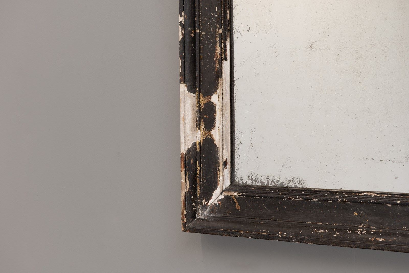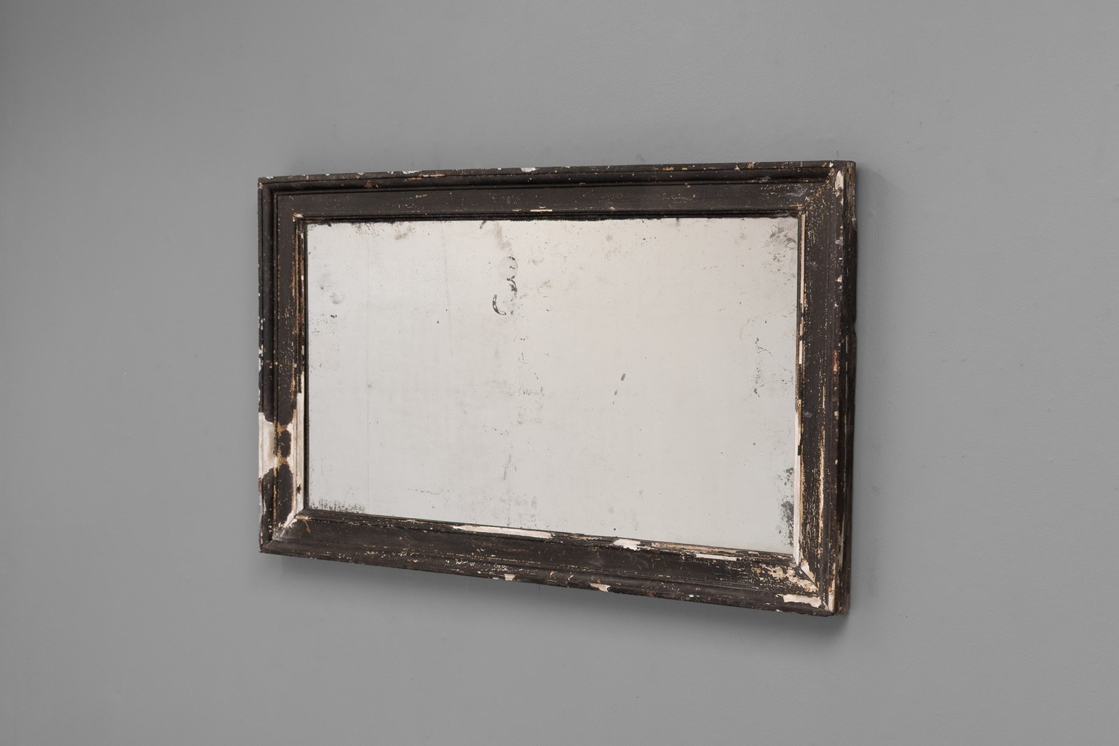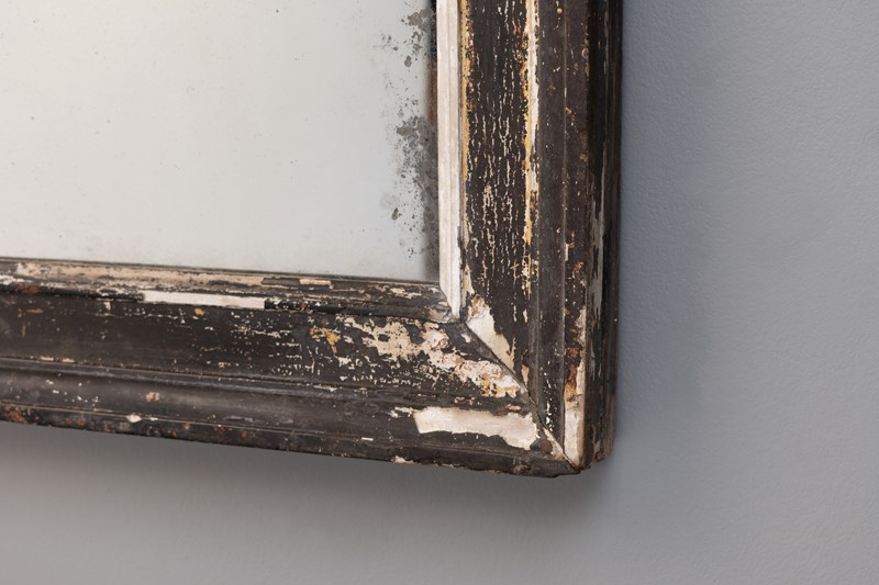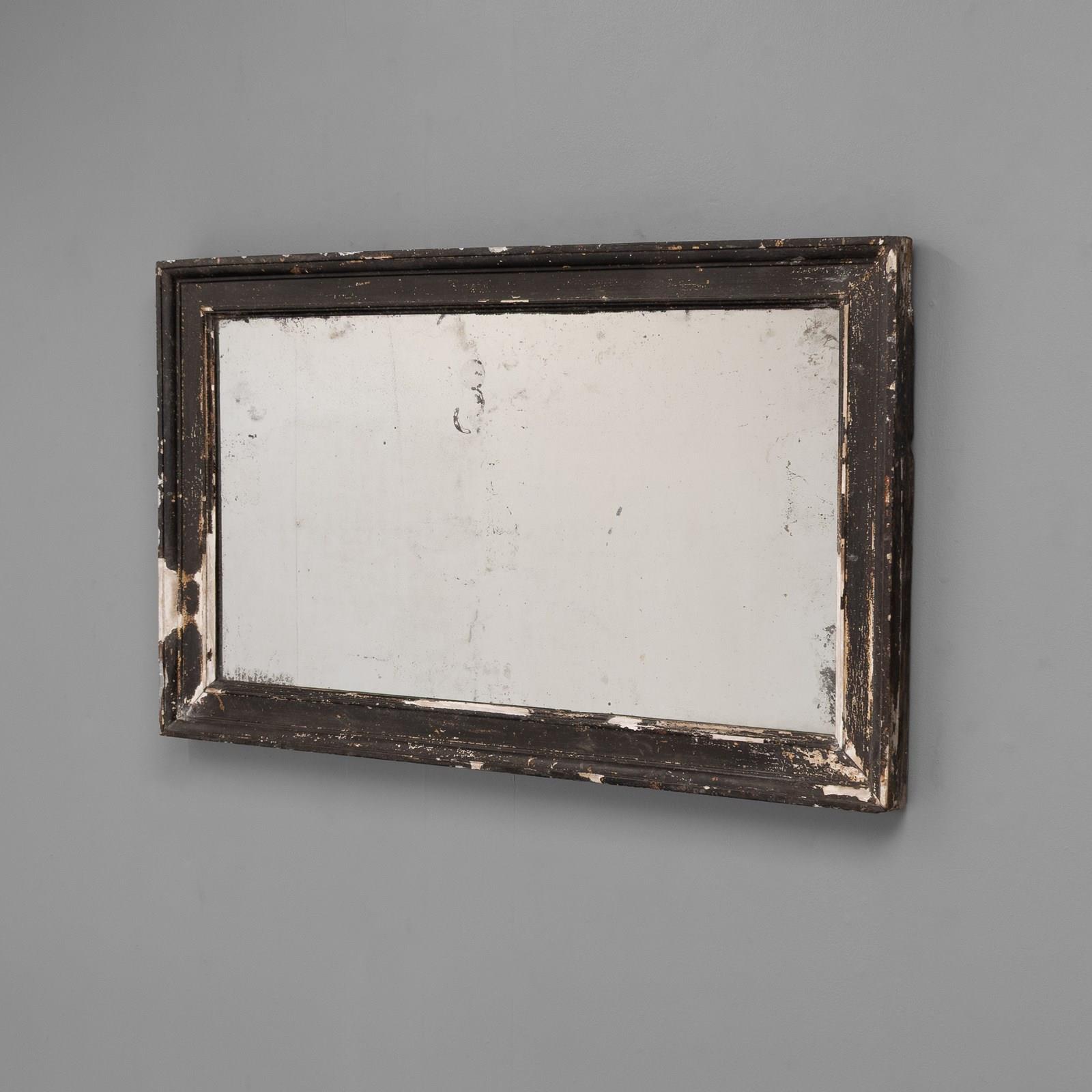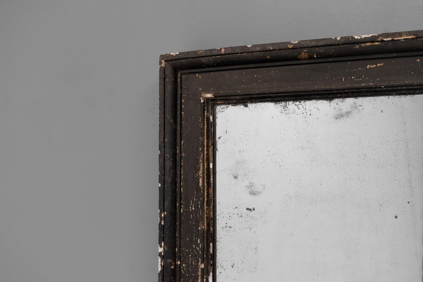 Late 19th century pine framed mirror in original distressed paint finish. Original glass with foxing to the glass. France circa 1890.