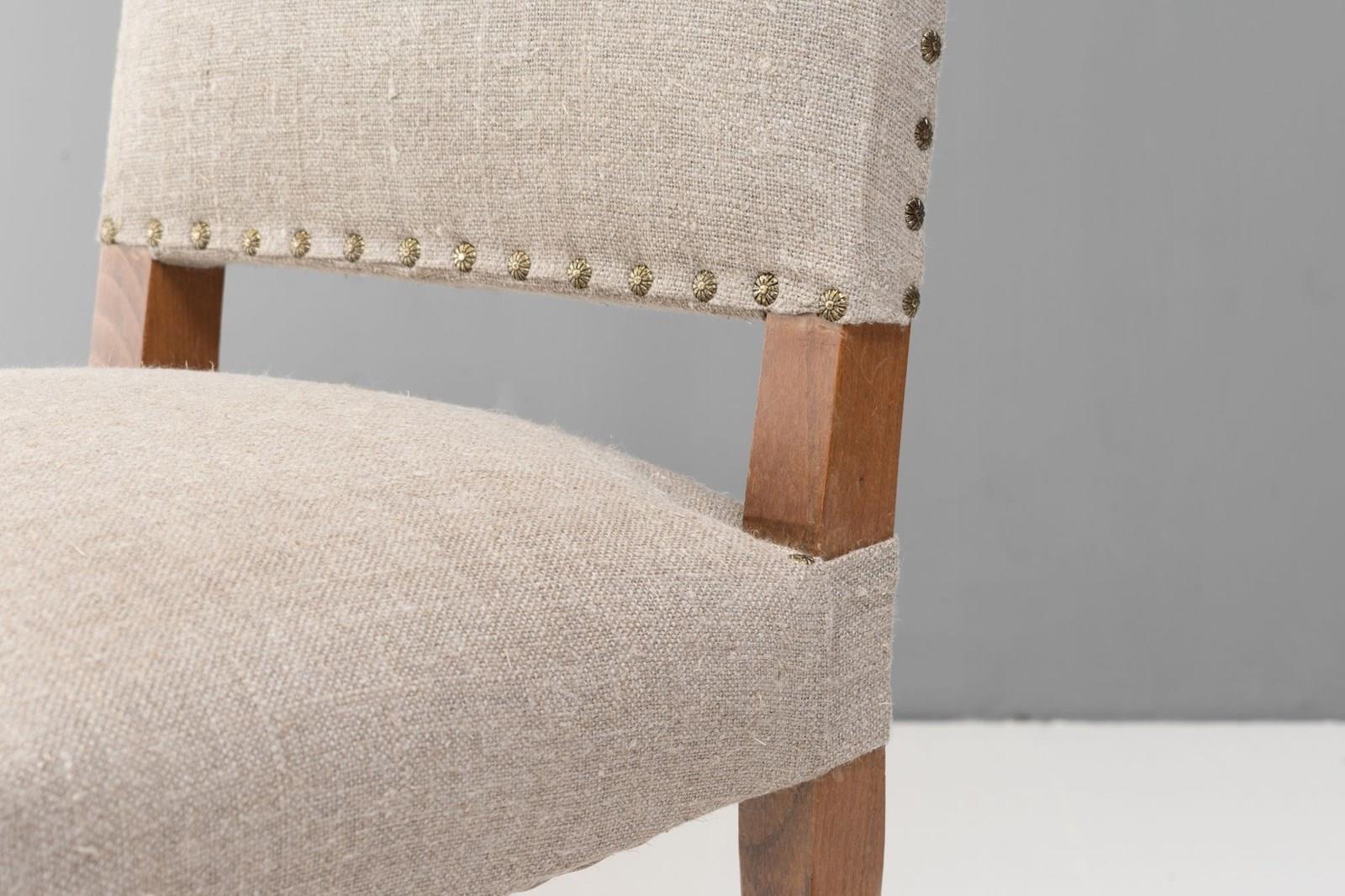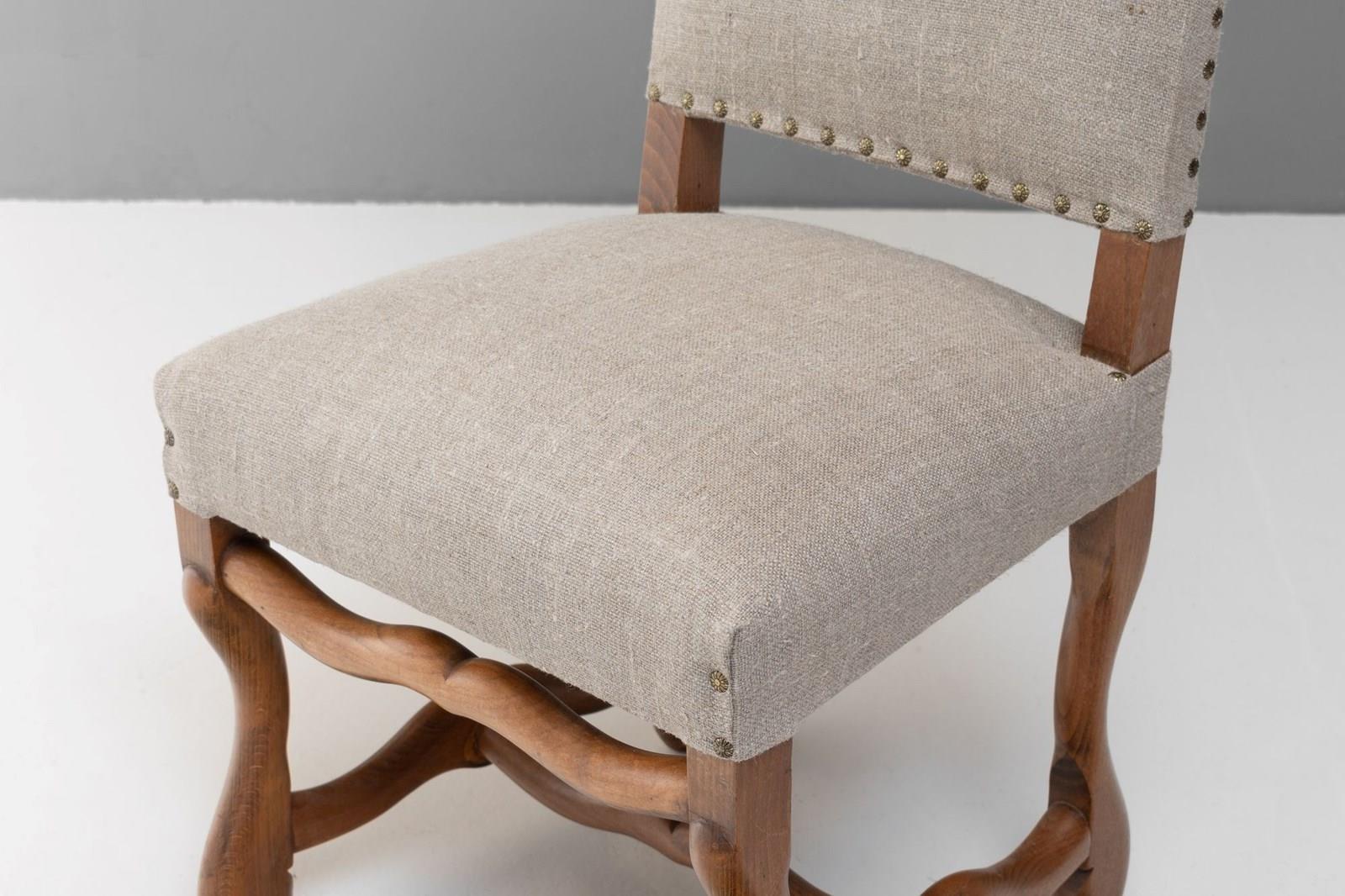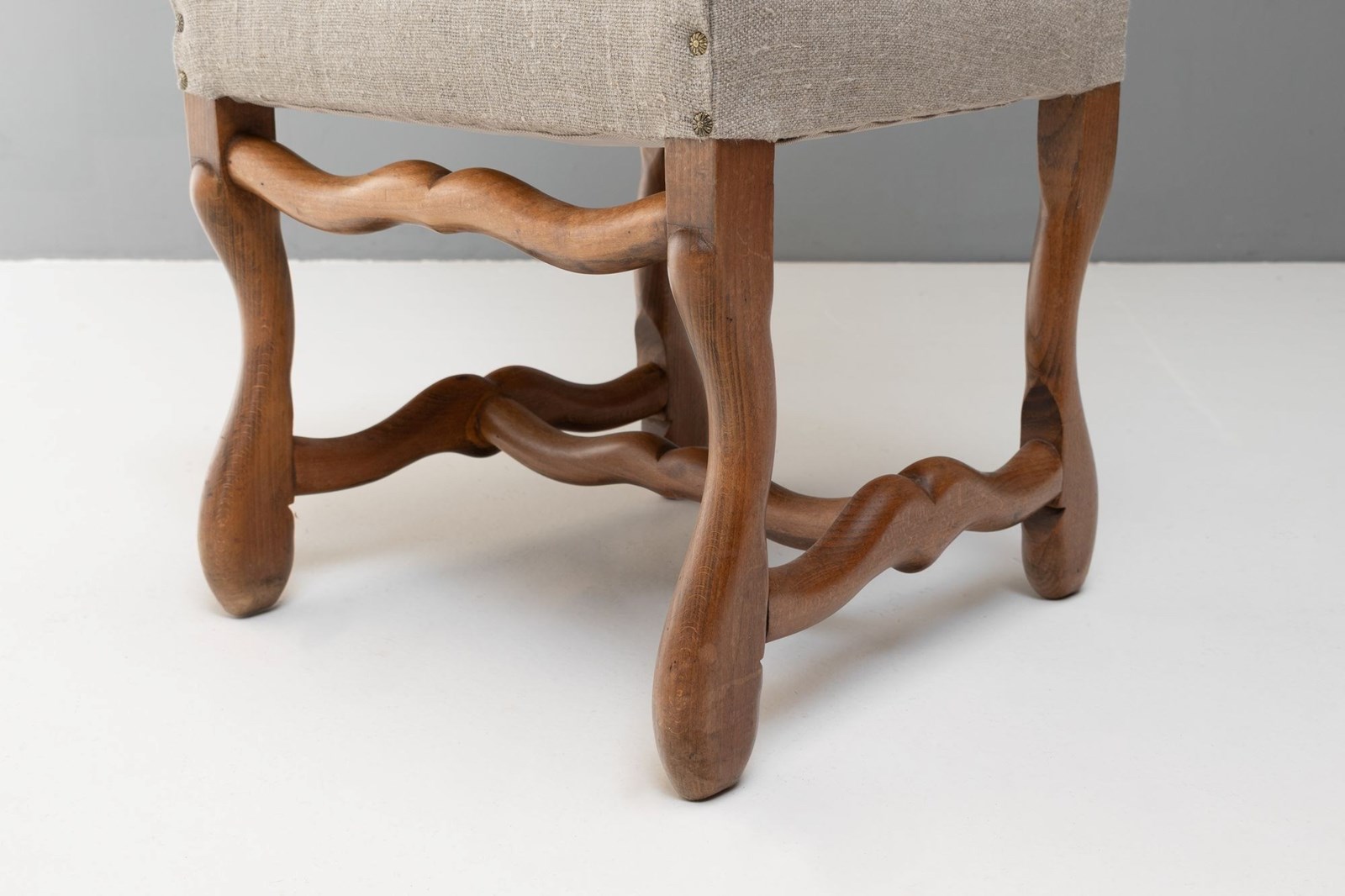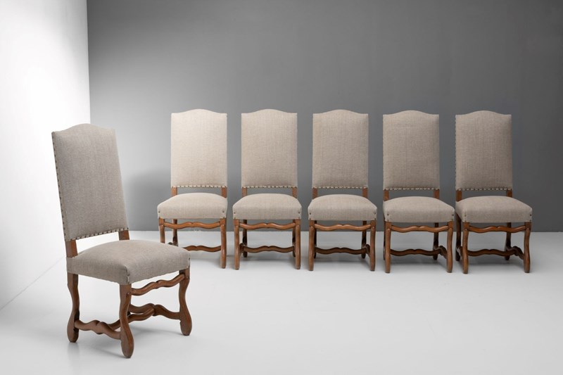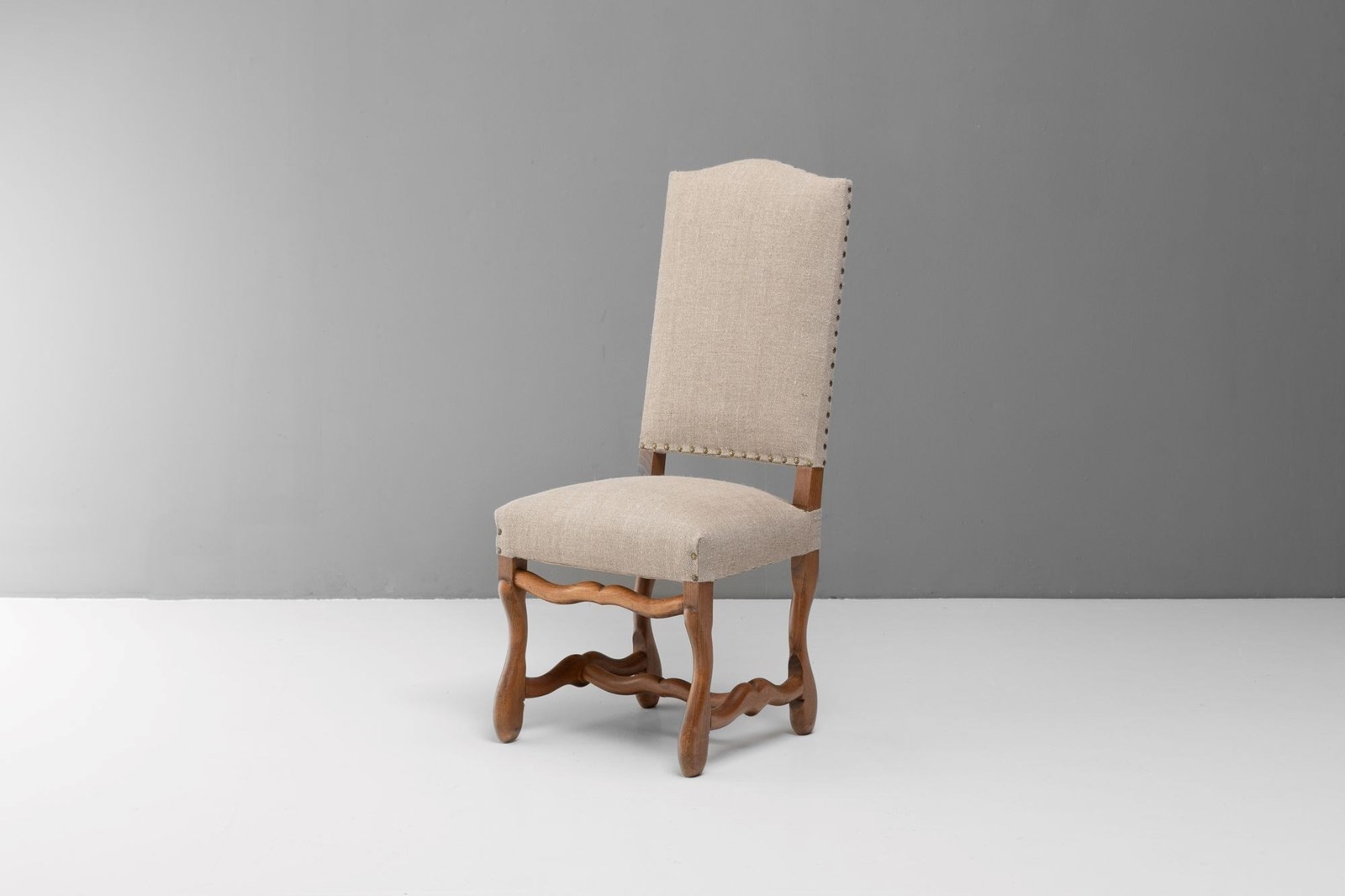 Set of six reupholstered oak framed Os de Mouton dining chairs. Circa 1950