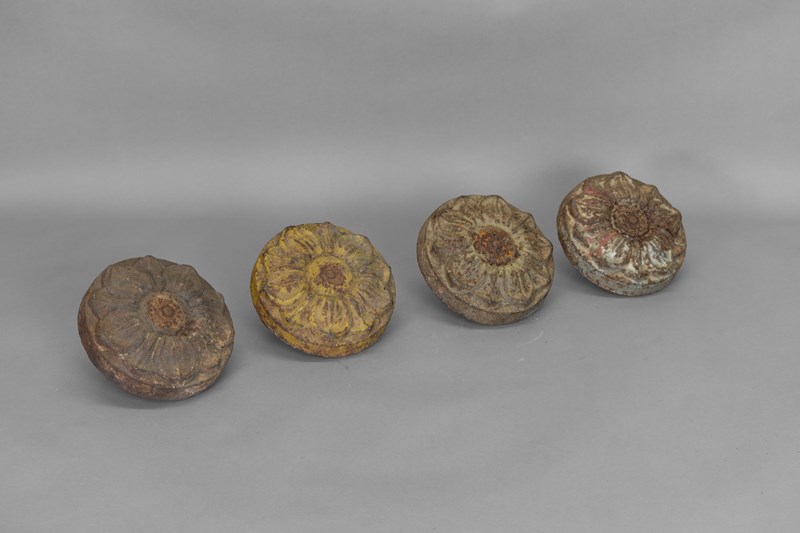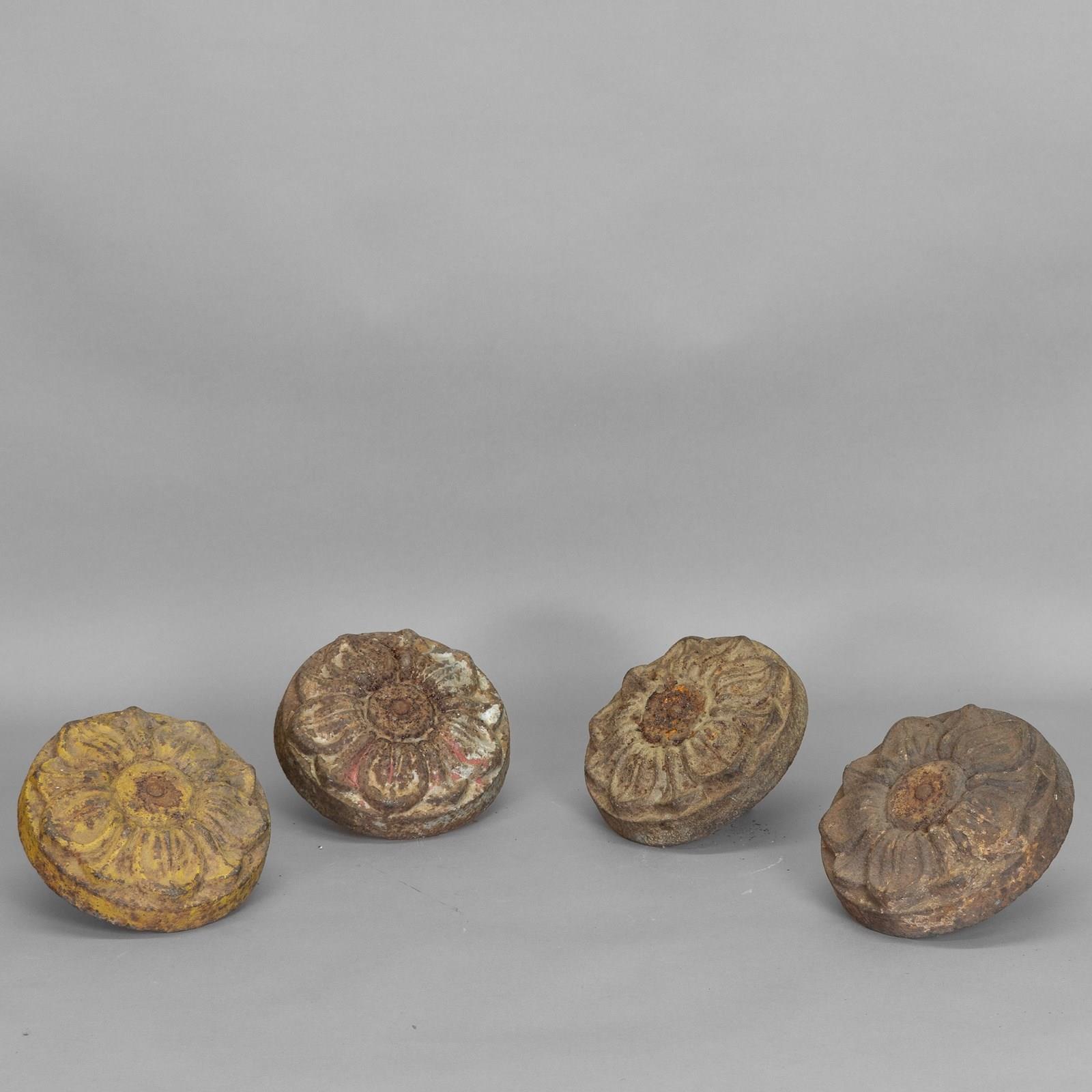 Set of 4 threaded cast iron decorative finials. Circa 1900
