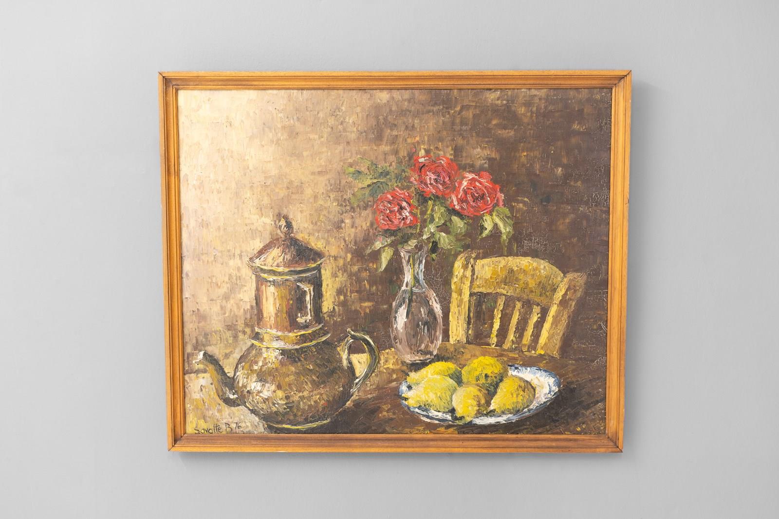 Still life composition in oil by Savatte. Circa 1930