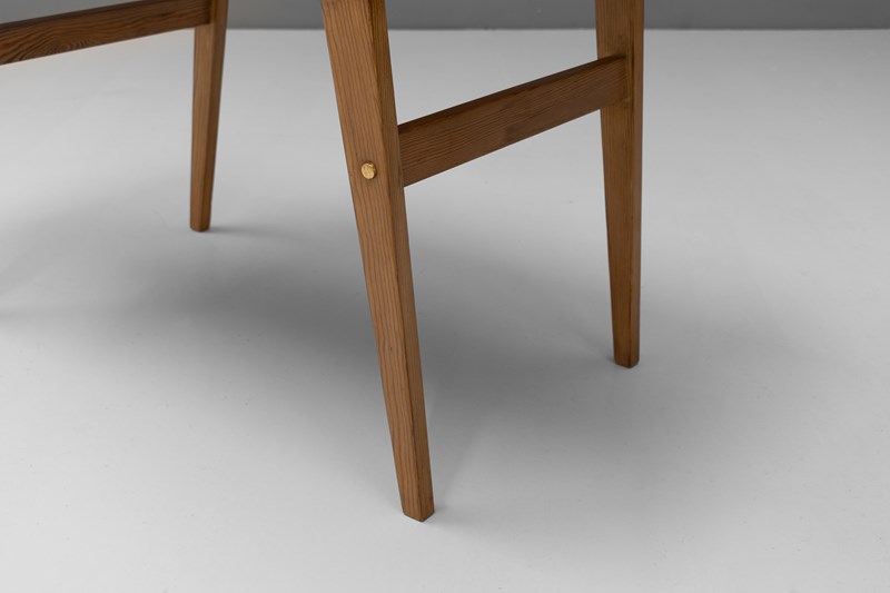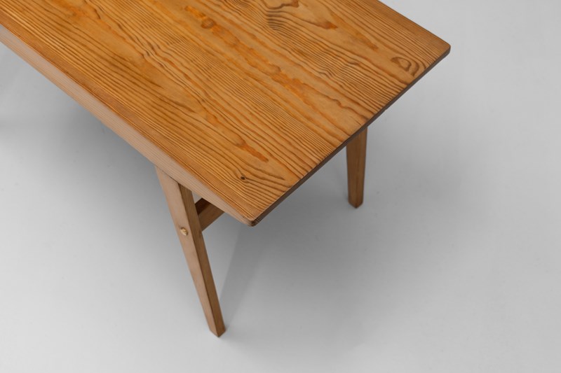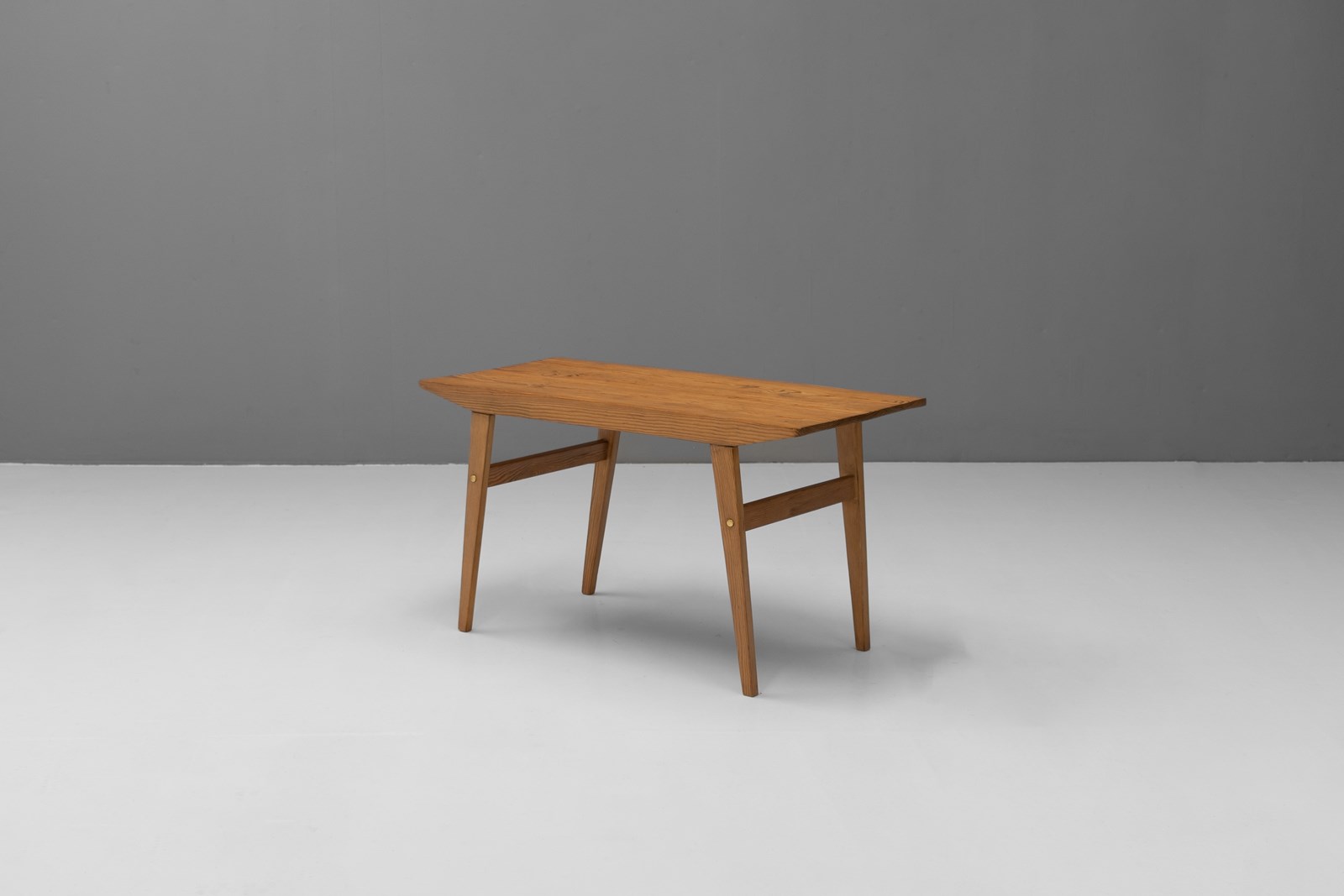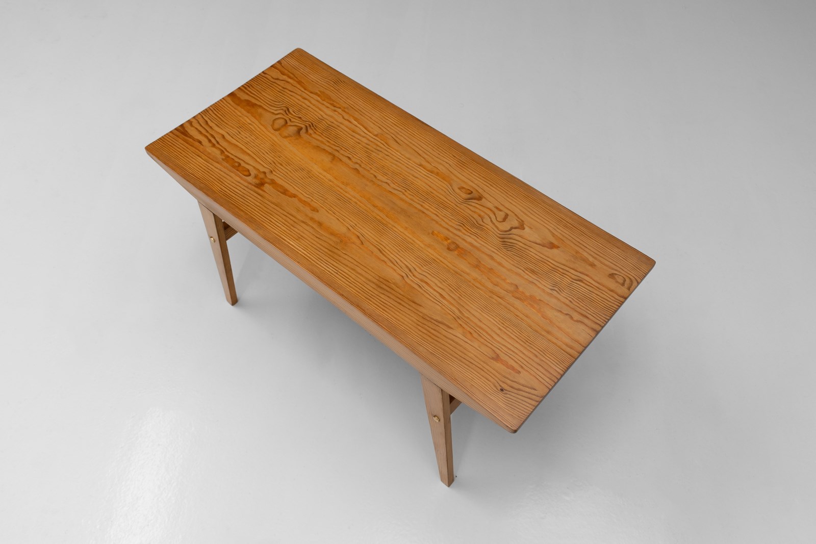 Swedish solid pine coffee table with brass details. Re-finished. Sweden circa 1960.