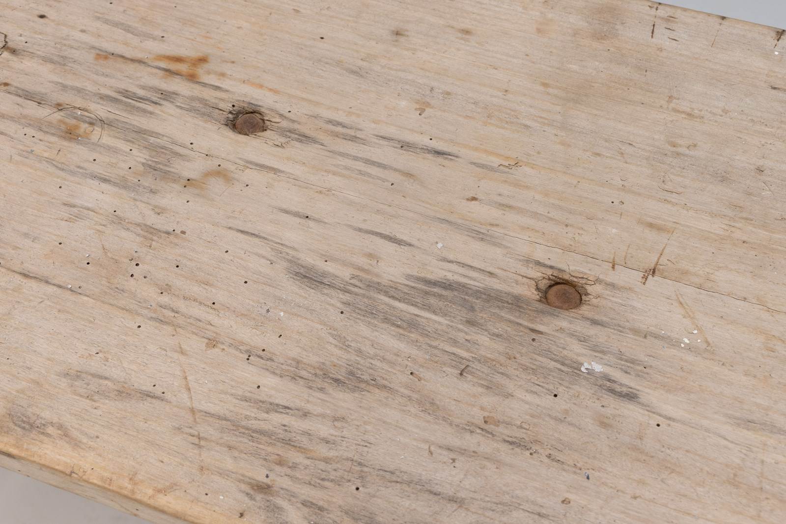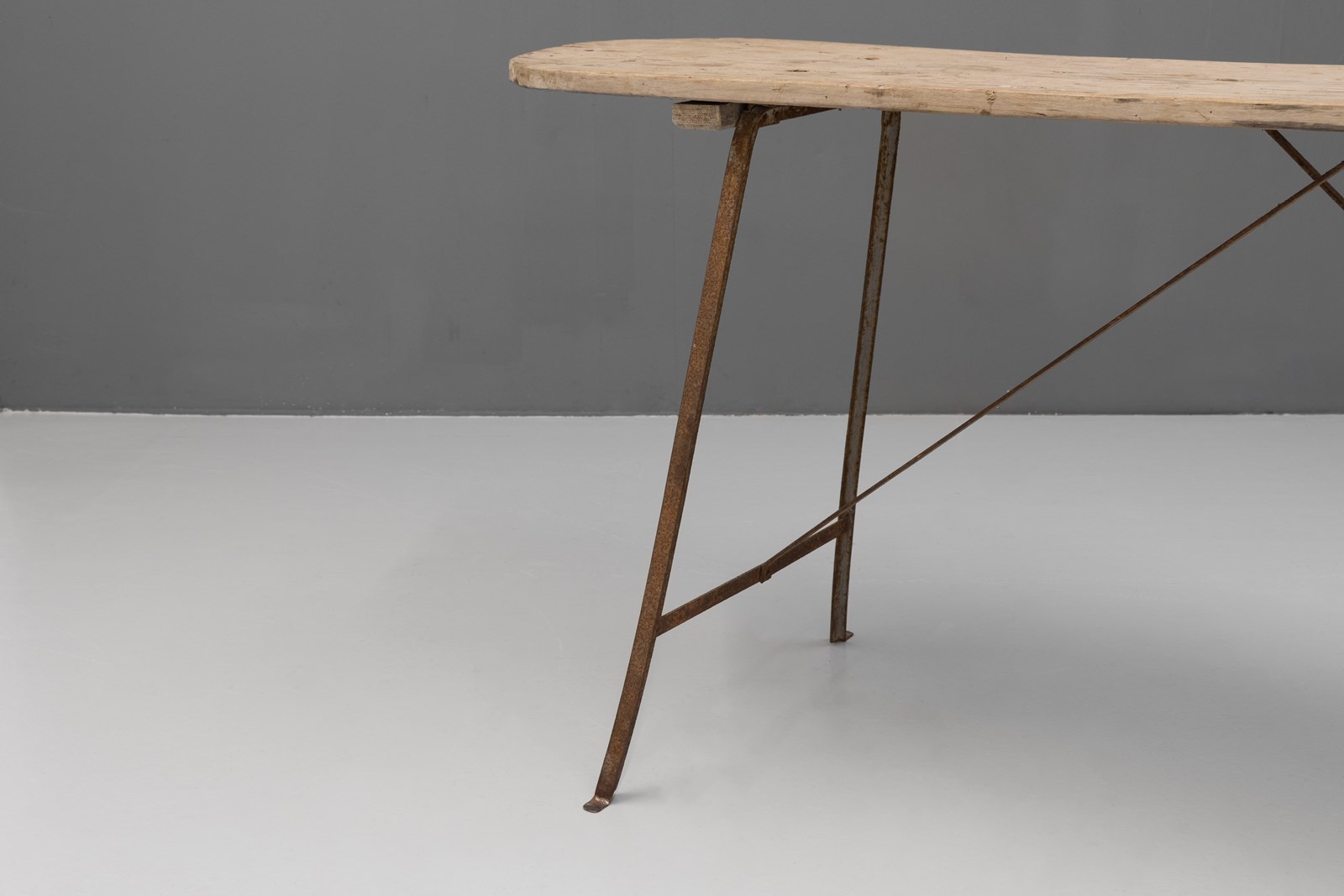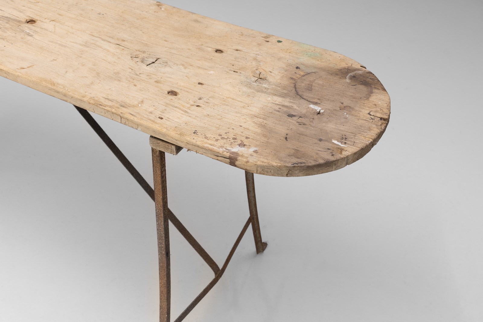 French wash table with poplar top on a metal frame base. Circa 1900.