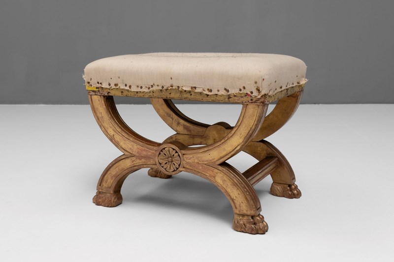 X frame footstool with original gilded finish.