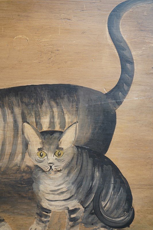 Naïve animal paintings of this period, particularly those depicting cats and dogs, have a long-standing appeal, sitting comfortably within both folk art traditions and early provincial British painting. Examples with this level of charm, subject matter, and unforced surface are increasingly sought after, particularly when retaining their original panel support rather than later canvas transfers.