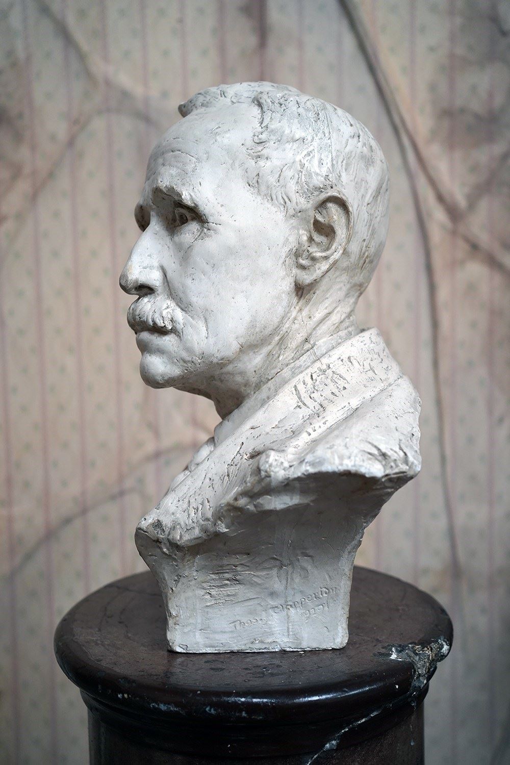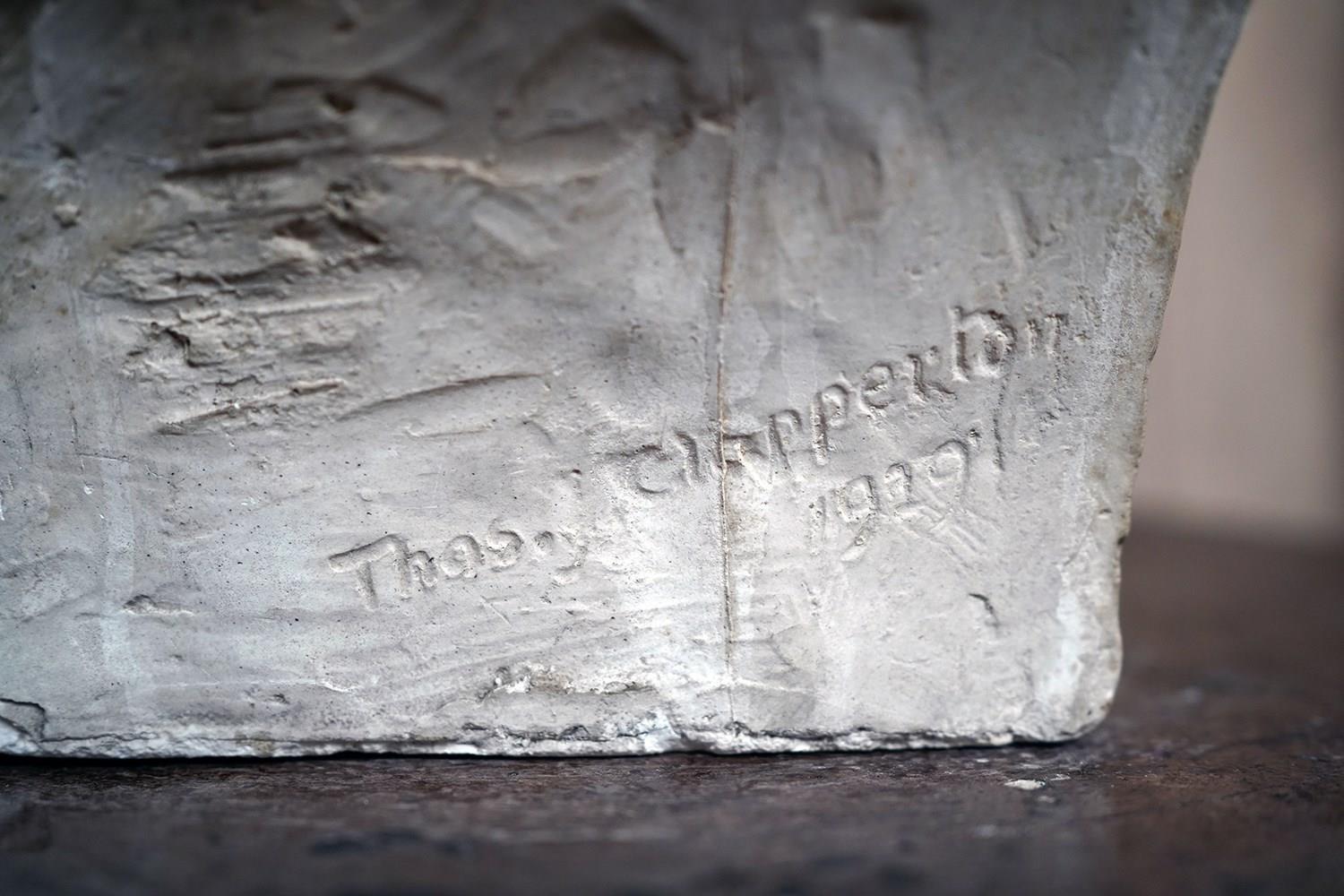 It is known that Clapperton and Tait both moved in the artistic circles of the Scottish Borders at the same time and were believed to be friends. This model was also cast in bronze, an example (also dated 1929) is held at the Museum & Gallery Service Headquarters of the Scottish Borders Council, Selkirk. The bust may possibly have been commissioned by Galashiels Town Council from Clapperton in 1929 to commemorative Tait's 15 years of service the previous year. The collection of the Scottish Borders Council also contains several other plaster busts by Clapperton, including one of the Borders artist Tom Scott (1854–1927).