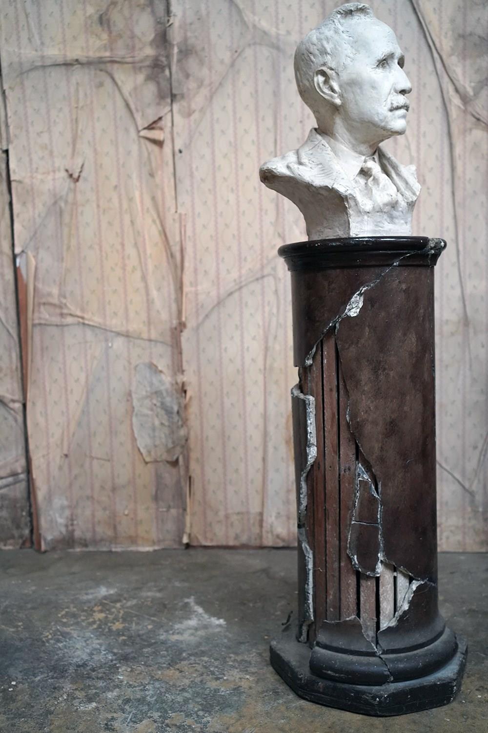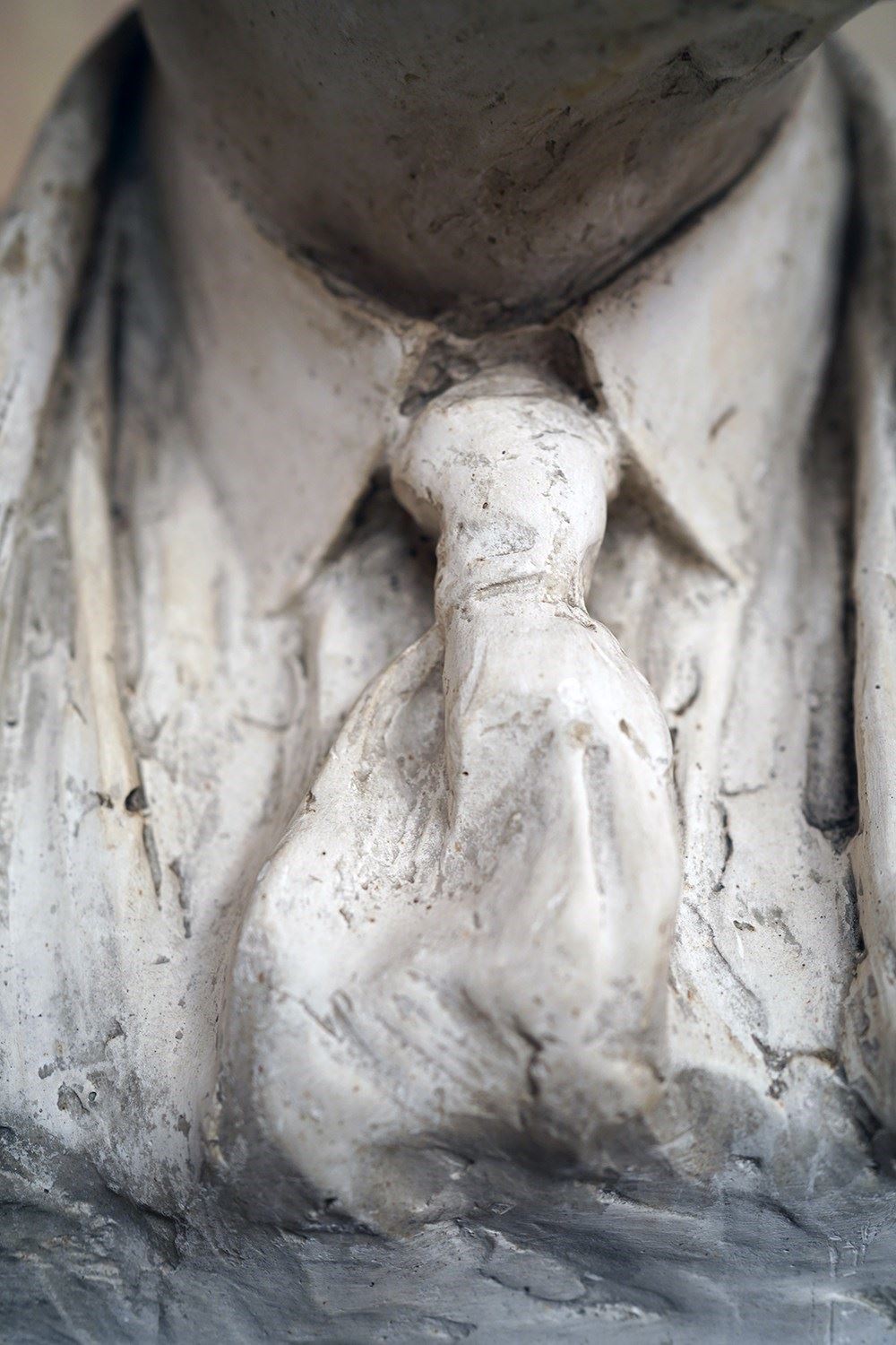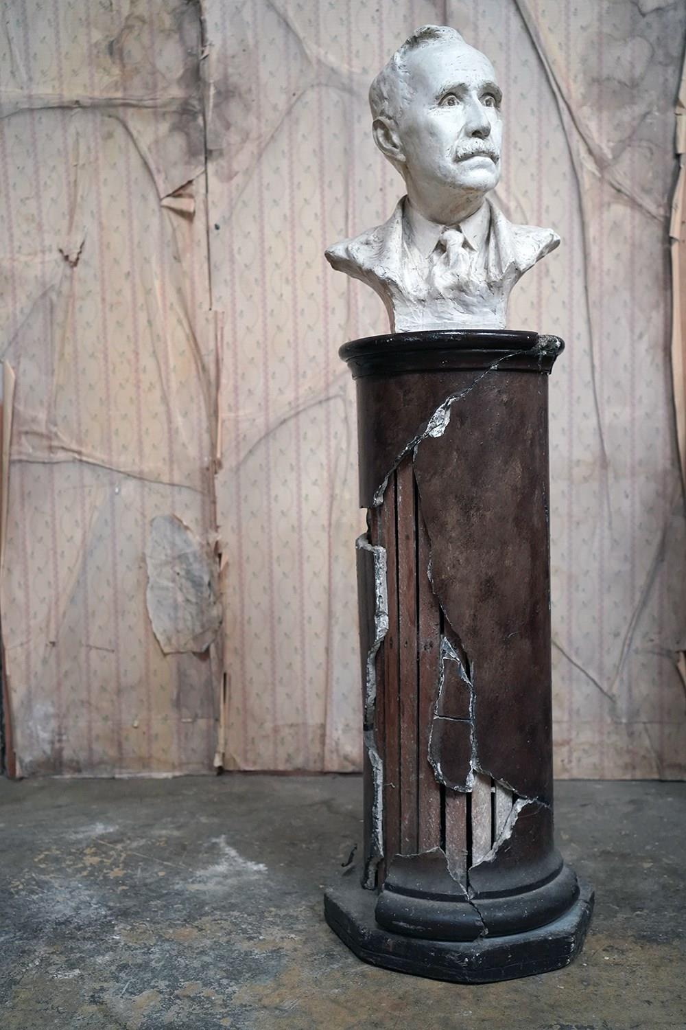 The finely modelled early 20th-century Scottish plaster portrait bust of the artist, designer and civic figure George Hope Tait (1865–1950), executed in 1929 by the noted Borders sculptor Thomas J. Clapperton (1879–1962) and cast with a quiet naturalism typical of Clapperton’s portrait work, the sitter shown turned slightly to his left with a sensitively observed expression, the surface retaining its original chalky studio finish and exhibiting the sculptor’s characteristic hand-worked texture across the coat and collar, stamped as such to the base and of museum quality.