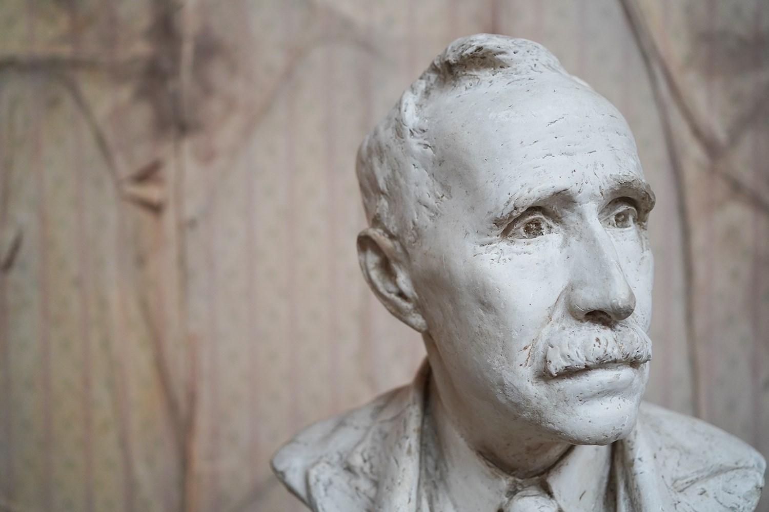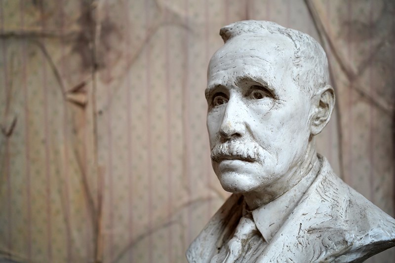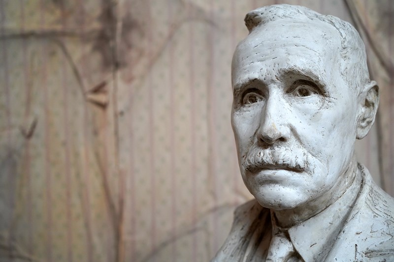 Regarded as ‘The Border Sculptor’, Thomas Clapperton studied at the Mechanics Institute in Galashiels before completing his training at the Glasgow School of Art and at Kensington School of Art, as well as the Royal Academy School in London. He became an apprentice to Sir William Goscombe John, one of the most eminent sculptors of the period. After further study in Paris and Rome, Clapperton eventually settled in London and set up a sculptor's studio in Chelsea. His most renowned work is the sculpture of Robert the Bruce at Edinburgh Castle, and other well-regarded works include the frieze at Liberty & Co. in London; ‘The Border Reiver’ at the Galashiels War Memorial, the bust of Sir Walter Scott in Bank Street, Galashiels, and the Flodden Memorial and bronzes surrounding the Mungo Park Memorial in Selkirk. Clapperton is also known for the much-loved Wonderland statue in Oamaru’s Botanical Gardens in New Zealand.