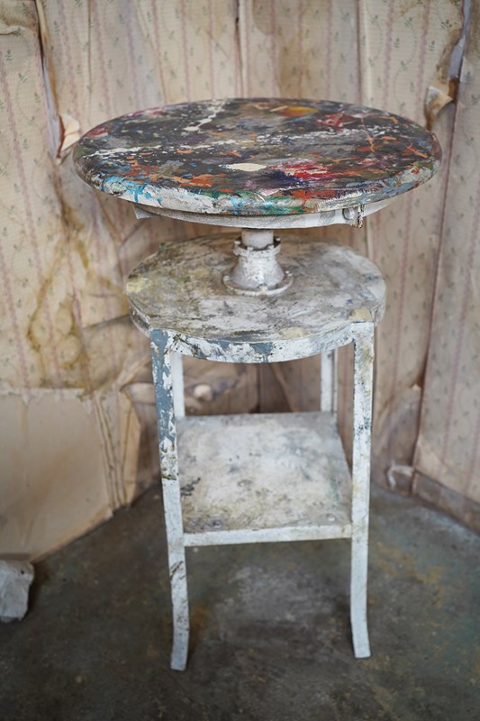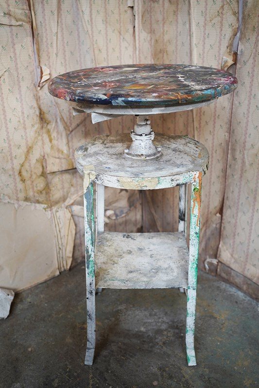 This stand would have been part of the daily life of the artist for decades and as such it proves a veritable tableau of creative activity, making for a unique sculptural piece, now a work of art in itself.
