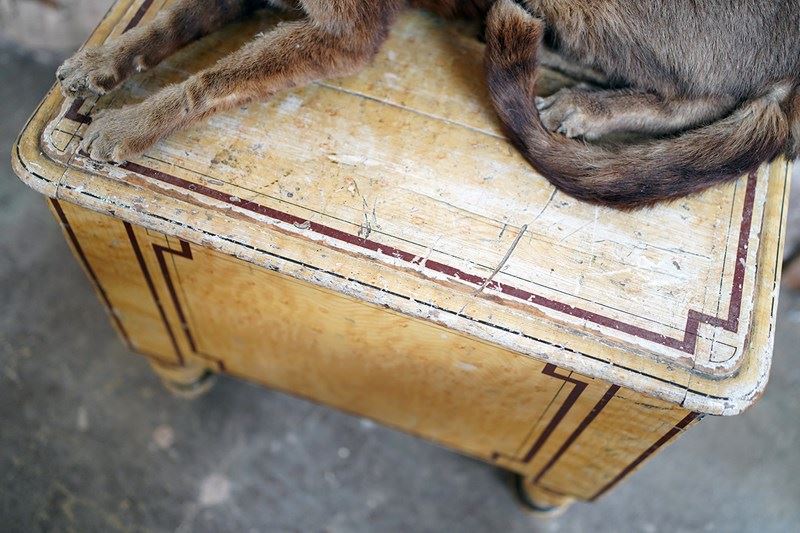 The piece retains a pleasing dry surface with an honest scatter of knocks, scuffs, and wear commensurate with its years of use. The piece exudes a gentle provincial elegance, its small scale lending itself to a variety of intimate settings — from bedside companion to hallway accent — where its warm, time-softened hues may be best admired.