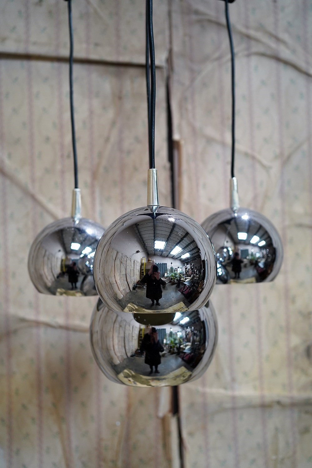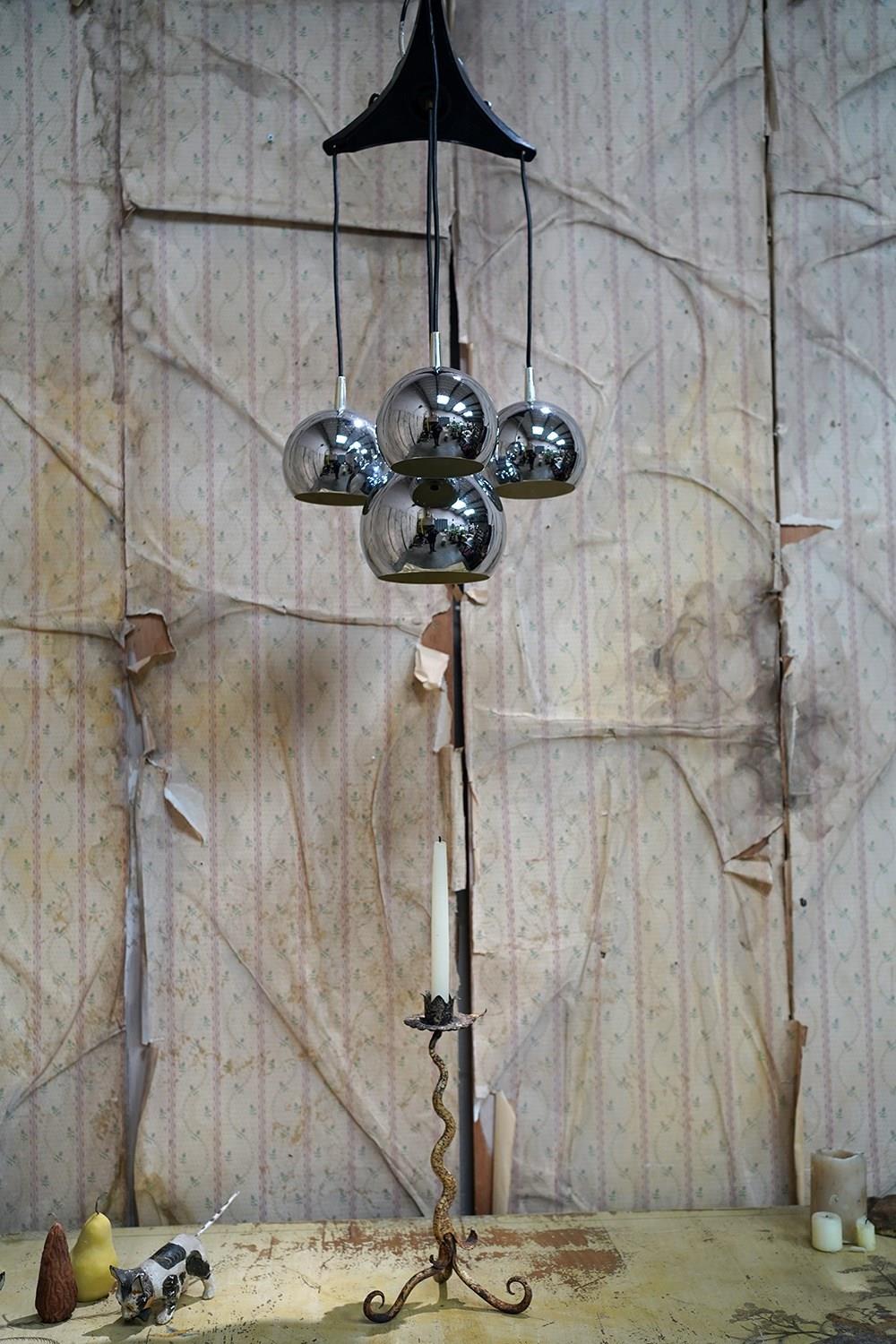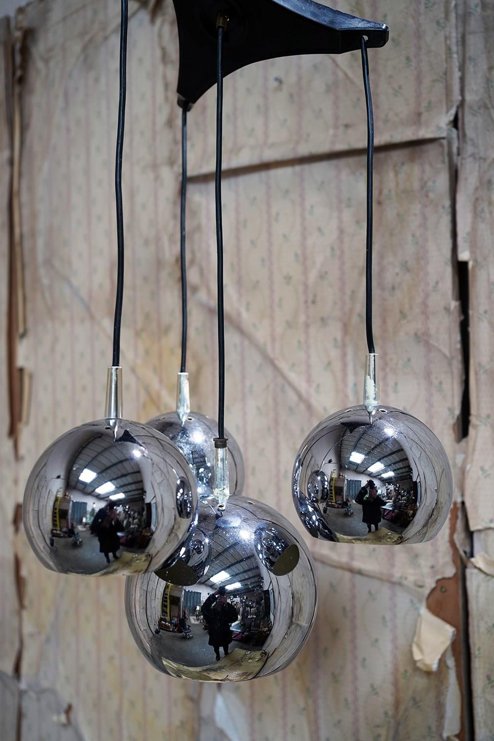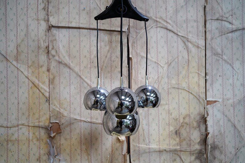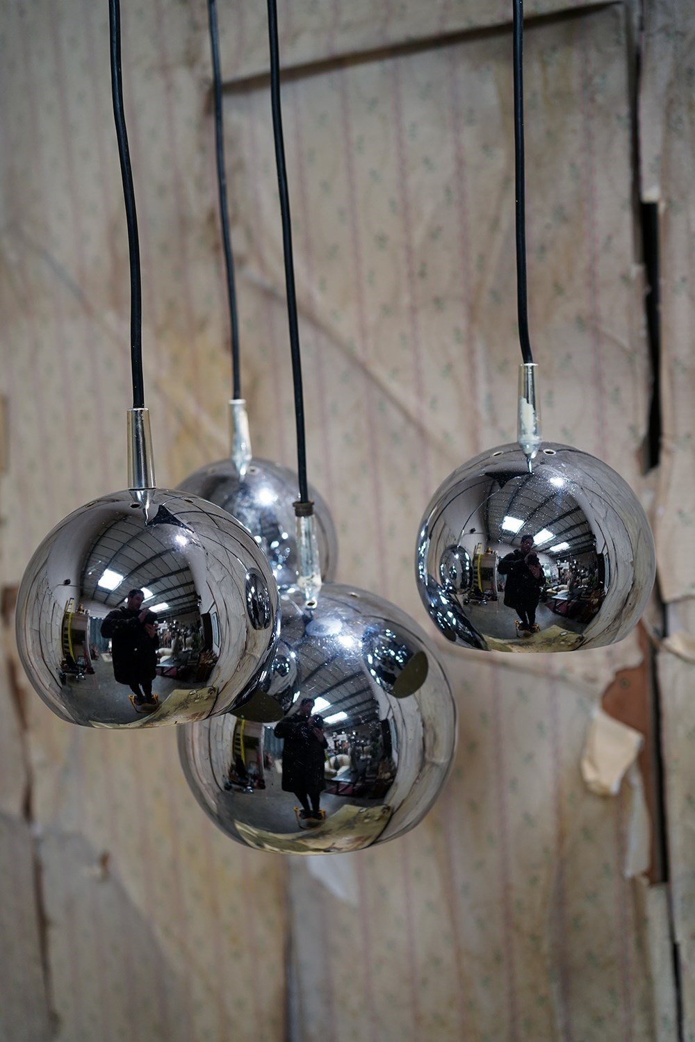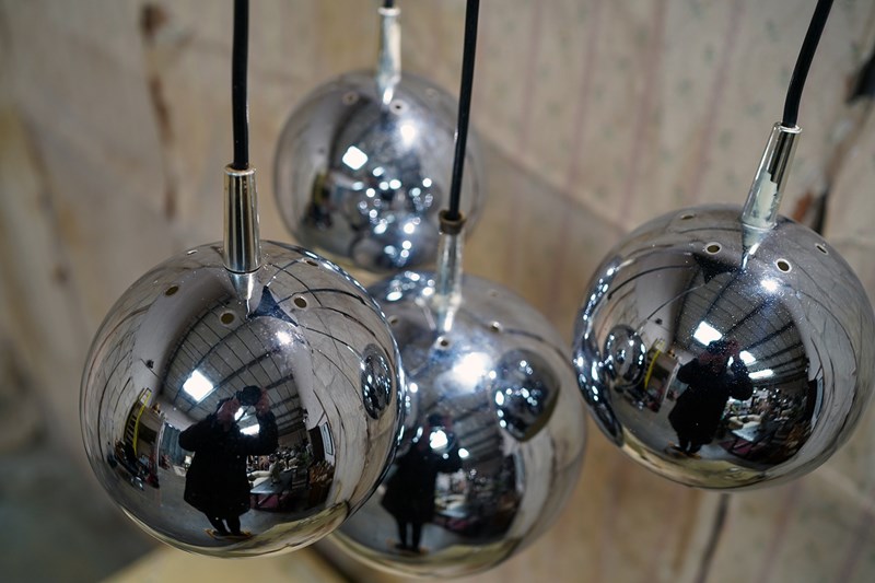 These cascade globe lights emerged from the great Italian lighting ateliers of the 1960s to 80s, when chrome, mirrored surfaces and modular suspended forms defined a new futuristic domestic aesthetic. They sit comfortably in the lineage of space-age modernism; glamorous, reflective, slightly decadent, yet still remarkably usable today. Italian makers mastered this balance between industrial finish and sensual form.