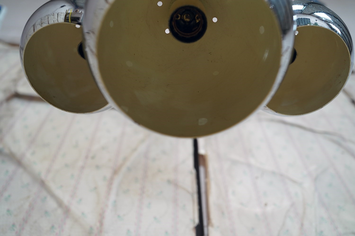 The light is in good vintage condition, with light surface wear, minor marks and age-related patination to the chrome visible on close inspection. Wiring present but not tested; would benefit from inspection and installation by a qualified electrician. Structurally sound and complete.
