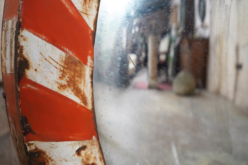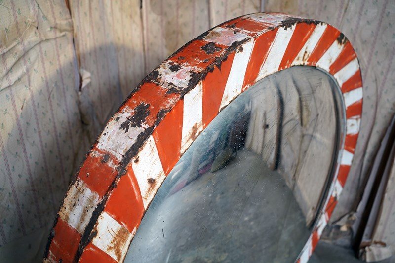 This type of mirror would originally be found on railways in Eastern Europe, such as the tram systems in Prague harking back to the industrial era; these mirrors were used in and around the shunting yards and on the railways of the old Communist Empire.
