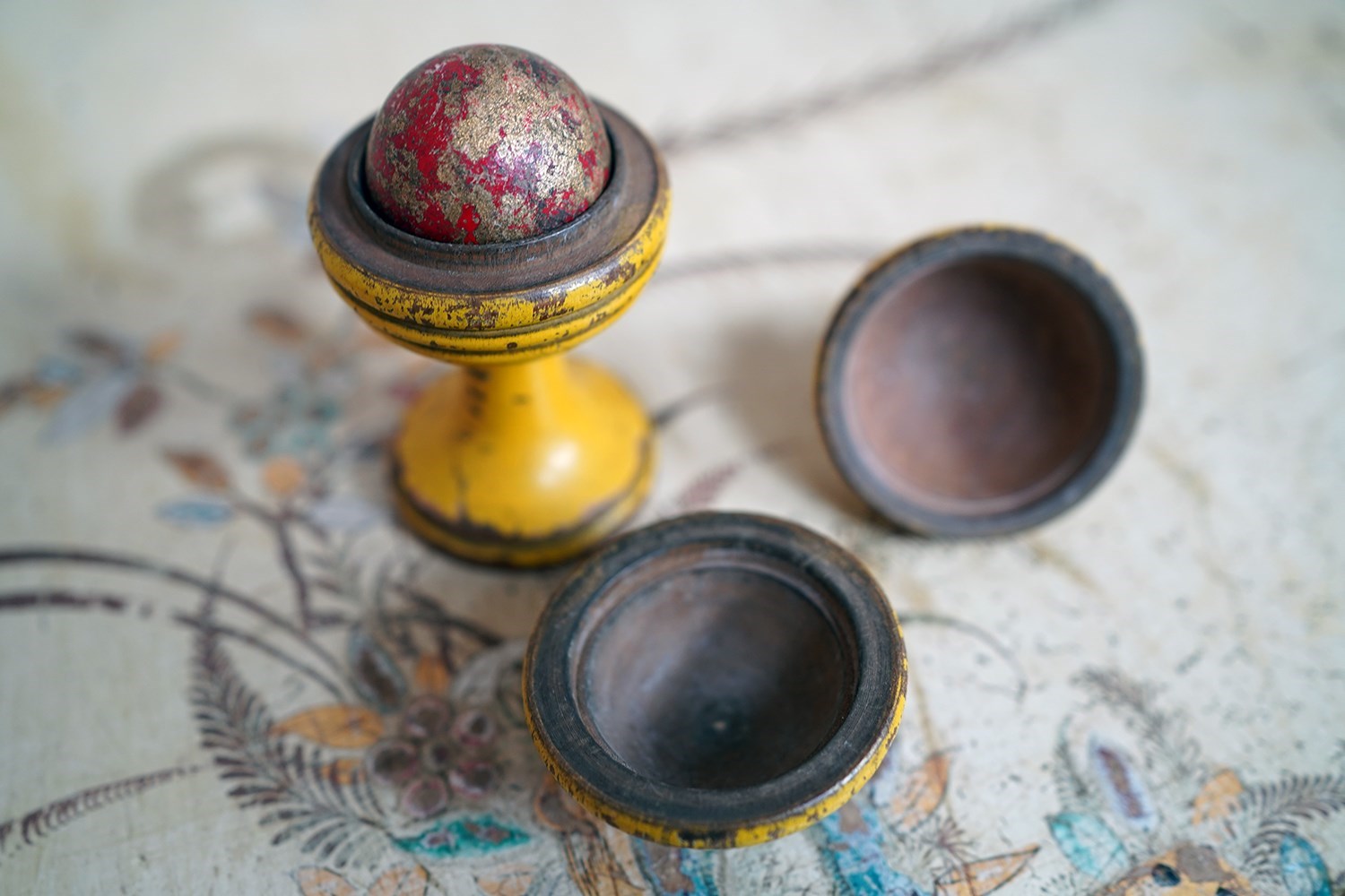 Late 19Thc Painted Treen ‘Disappearing Ball’ Magic Trick C.1900