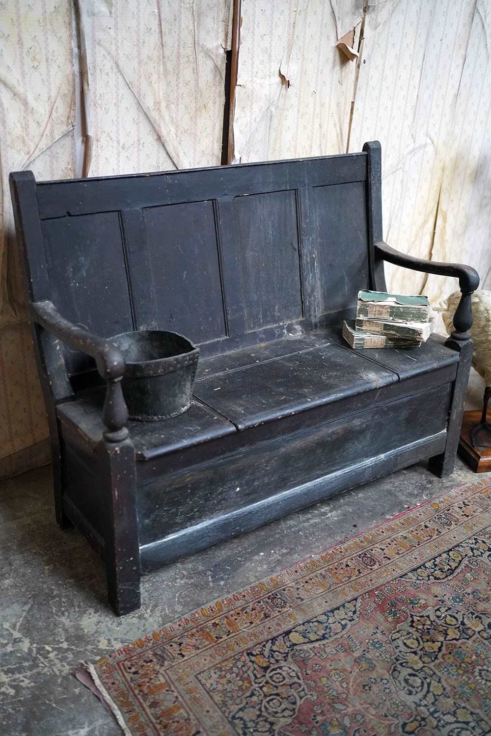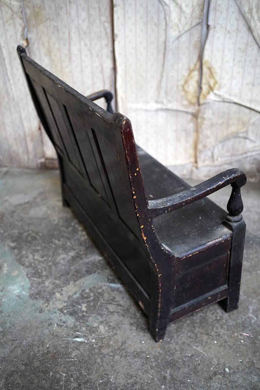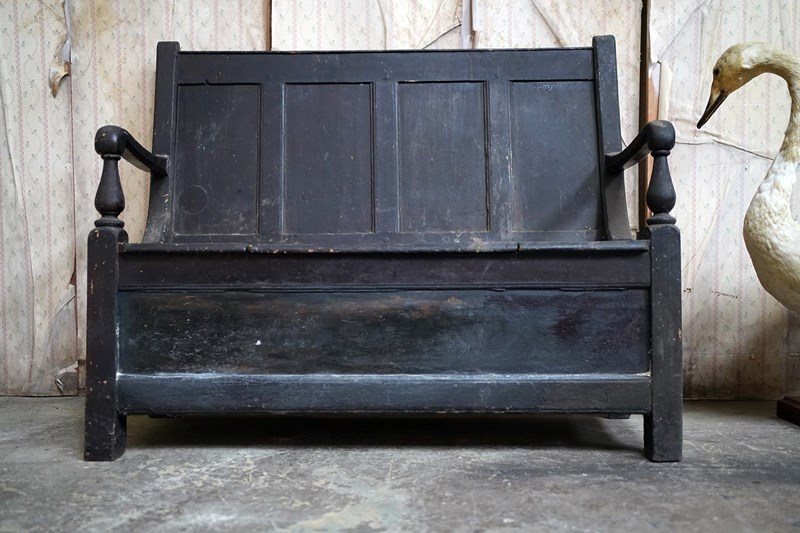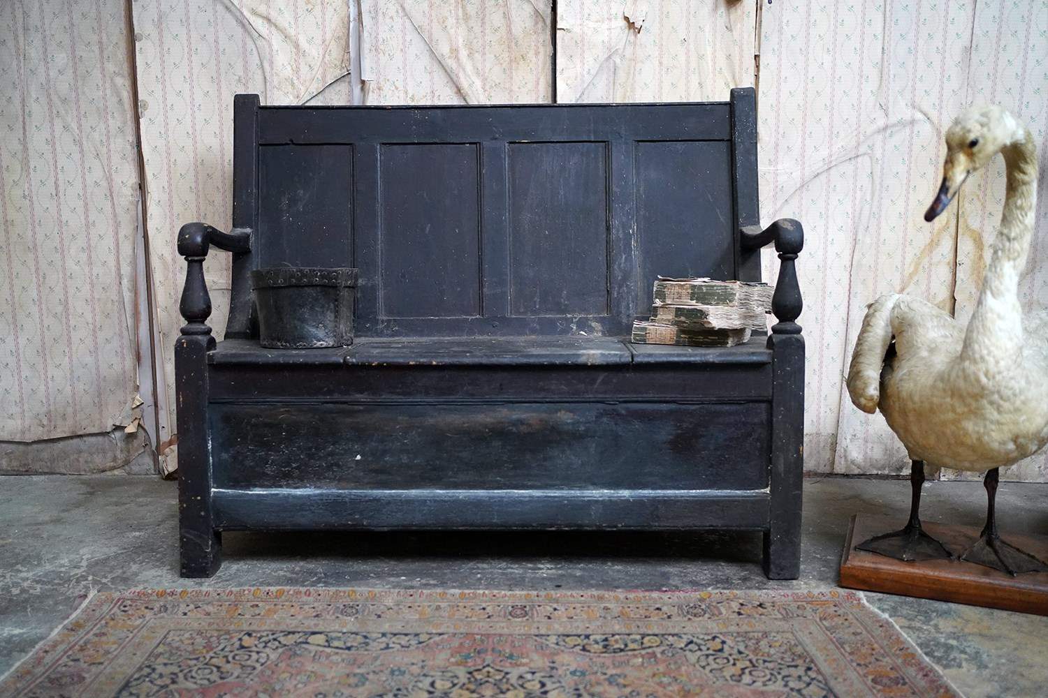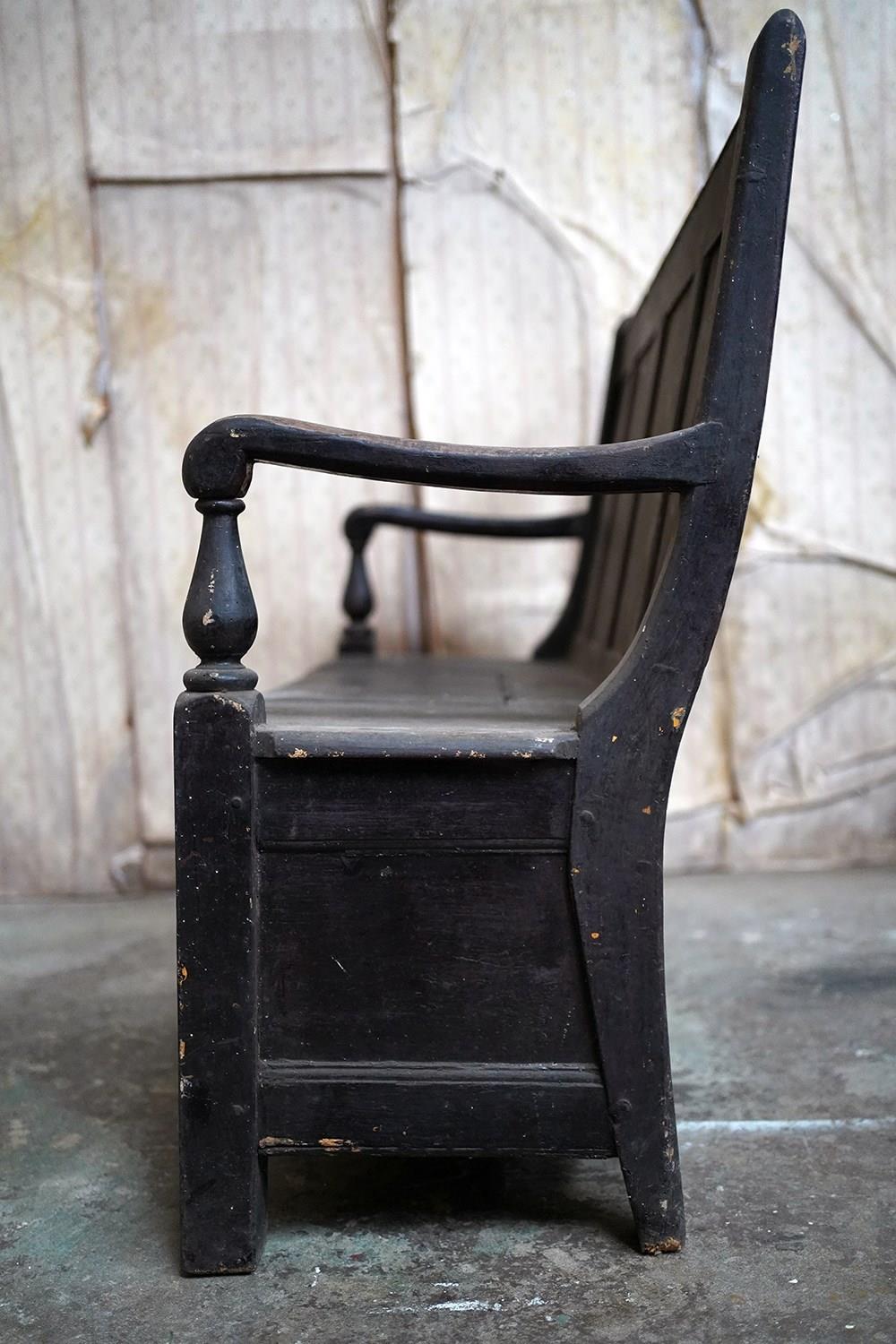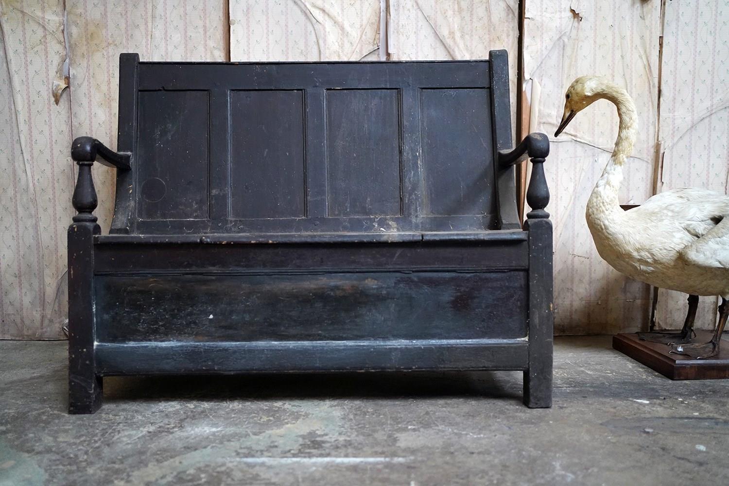Late 19Thc Provincial Black Painted Pine Box Settle C.1880