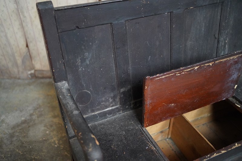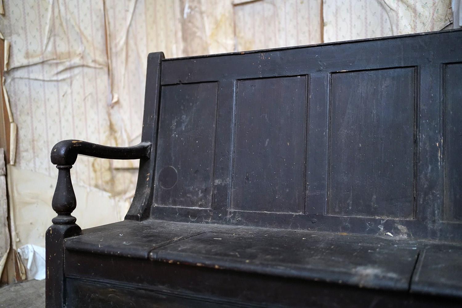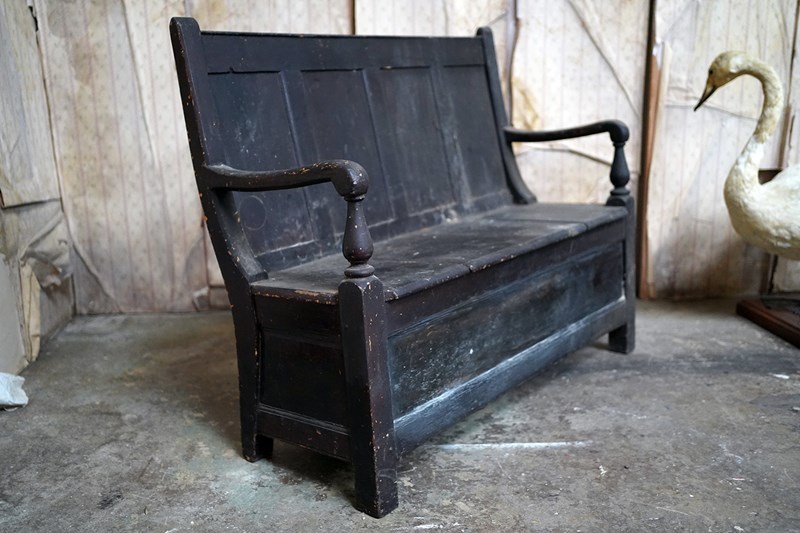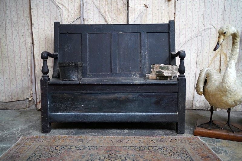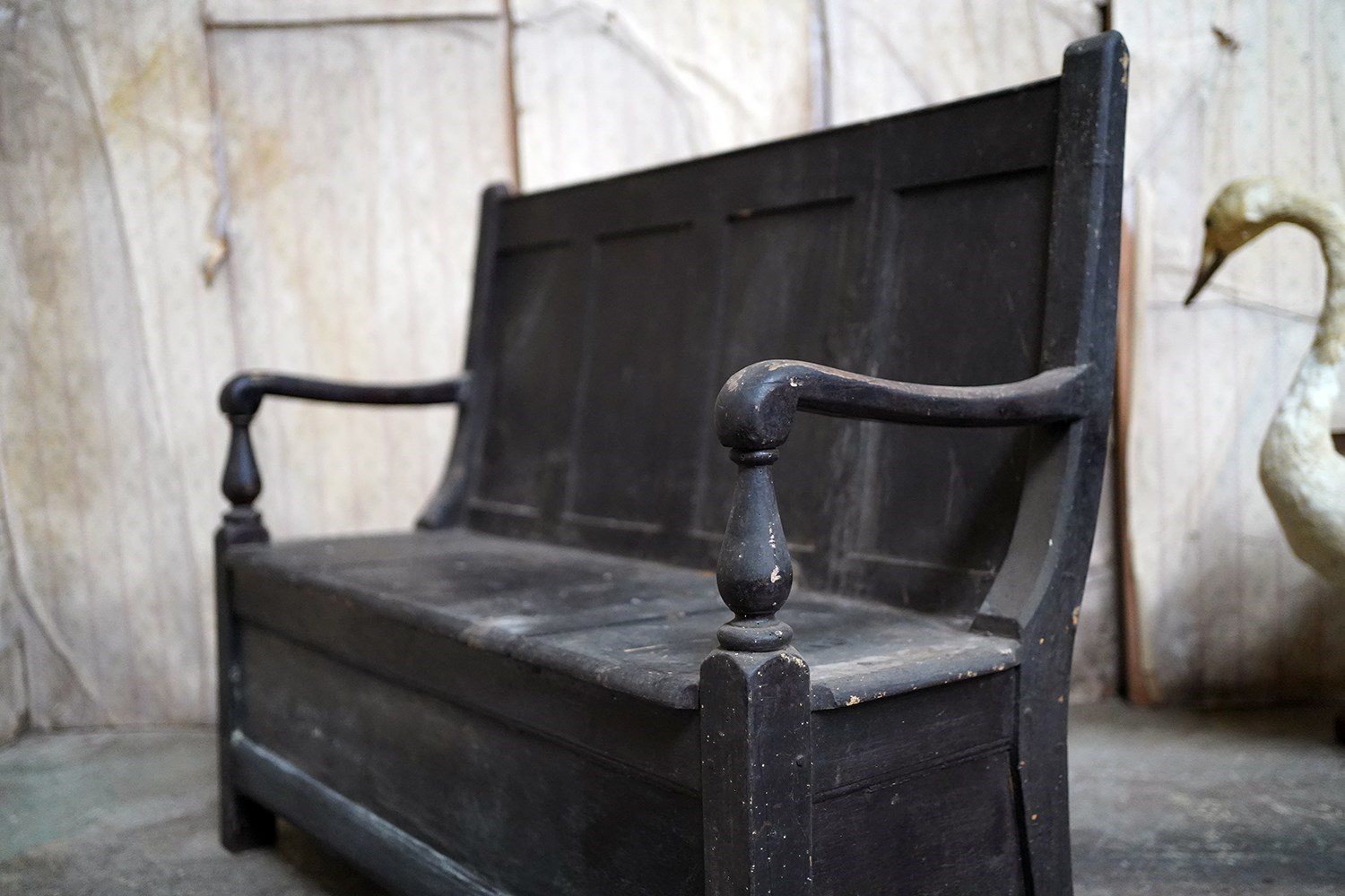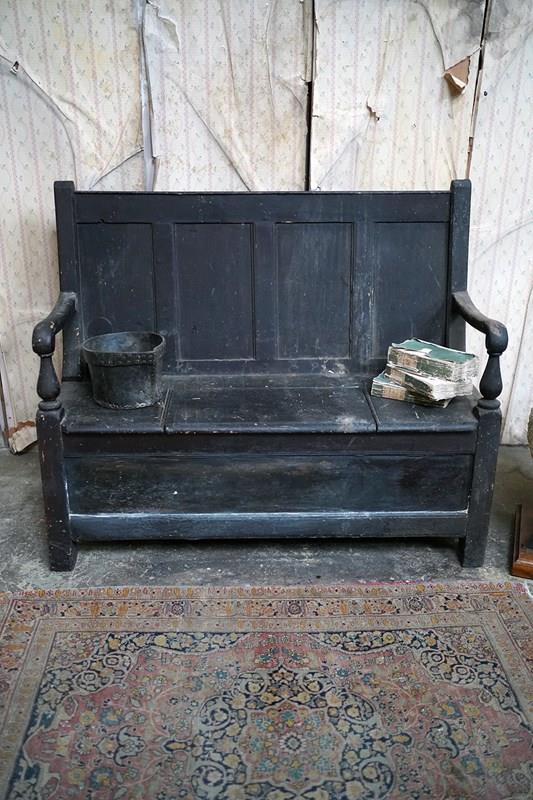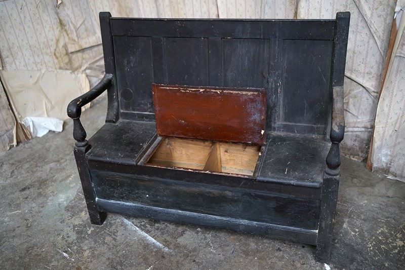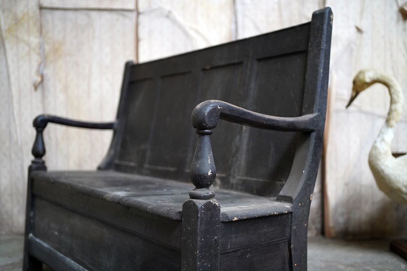 Late 19Thc Provincial Black Painted Pine Box Settle C.1880