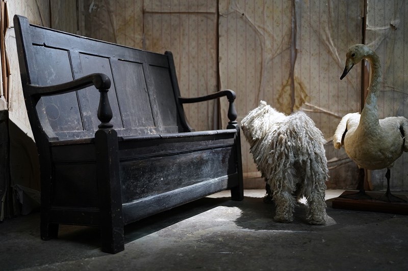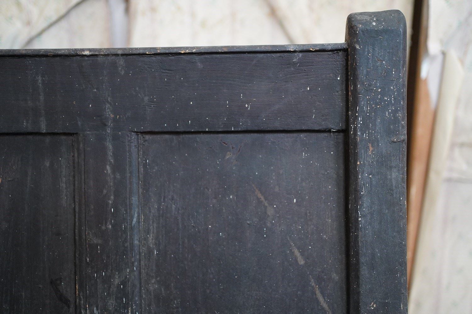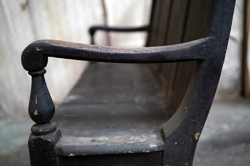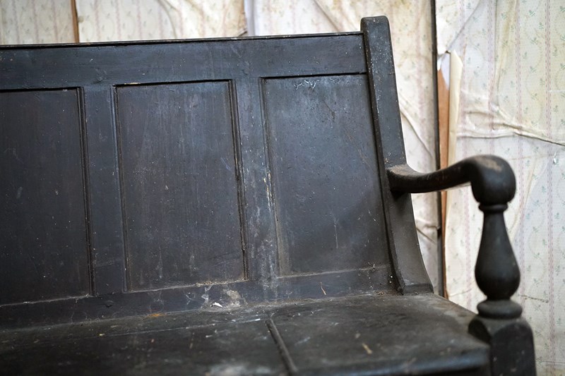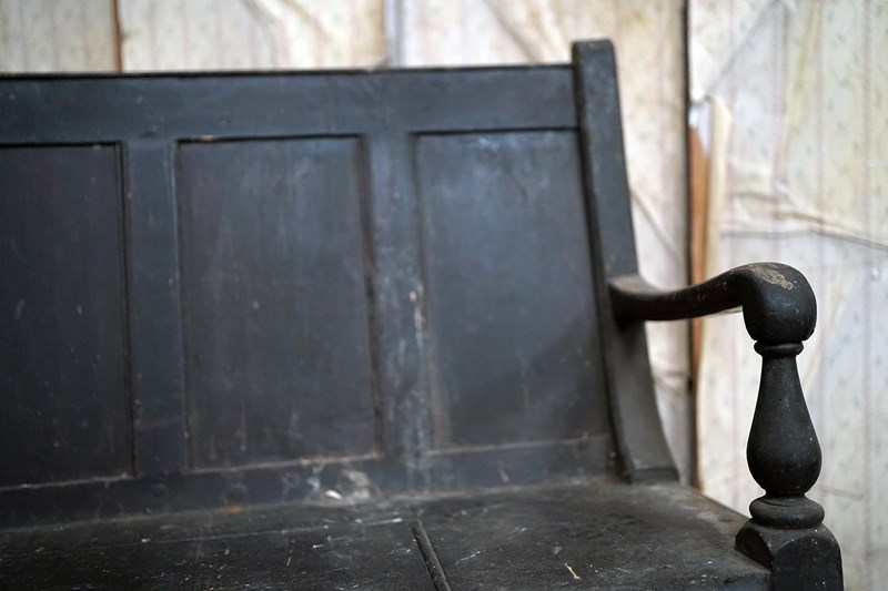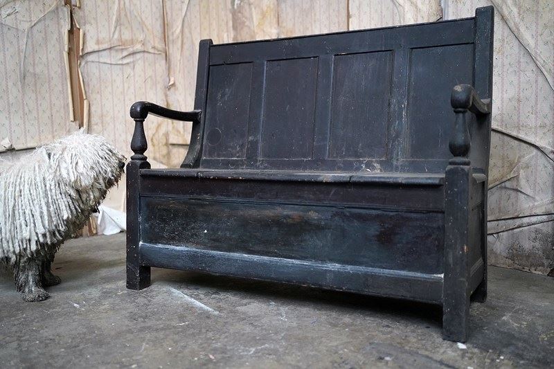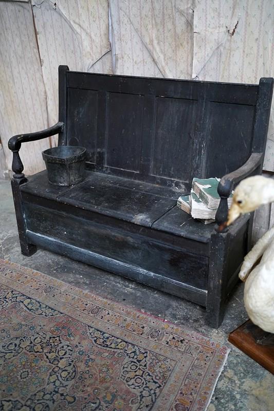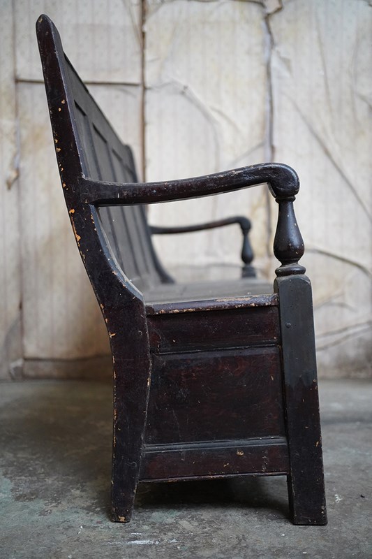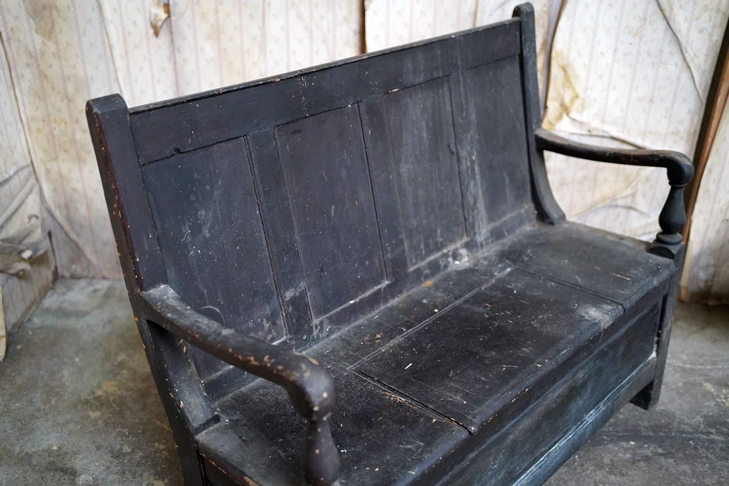 Late 19Thc Provincial Black Painted Pine Box Settle C.1880