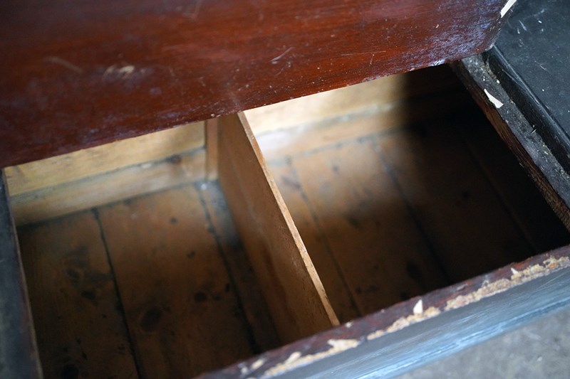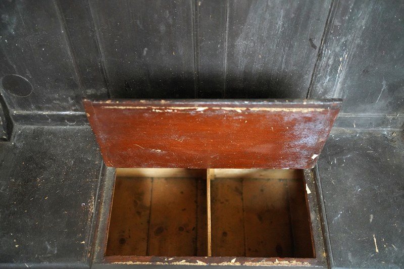 The rustic and provincially made carcass has a wonderful patina, with a host of character commensurate with its age and use. The lower front panel may have been re-touched at some stage. The box seat is fully functionable whilst the reverse is un-meddled with and shows more of the stained pine first coat of paint. There is no worm and she is ready to go.