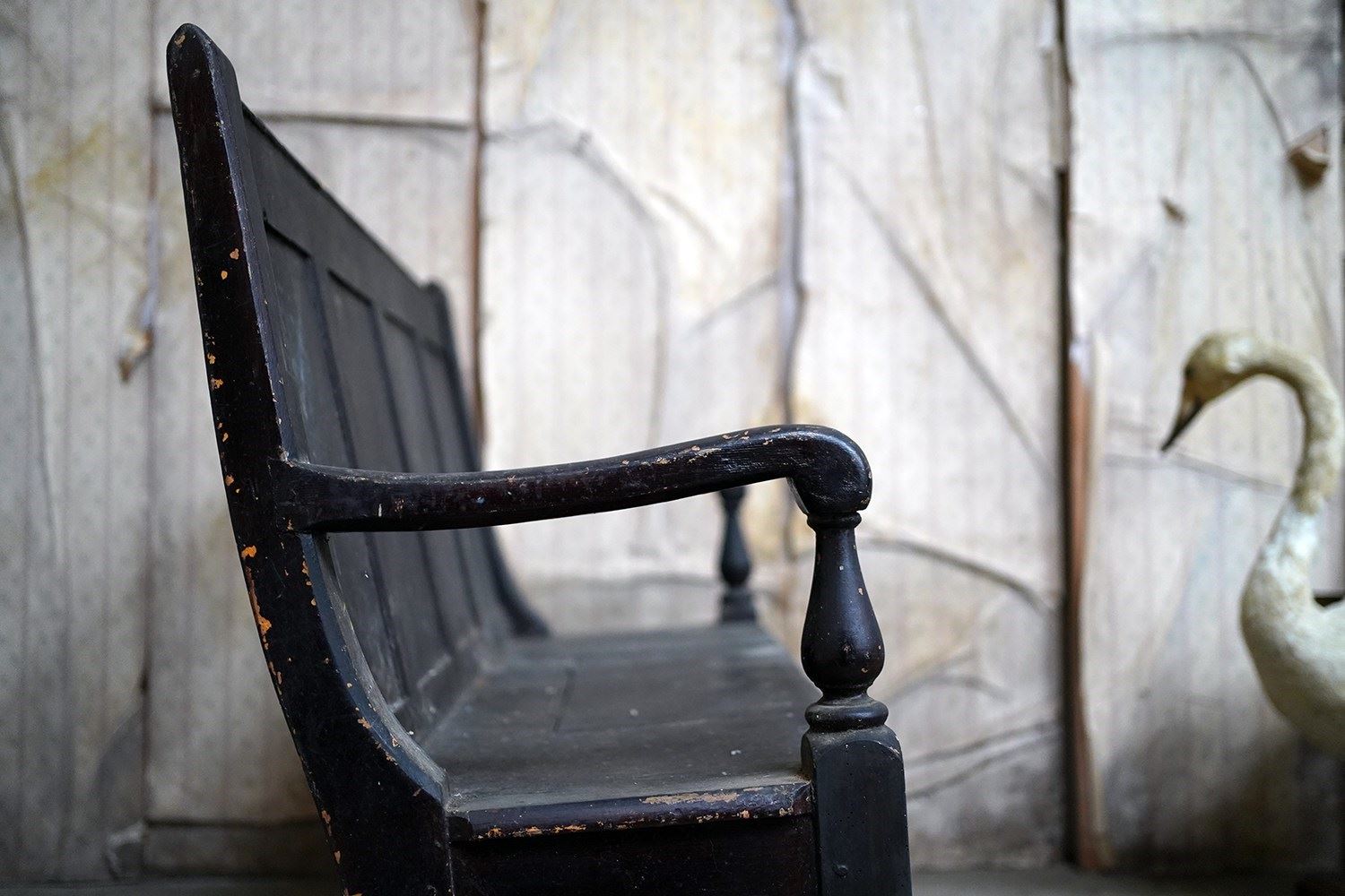 Constructed of oak or other hardwood, it was extremely heavy, solid, and durable. Few English examples of earlier date than the middle of the 16th century are extant; survivals from the Jacobean period are more numerous. Settles of the more expensive type were often elaborately carved or incised; others were divided into plain panels. They were commonly used in farmhouse kitchens or manorial halls. Its vogue did not long outlast the first half of the 18th century. They are usually very characterful pieces as they got heavy use, being found in pubs, taverns or working farmhouses, so they can have the most amazing charm about them.