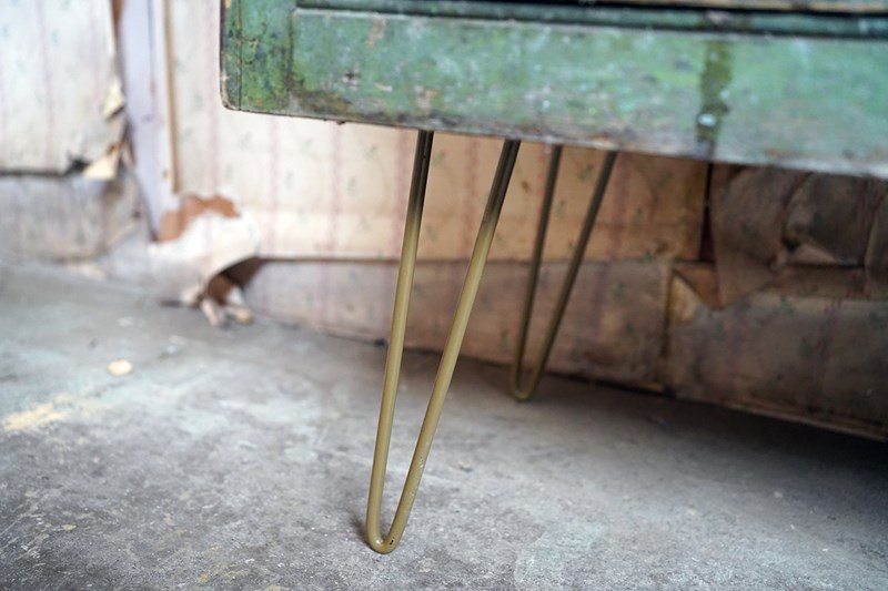 Victorian painted cupboards such as this were staples of the working kitchen, scullery or pantry; practical storage pieces often repainted over time as fashions shifted or surfaces tired. Unlike highly polished mahogany case pieces, these cupboards were never about display; they were about use. It is precisely this utilitarian origin that gives them their quiet strength today. The later hairpin legs introduce a considered contrast, subtly repositioning the piece for contemporary interiors while leaving its essential character intact.